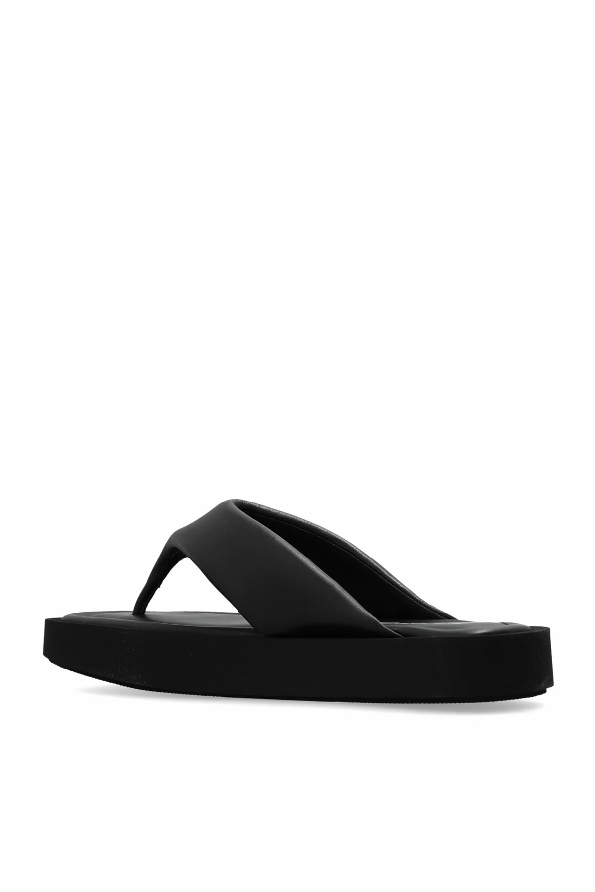 Hergestellt aus Leder höchster Qualität, sowohl in der äußeren Schicht als auch im Inneren, bieten die ‘Sajade’ Flip-Flops nicht nur ein luxuriöses Finish, sondern auch Langlebigkeit und Beständigkeit über Jahre hinweg. Die dicken, flachen Sohlen aus Gummi verleihen den Schuhen Solidität, während sie Stabilität und Tragekomfort garantieren. Die breiten, ebenfalls aus Leder gefertigten Riemen umschließen den Fuß elegant, und das subtil aufgebrachte Logo der Marke in kontrastierendem Weiß unterstreicht den exklusiven Charakter des Schuhs.