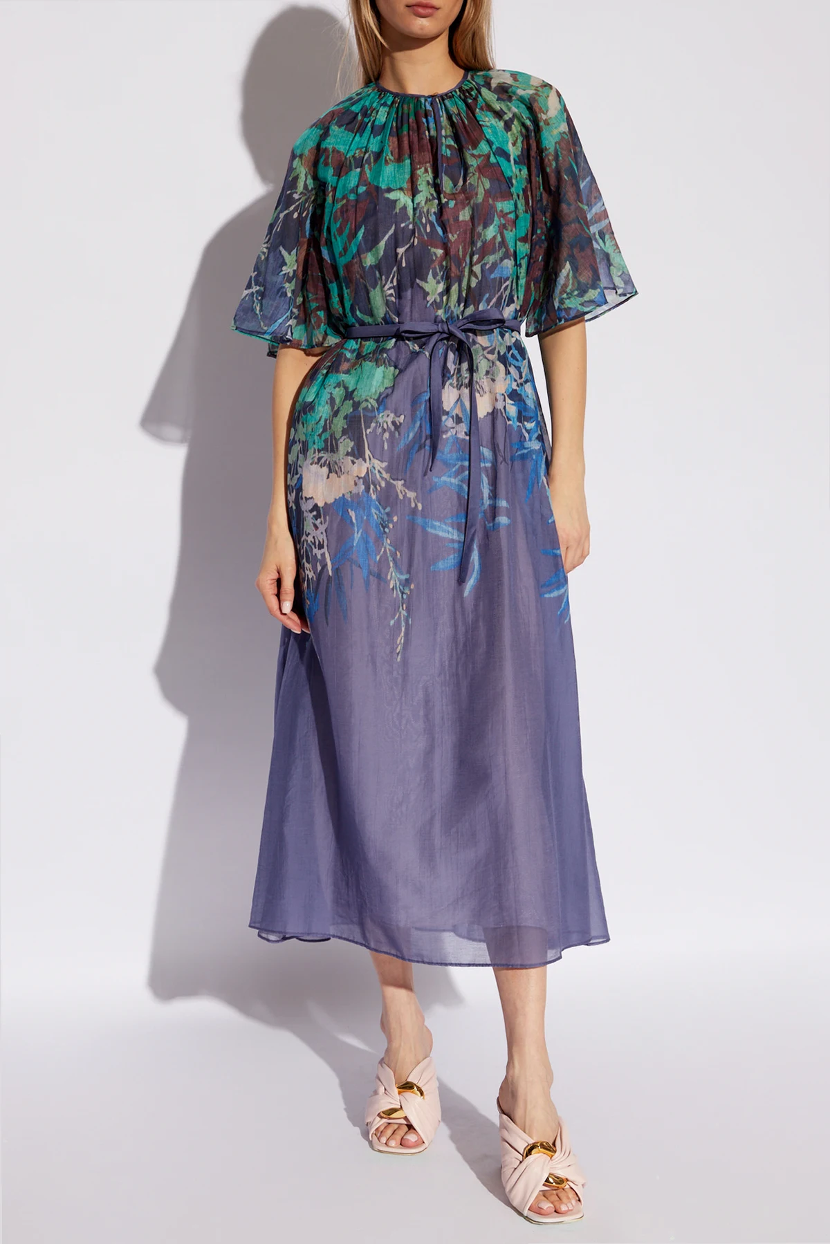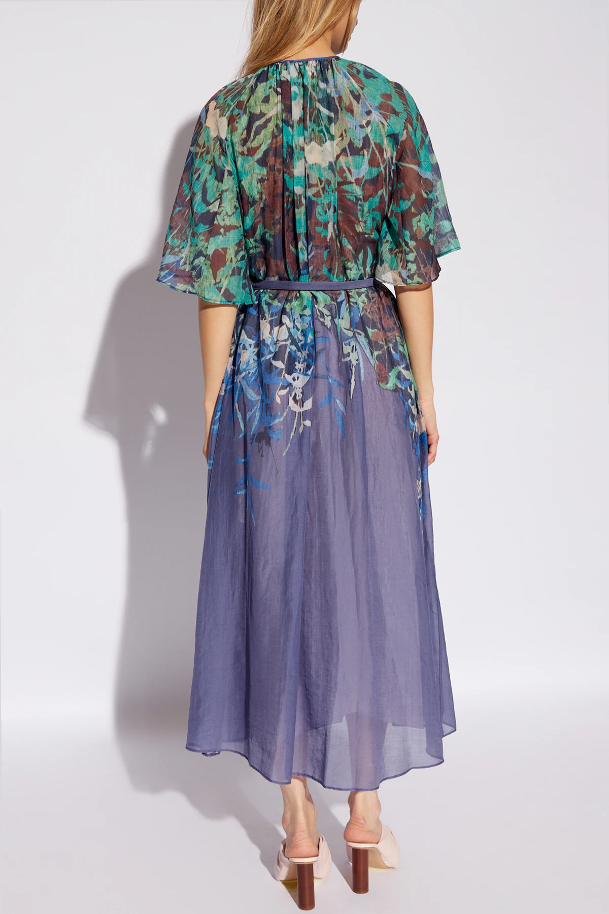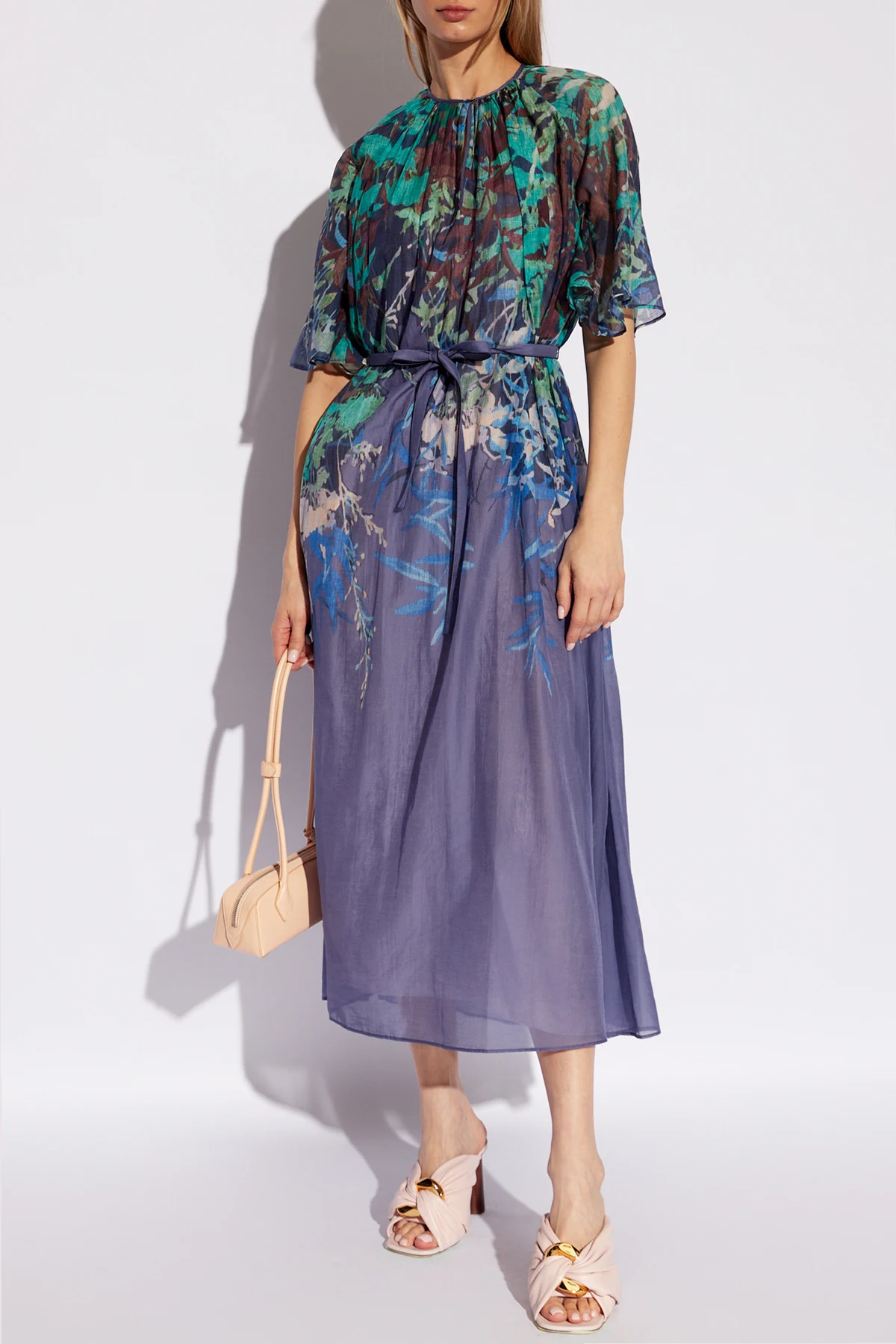 Multicoloured dress from Forte Forte. Made from a cotton and silk blend, this style features a waist-cinching tie belt, wide short sleeves and button fastenings on the collar.
