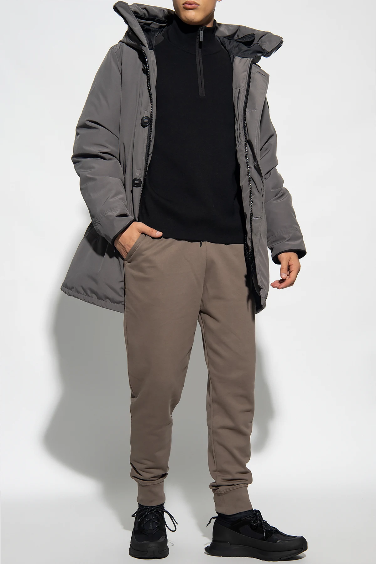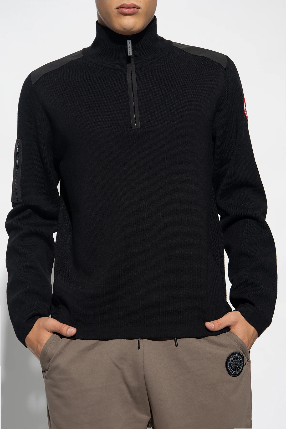 Black ‘Stormont’ turtleneck sweater from Canada Goose. Made of wool, this garment features a zip fastening and long sleeves with a zip pocket and a logo patch.