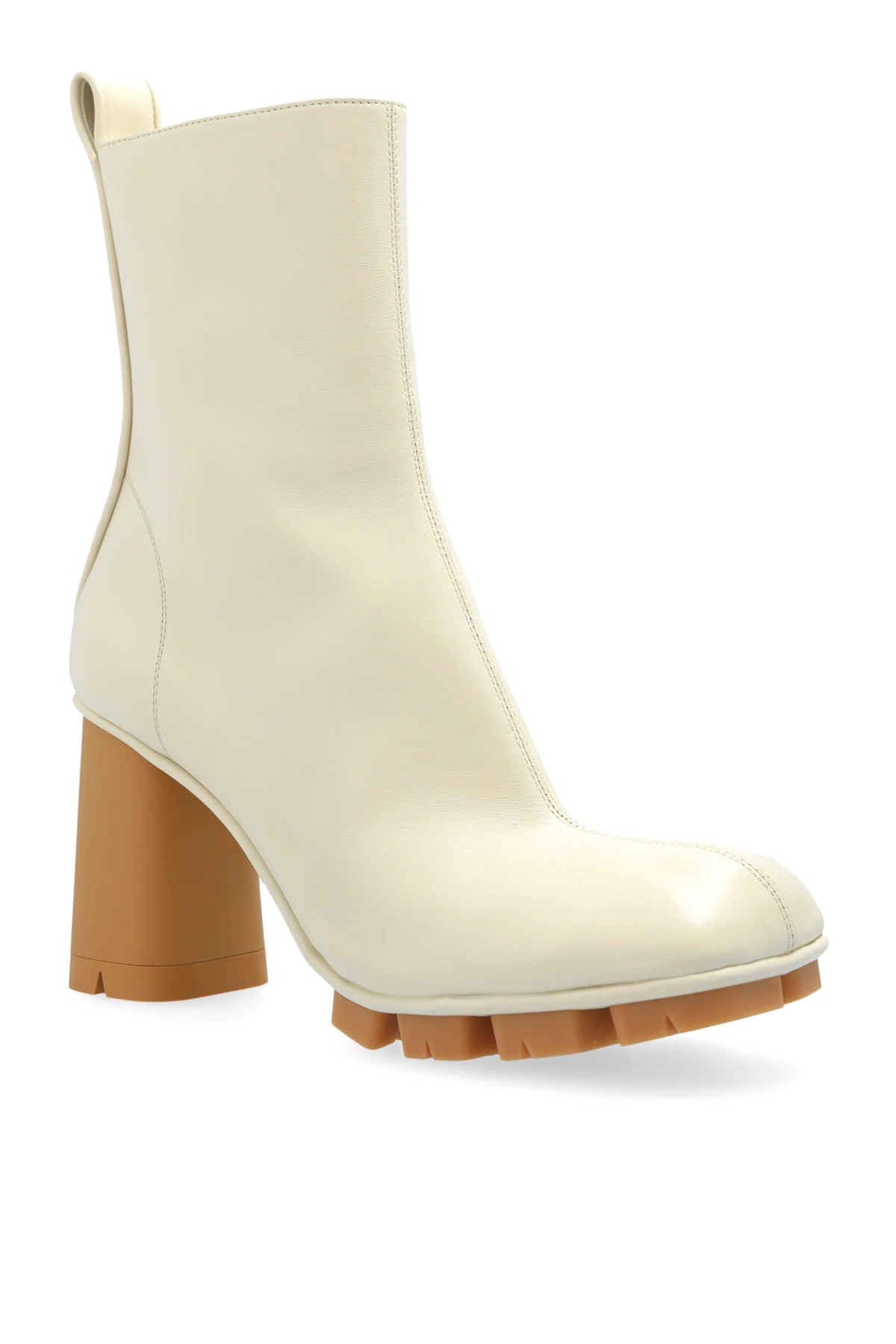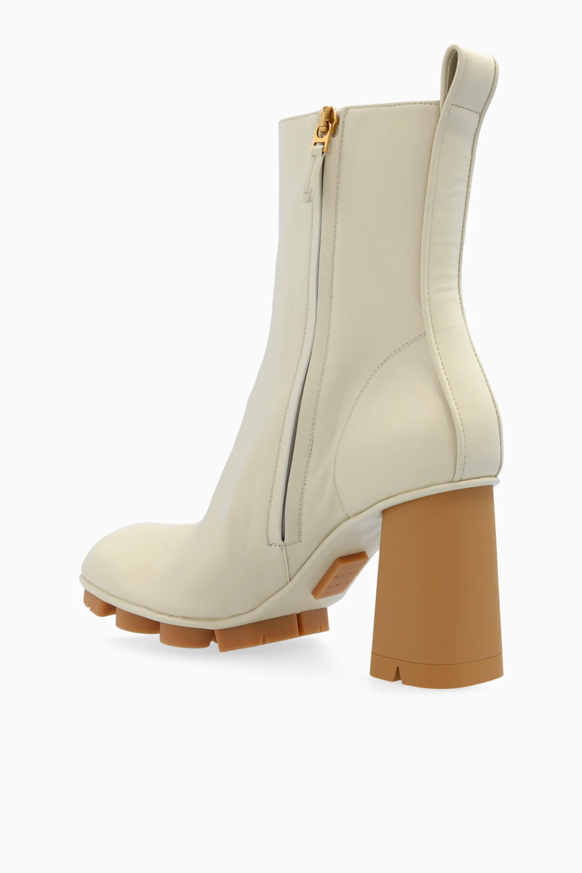 Wir präsentieren Absatzstiefeletten 'Shore' aus der exklusiven Kollektion von Bottega Veneta . Diese eleganten Stiefeletten zeichnen sich durch ein klassisches Design mit abgerundeter Spitze und einem hohen Schaft, der über den Knöchel reicht, aus. Hergestellt aus hochwertigem Leder, zeichnen sie sich durch eine glatte Oberfläche in Cremefarben aus, die ihnen ein zeitloses und vielseitiges Aussehen verleiht.