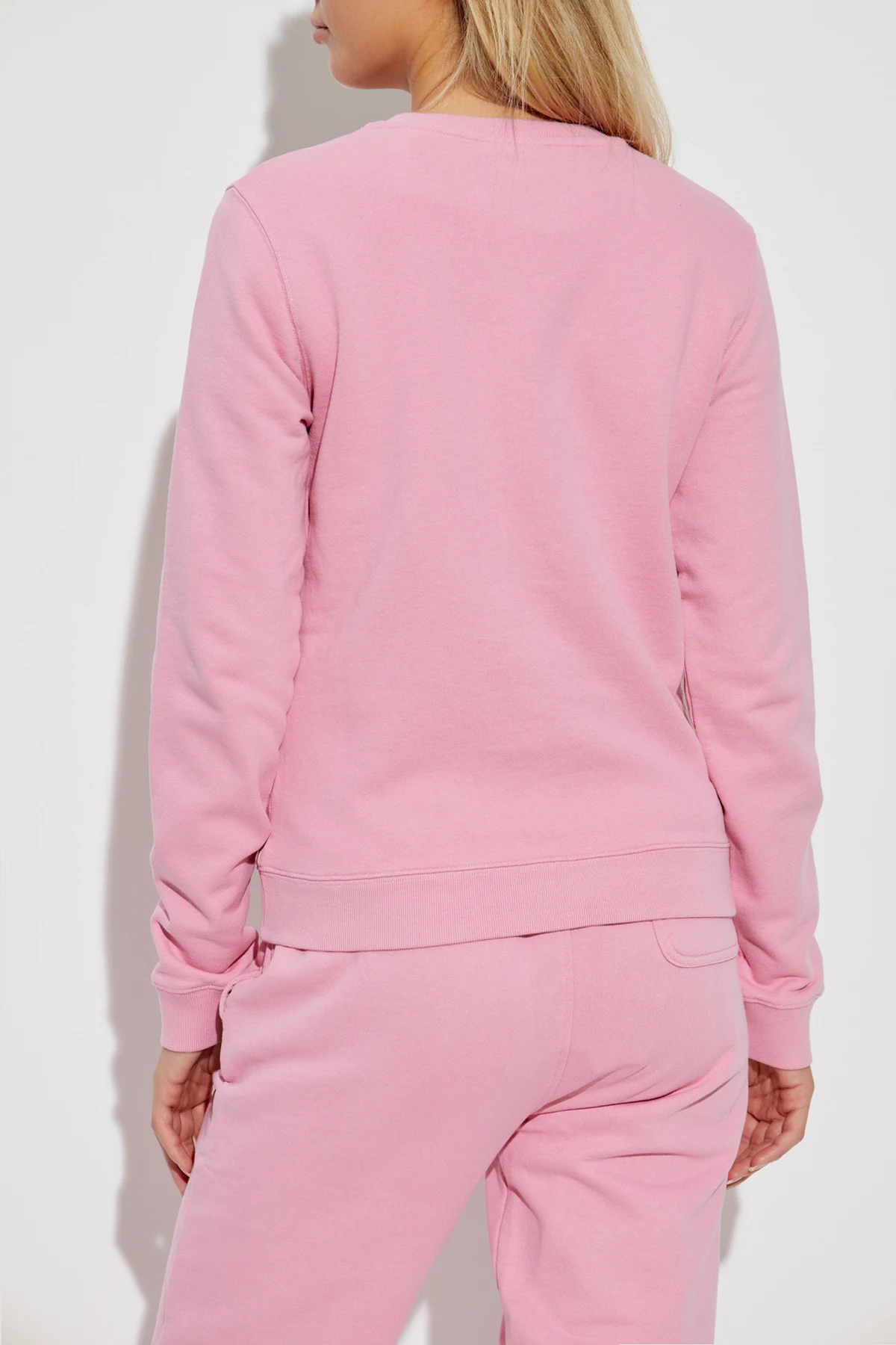 Wir präsentieren das rosa Sweatshirt mit Logo-Patch der exklusiven Marke Maison Kitsuné . Dieses äußerst elegante Sweatshirt passt perfekt in die Kanons der modernen Casual-Mode und bietet den Nutzern außergewöhnlichen Komfort und raffinierten Stil.