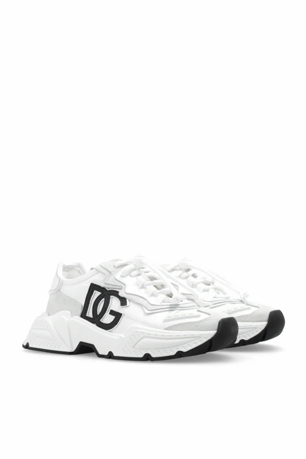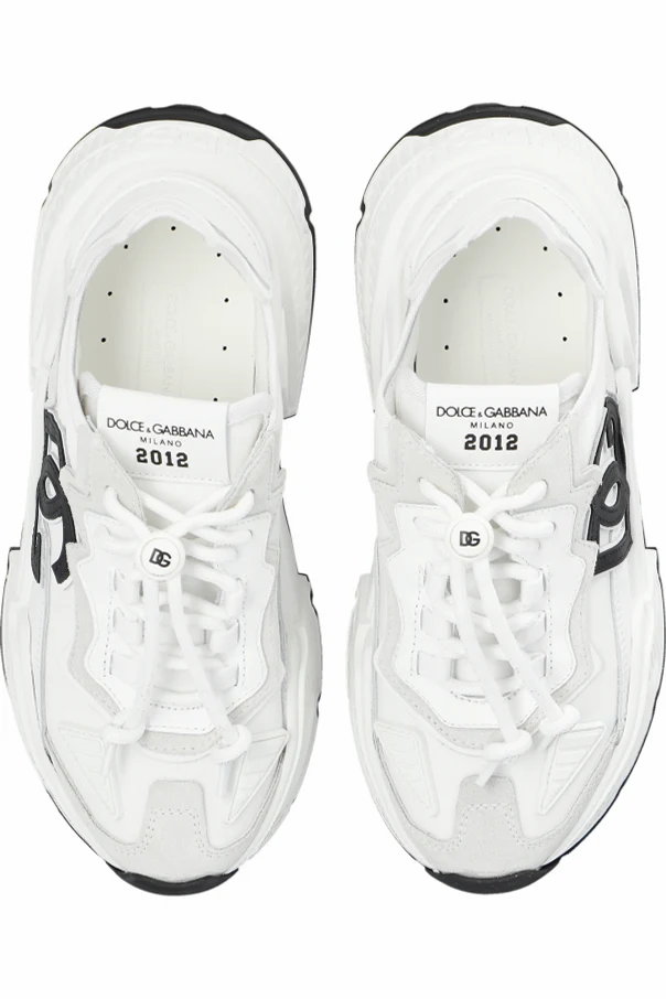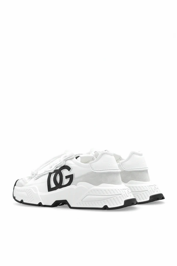 White and light grey sneakers from Dolce & Gabbana Kids. Made of leather, suede and fabric, this lace-up pair features a logo, black trimming and rubber sole in black and white.