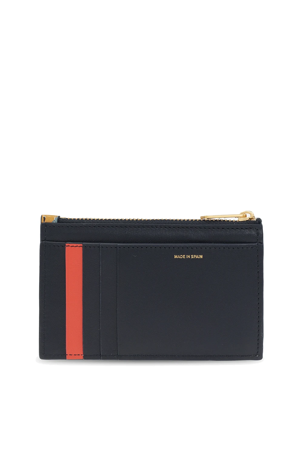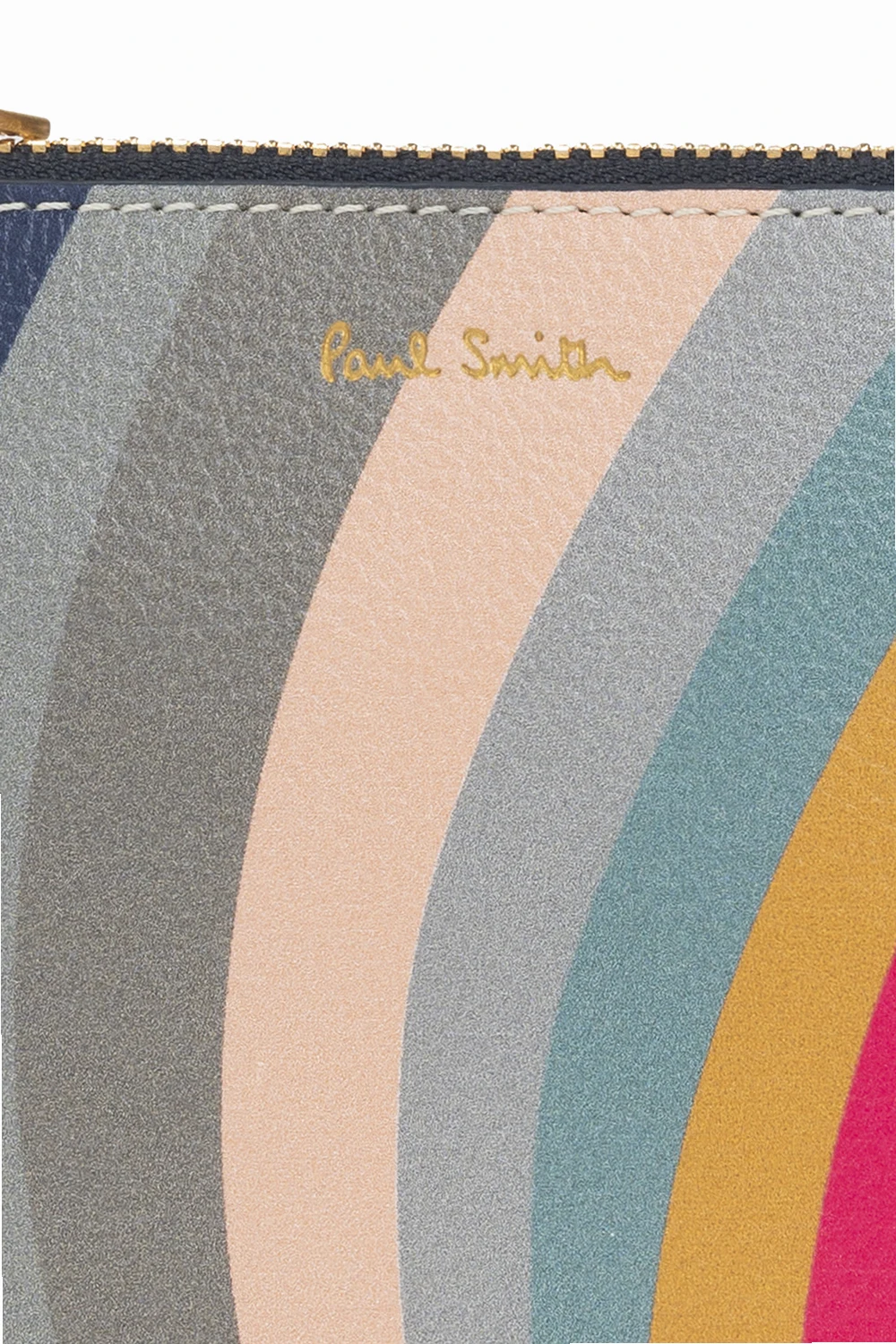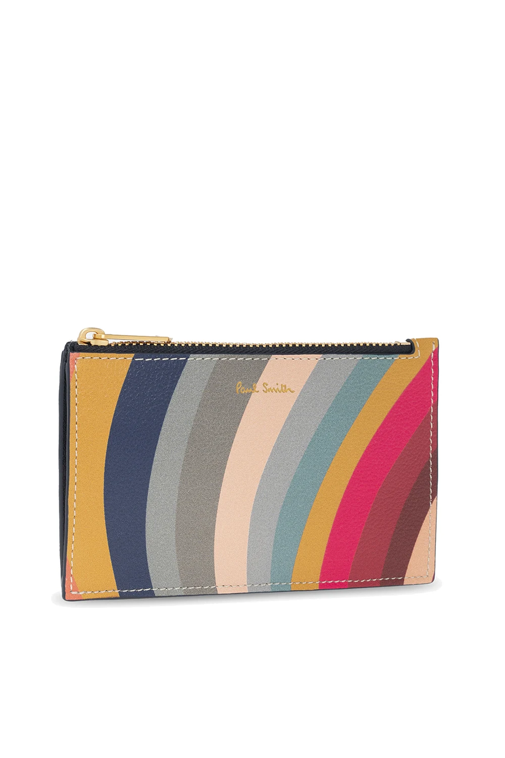 Multicolored card holder from Paul Smith. Made of calf leather, this model features an embossed logo in gold-tone, four card slots, one slip pocket, gold-tone metal hardware and one internal compartment with one zip pocket.