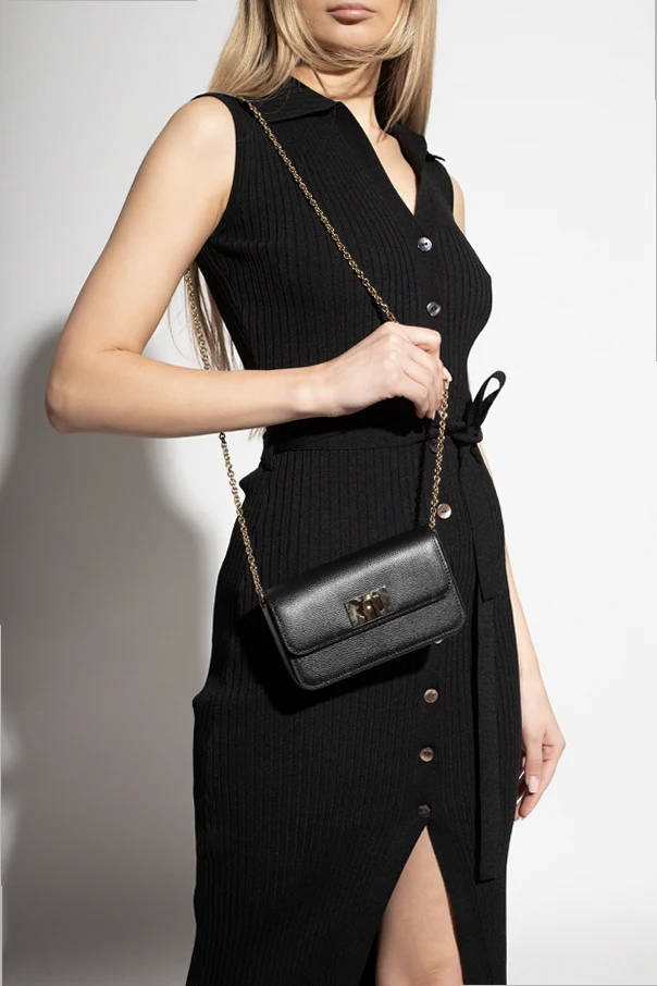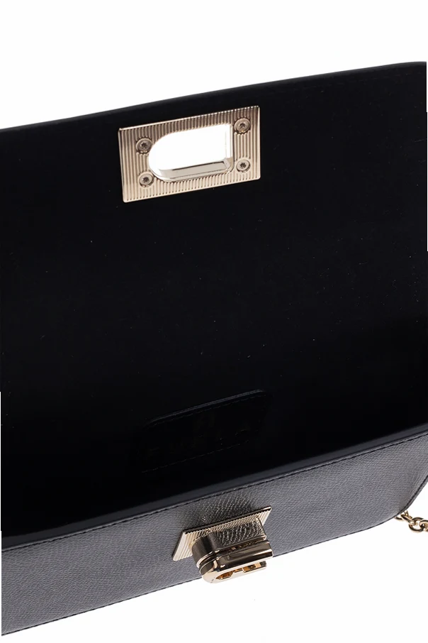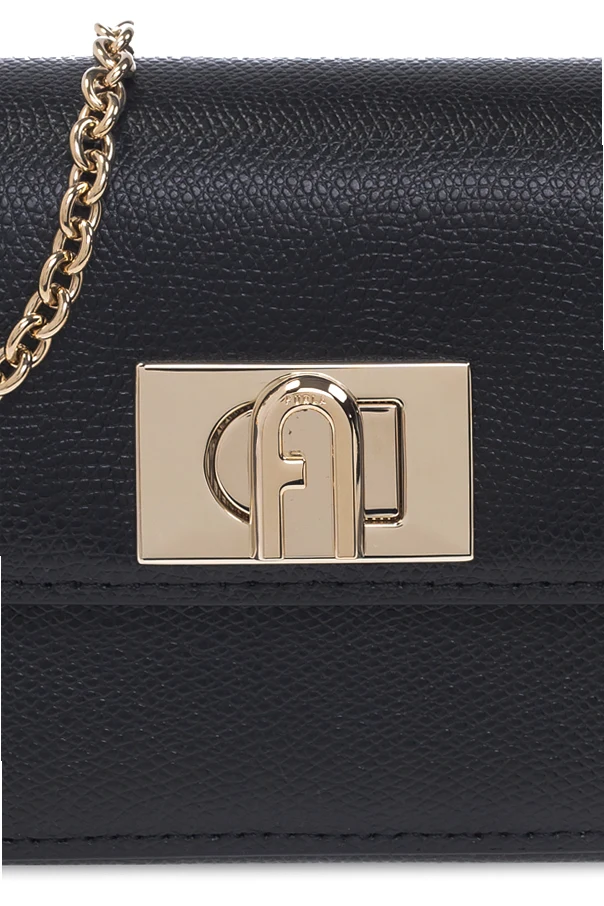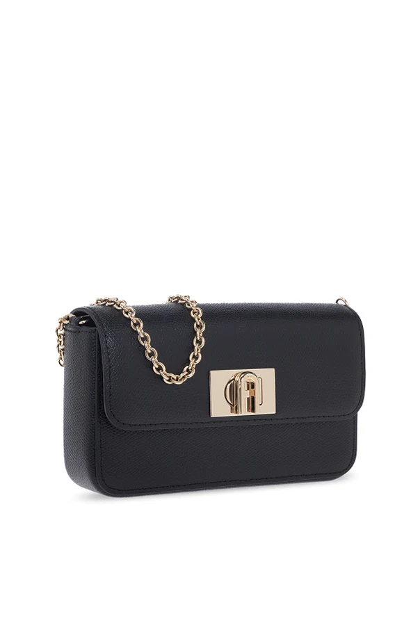 Black ‘1927 Mini’ shoulder bag from Furla. Made of grained Ares leather, this model features the label’s signature twist closure with an Arch logo, chain strap, gold-tone metal hardware and one internal compartment with one slip pocket.
