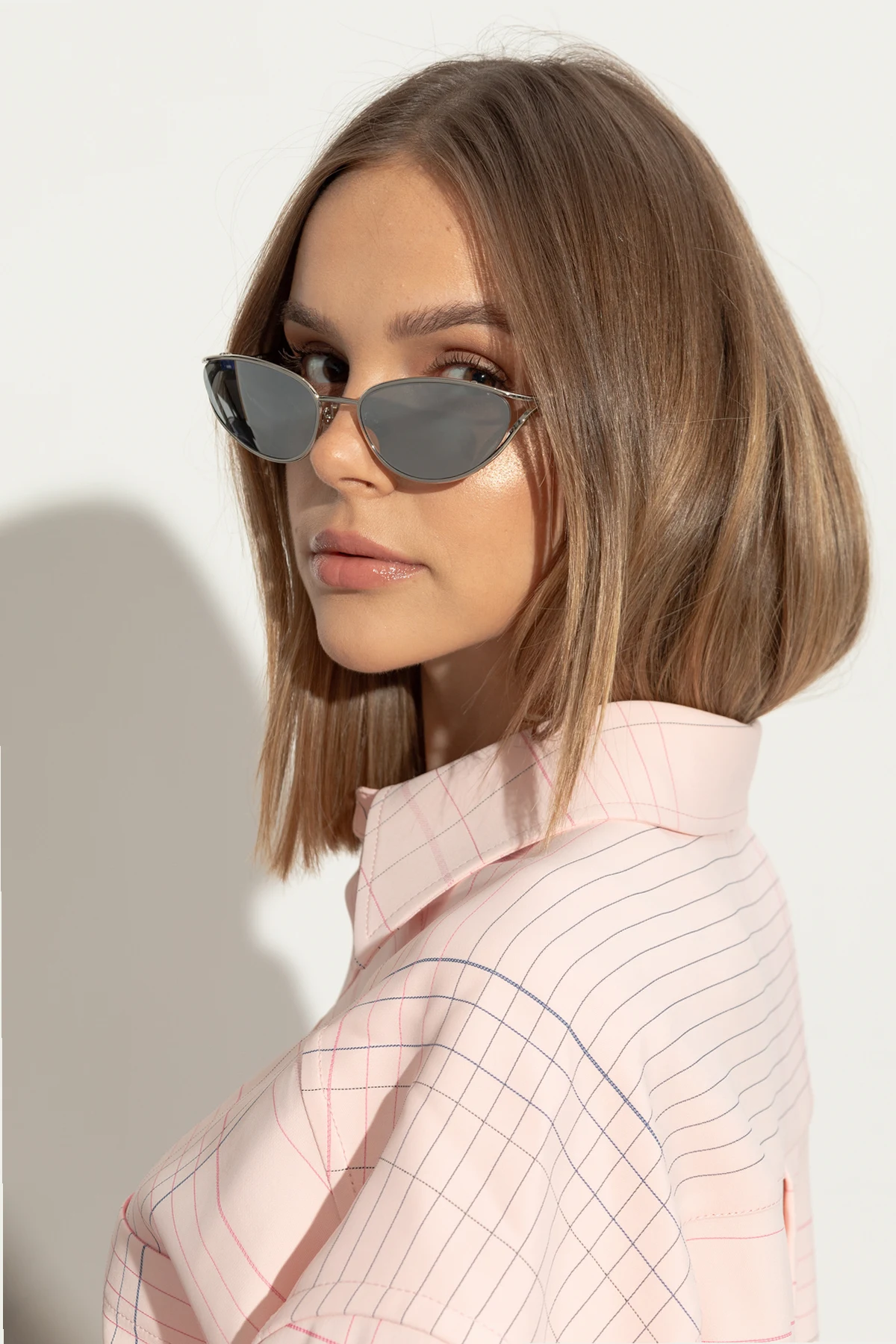 Auf den Fotos kommen die Brillen in voller Pracht zur Geltung: Der dünne Metallrahmen verleiht ihnen Subtilität und ein raffiniertes Aussehen, während die zarten Bügel mit weißen Endstücken für Tragekomfort sorgen. Auf einem der Bilder zeigt ein Model, wie die Brillen perfekt zum Gesicht passen und das stilvolle Aussehen jeder Frau betonen.