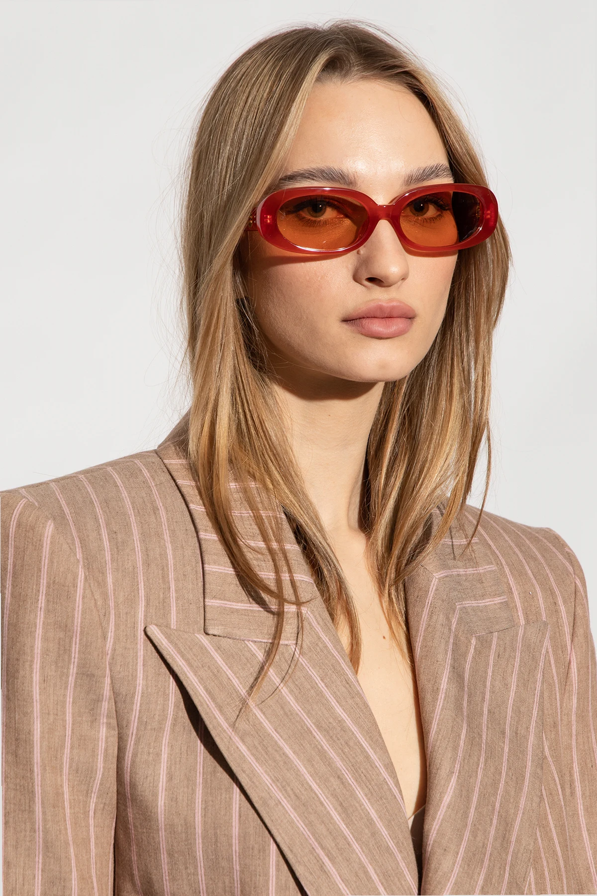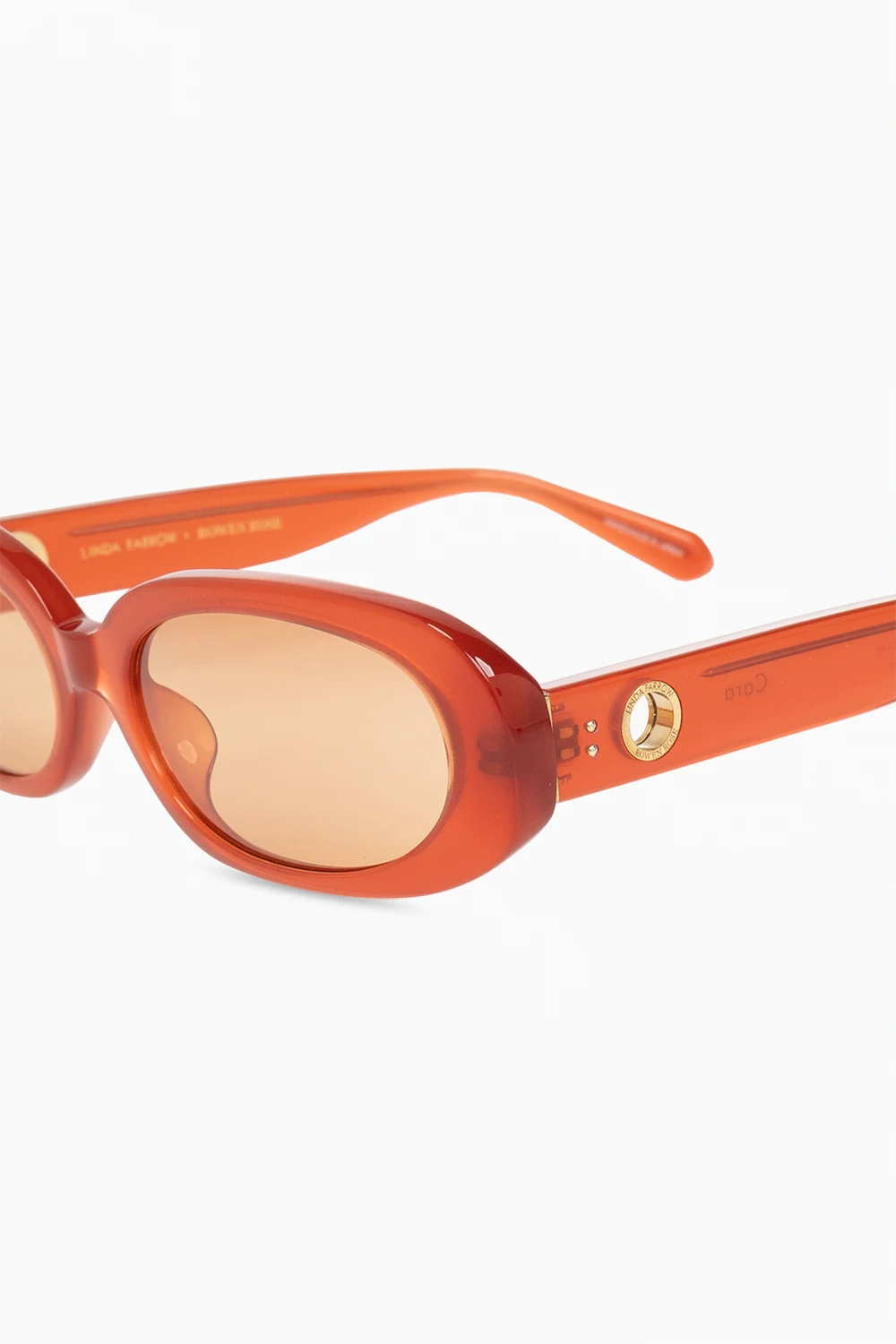 Red ‘Cara’ oval sunglasses from Linda Farrow x Rowen Rose. Crafted with a semi-transparent finish, this model features a single bridge, integrated nose pads, temples with the brand's signature eyelets with an engraved logo and orange lenses with 100% UV protection. Case included.