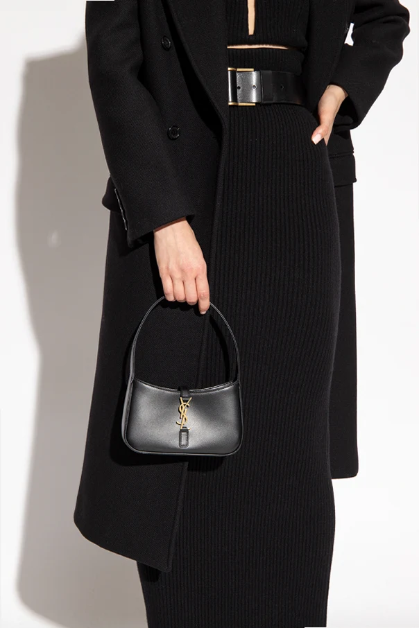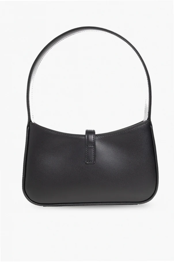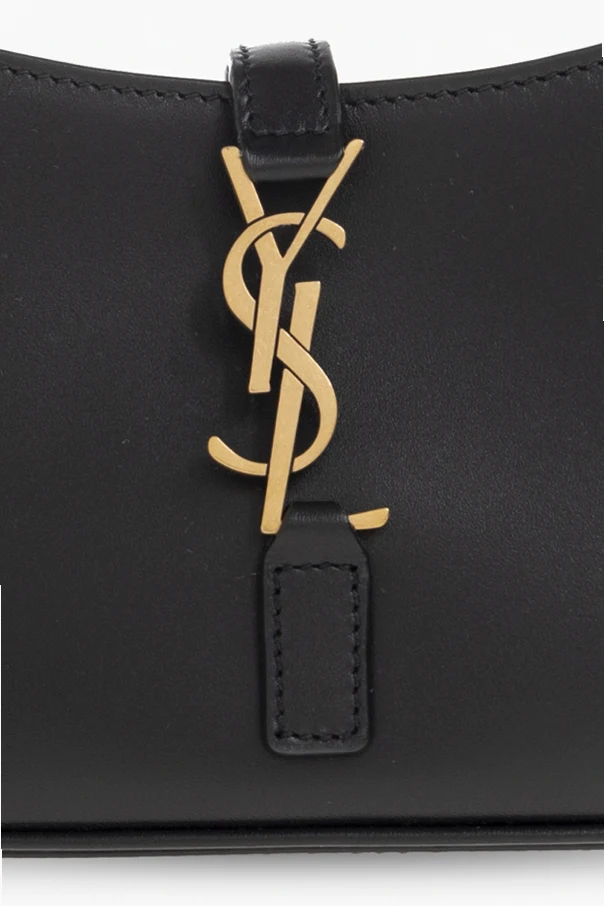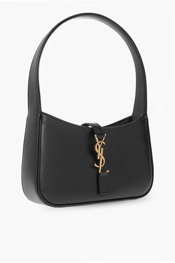 Black ‘Le 5 A 7 Mini’ hobo bag from Saint Laurent. Made of calf leather, this item features a decorative hook closure with a metal logo appliqué, half-round handle, antique gold-tone metal hardware and one internal compartment with one card slot.
