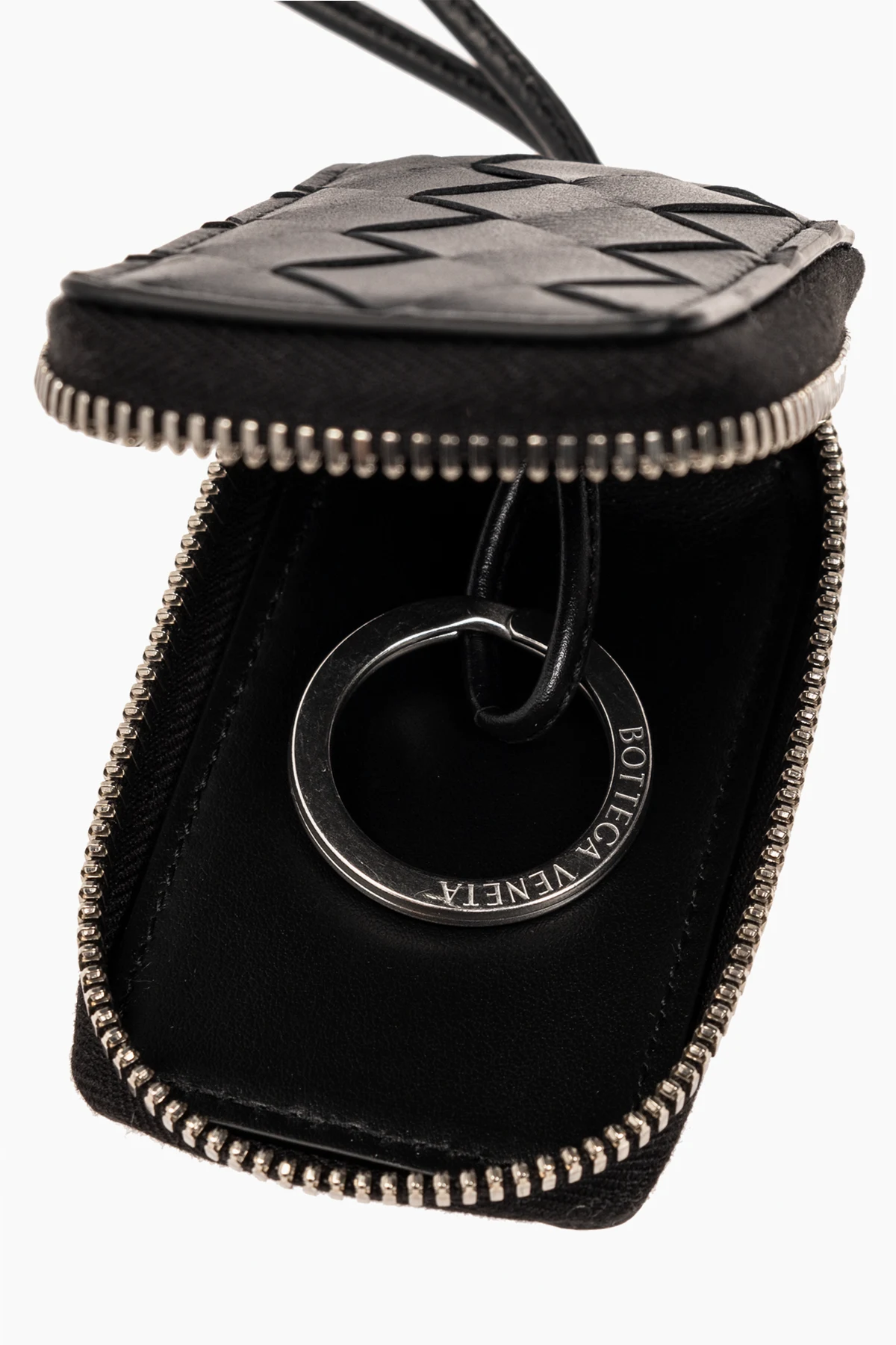 Metallener Ring mit Bottega Veneta Markenname , der die Exklusivität des Accessoires betont.