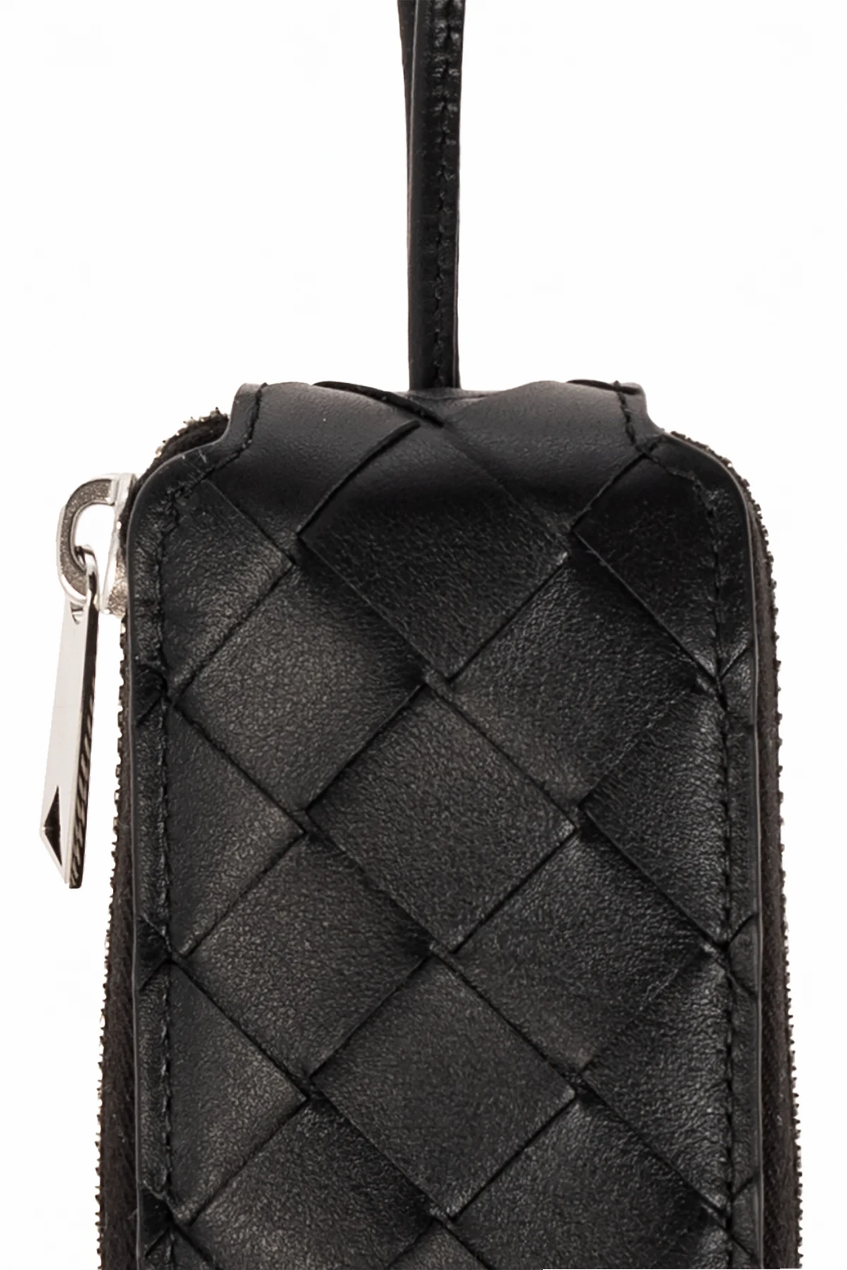 Wir präsentieren Ihnen das außergewöhnliche Bottega Veneta Schlüsseletui , ein Symbol für die Vereinigung von zeitloser Eleganz und Funktionalität. Gefertigt aus hochwertigem Kalbsleder , zeichnet sich dieses Accessoire nicht nur durch seine hervorragende Langlebigkeit aus, sondern auch durch sein einzigartiges Design. Die dominierende schwarze Farbe, bereichert um charakteristische, gesteppte Muster in Rautenform, verleiht dem Artikel Universalität und Adel.