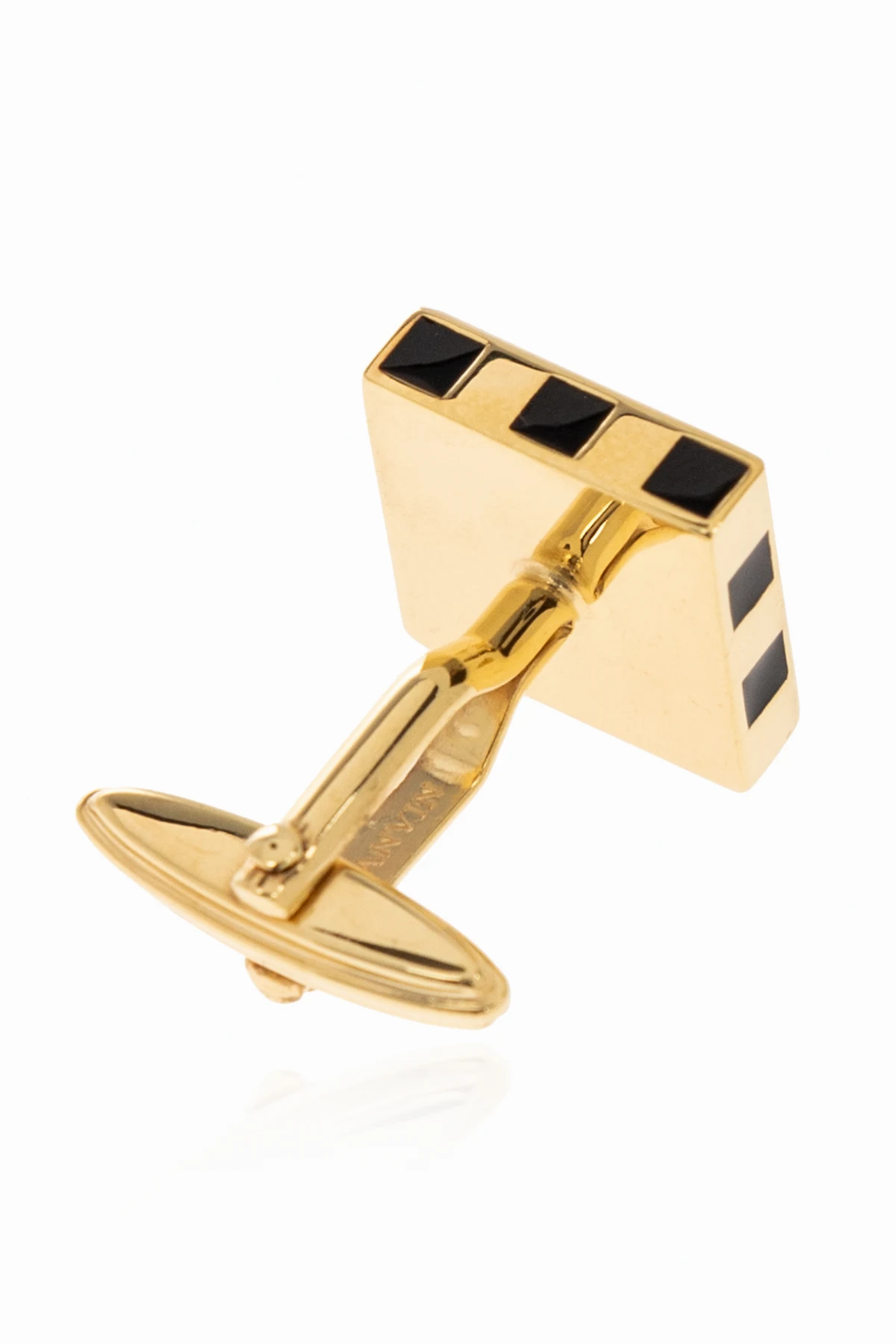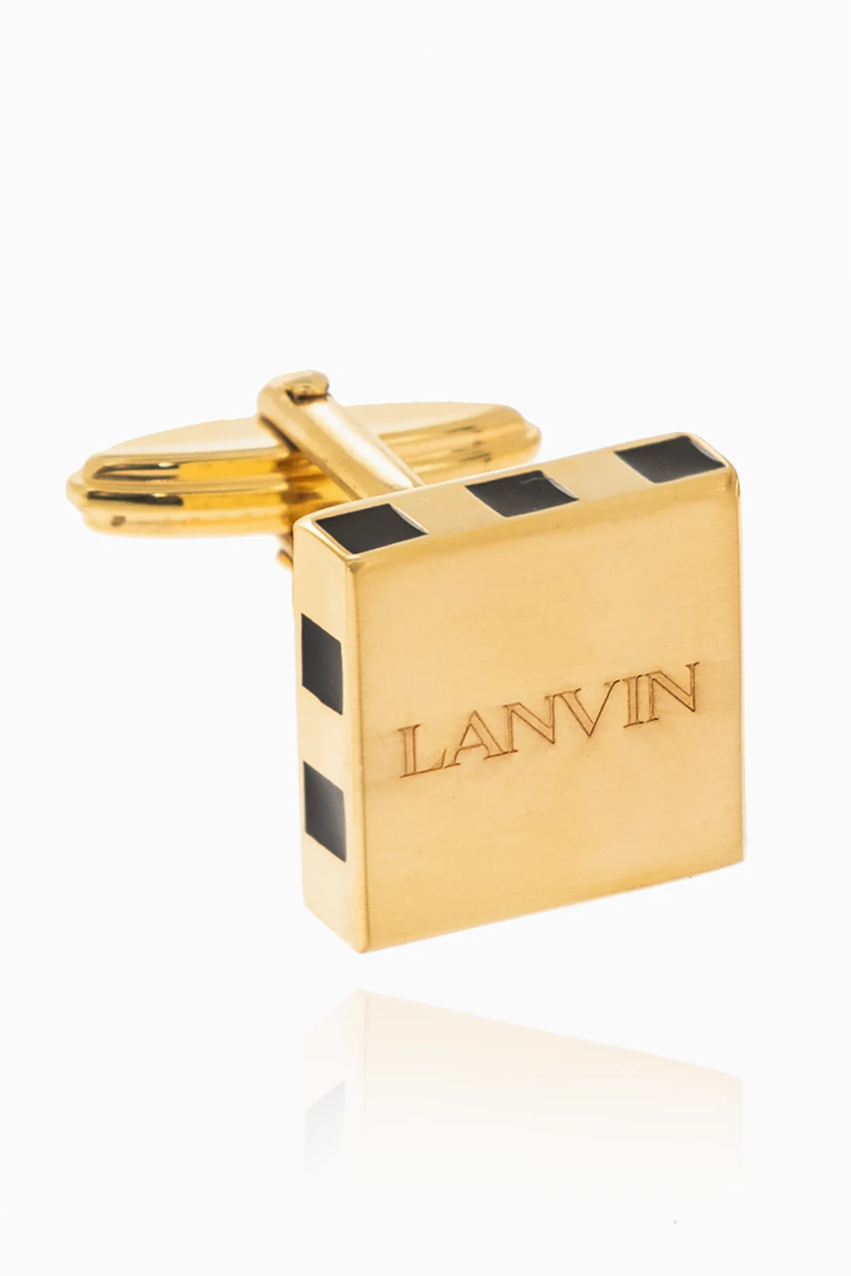 Gold-tone cufflinks with square inserts in black and an engraved logo from Lanvin.