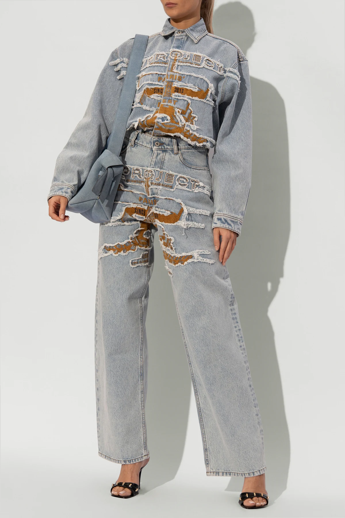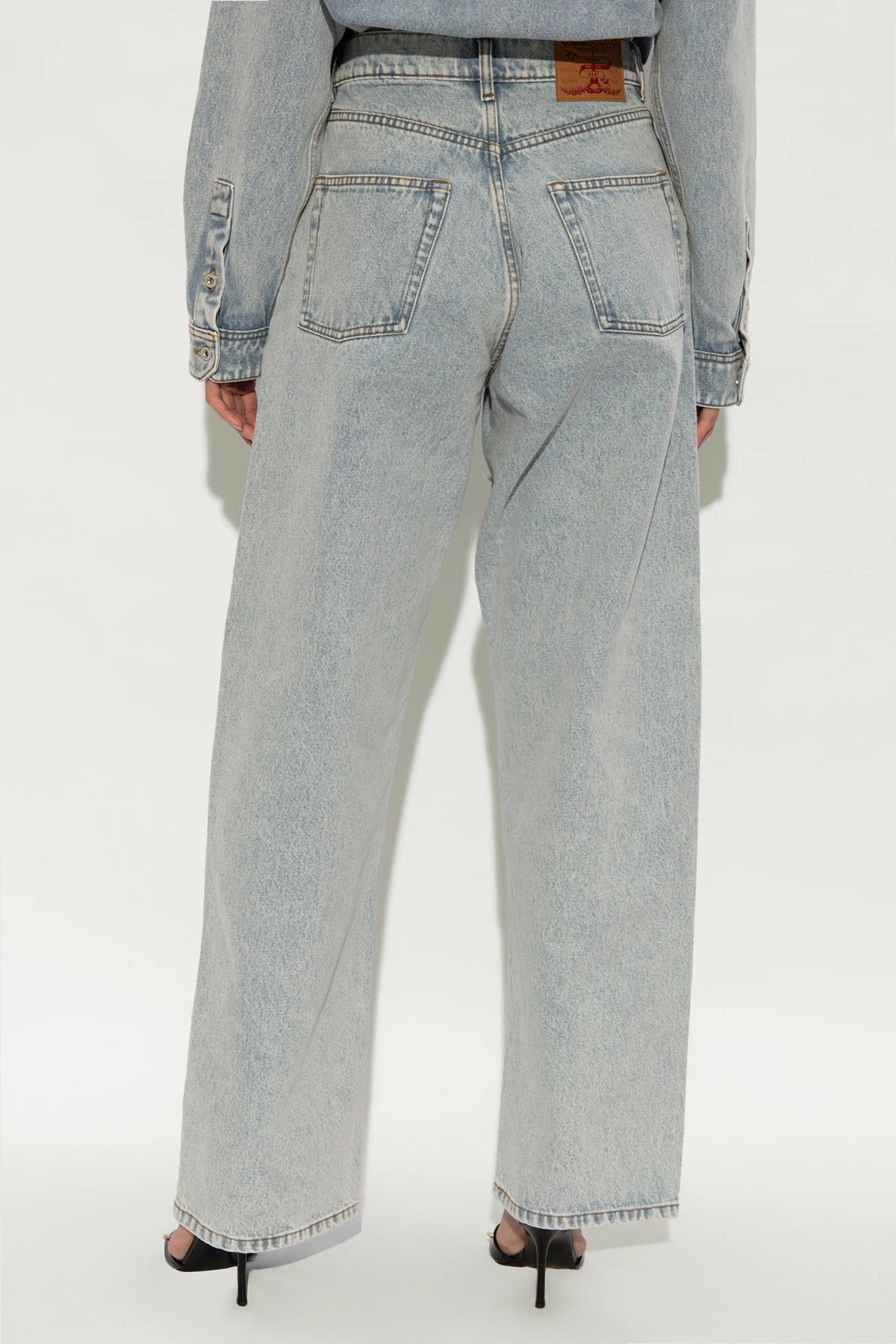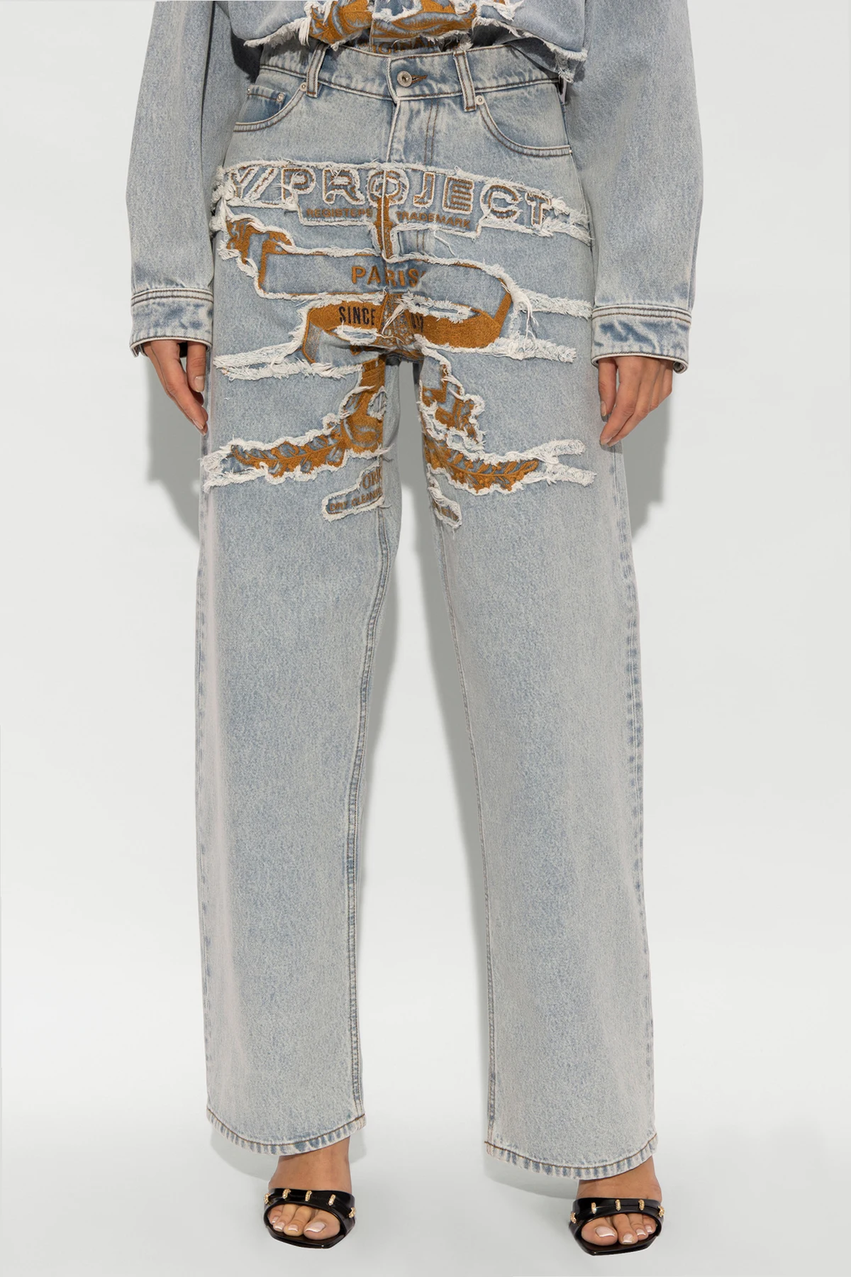 Wir präsentieren Ihnen die Jeans mit weitem Bein des renommierten Designers Y Project , die die Quintessenz modernen Designs und außergewöhnlichen Stils darstellen. Hergestellt aus 100 % Baumwolle, vereinen diese Jeans klassischen Komfort mit einem avantgardistischen Aussehen und sind eine perfekte Ergänzung für die Garderobe jedes Trendliebhabers. Die dominierende blaue Farbe harmoniert wunderbar mit den beige Kontrastelementen, die durch künstlerisch gestaltete Abnutzungserscheinungen durchscheinen und einen effektvollen, geschichteten Look kreieren.