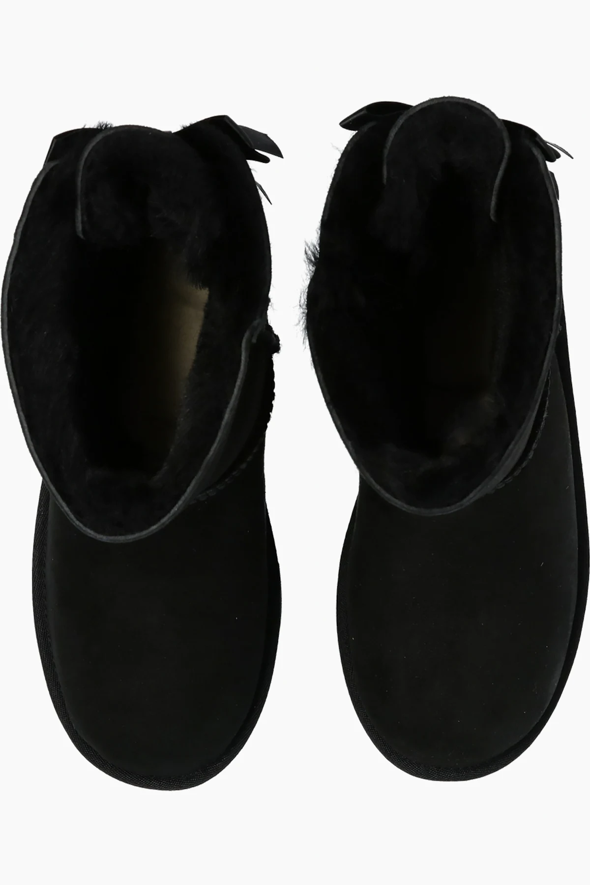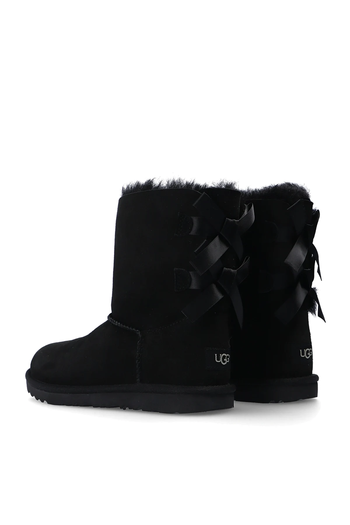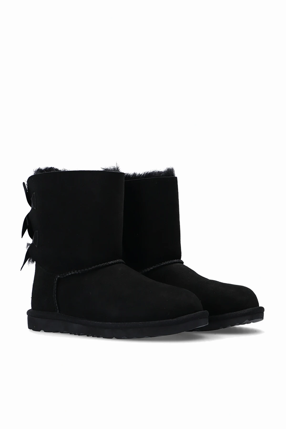 Black ‘Bailey Bow II’ snow boots from UGG Kids. Crafted from suede lined with sheep wool, this model features exposed stitching, sewn-on logo appliqué, two decorative bows and a textured EVA sole in black.