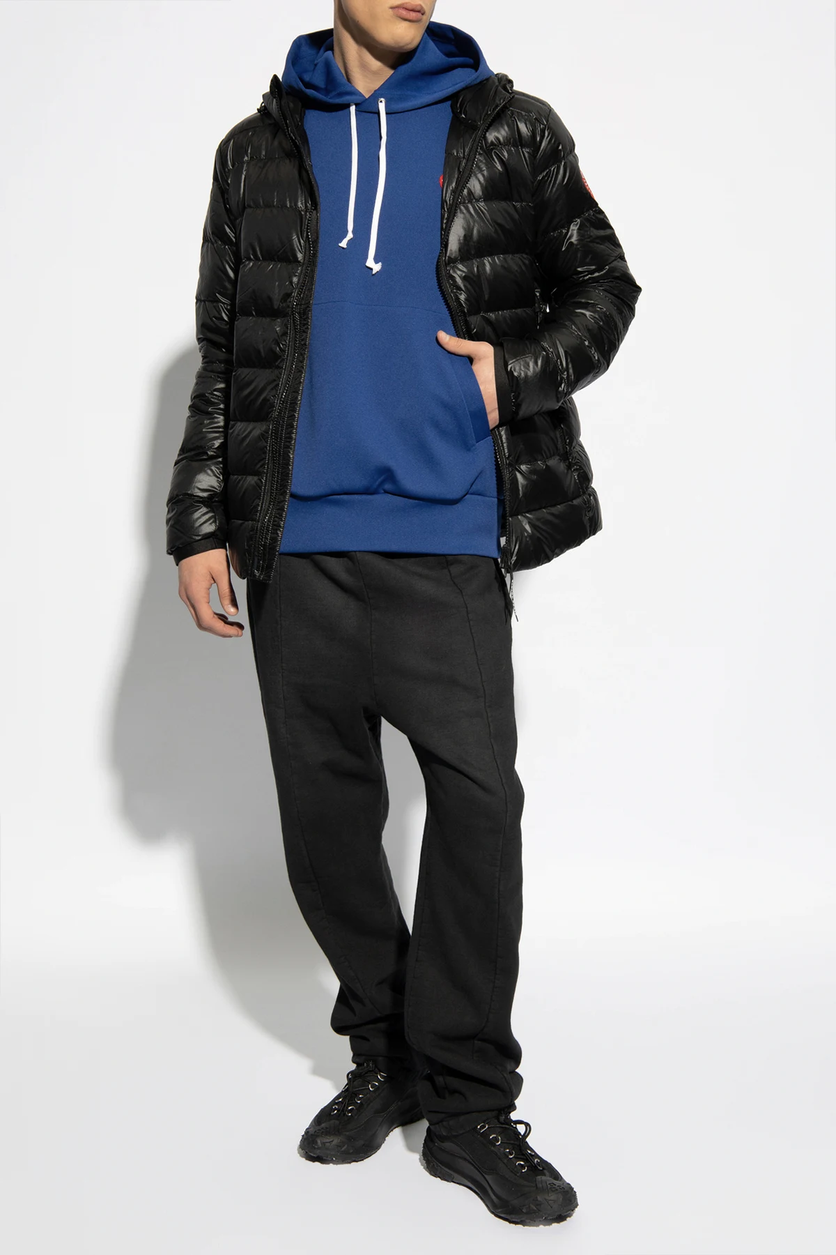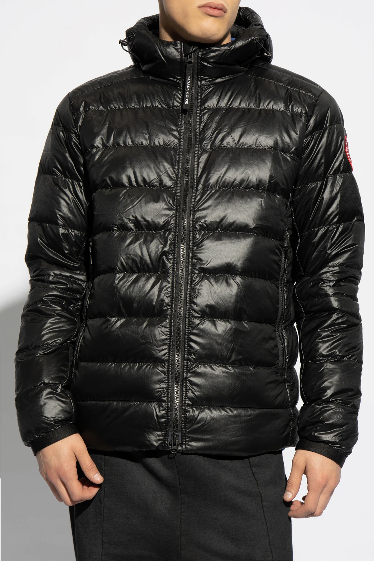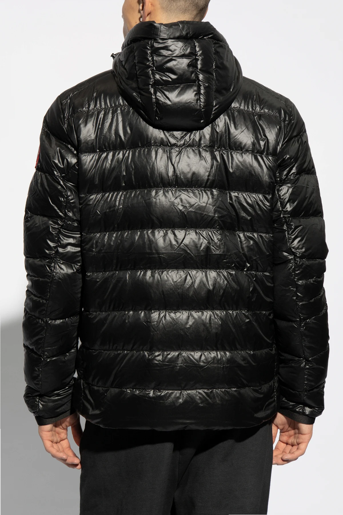 Black ‘Crofton’ quilted down jacket with a drawcord-adjustable hood from Canada Goose. Emblazoned with a red, white and navy blue branded patch on the sleeve, this winter-savvy design is complete with a two-way zip fastening and two zipped pockets on the front. Temperature rating: 0°C / -15°C.