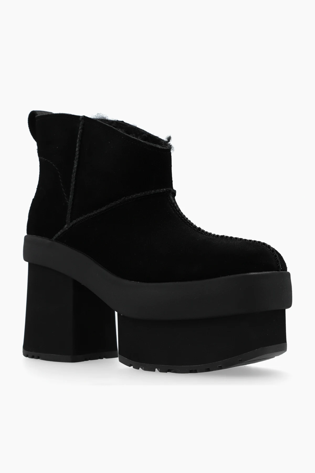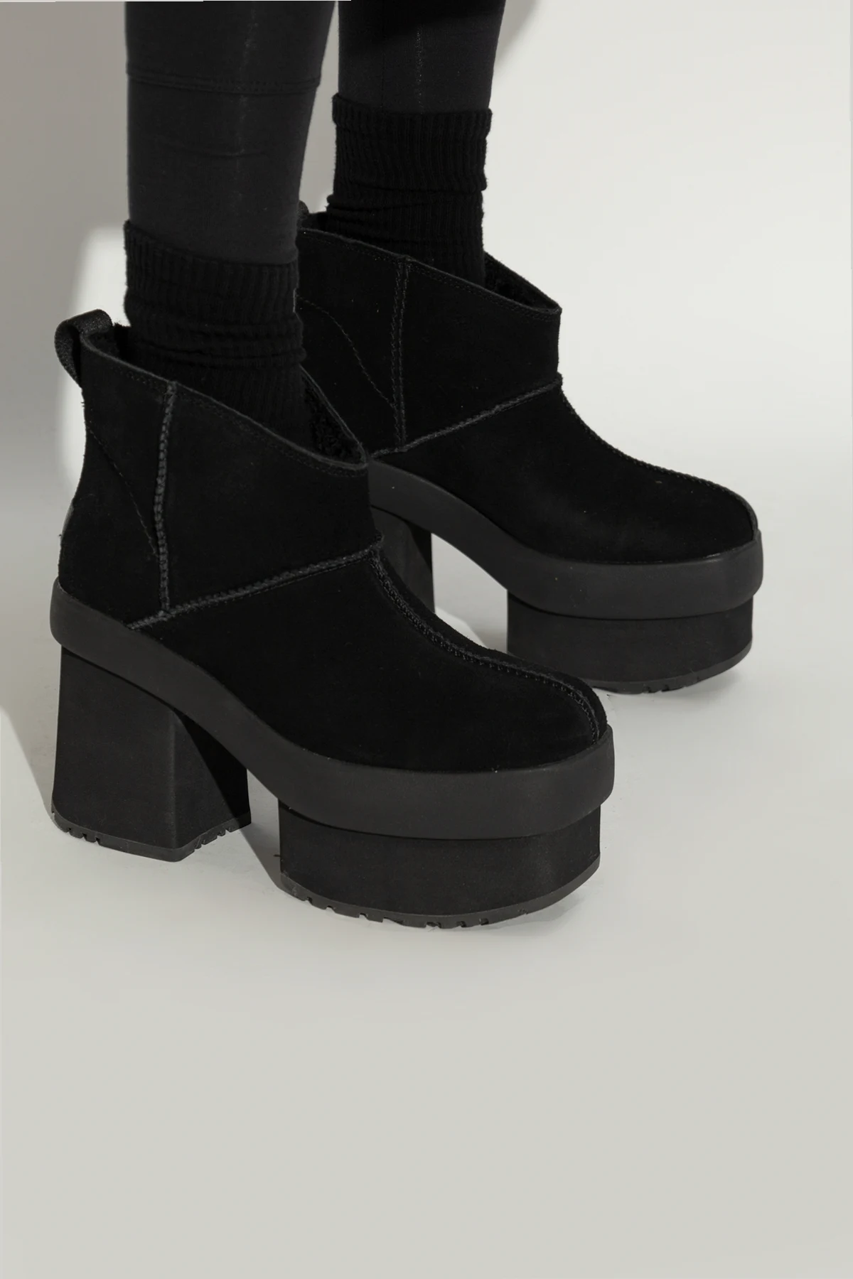 New Heights Platform High-Heeled Boots aus der exklusiven Kollektion der Marke UGG sind die Quintessenz von Eleganz und modernem Design. Diese schwarzen High-Heeled Boots, gefertigt aus hochwertigstem Wildleder, bieten außergewöhnlichen Komfort und Stil.