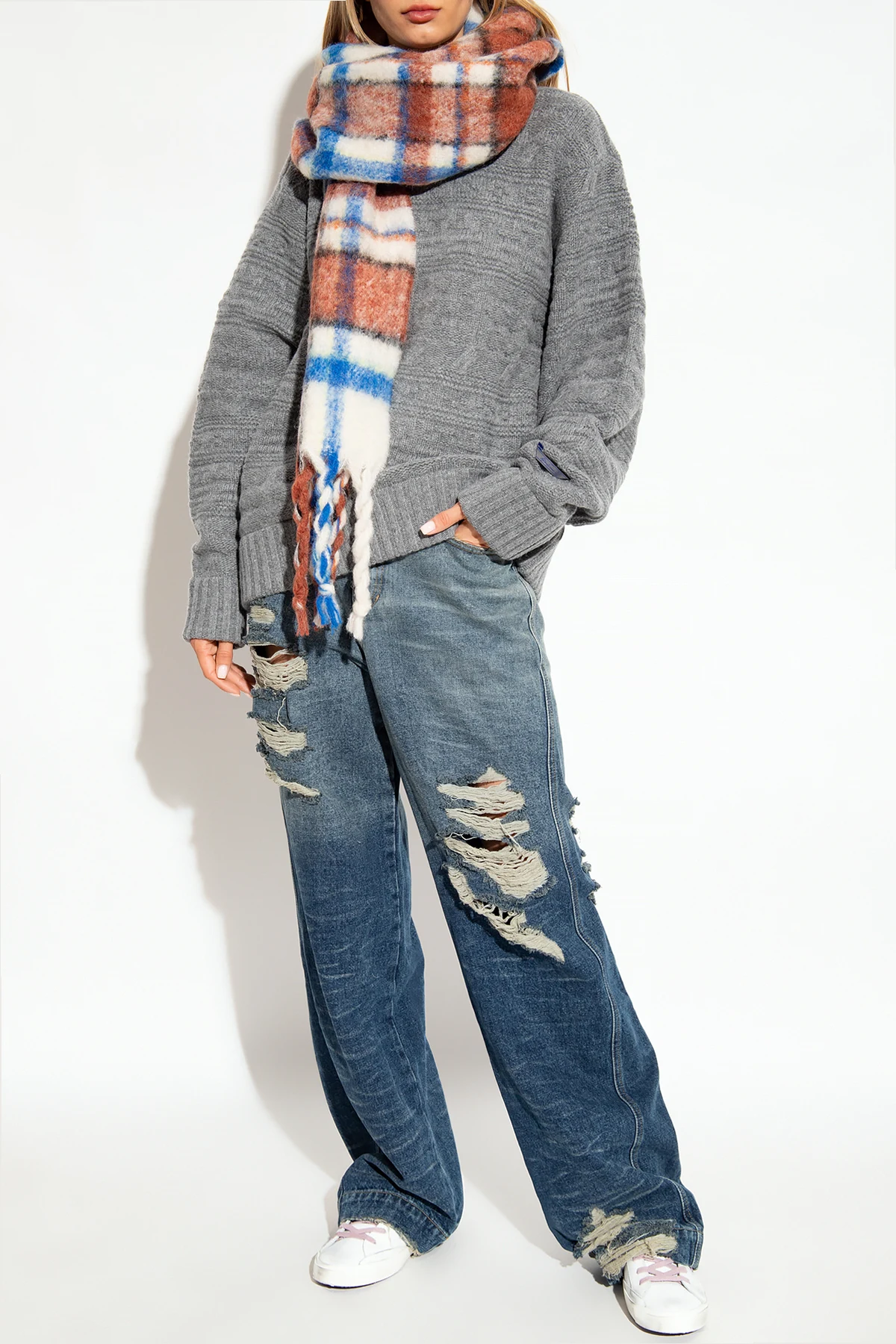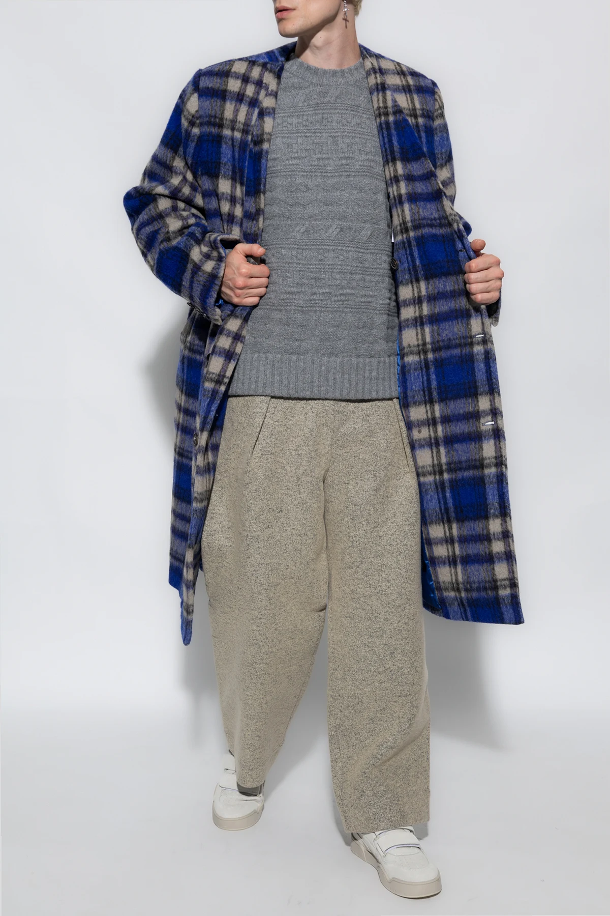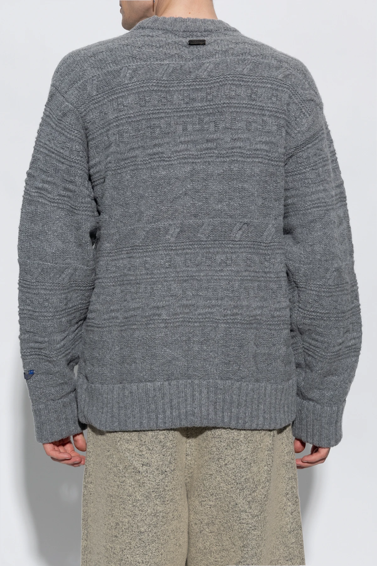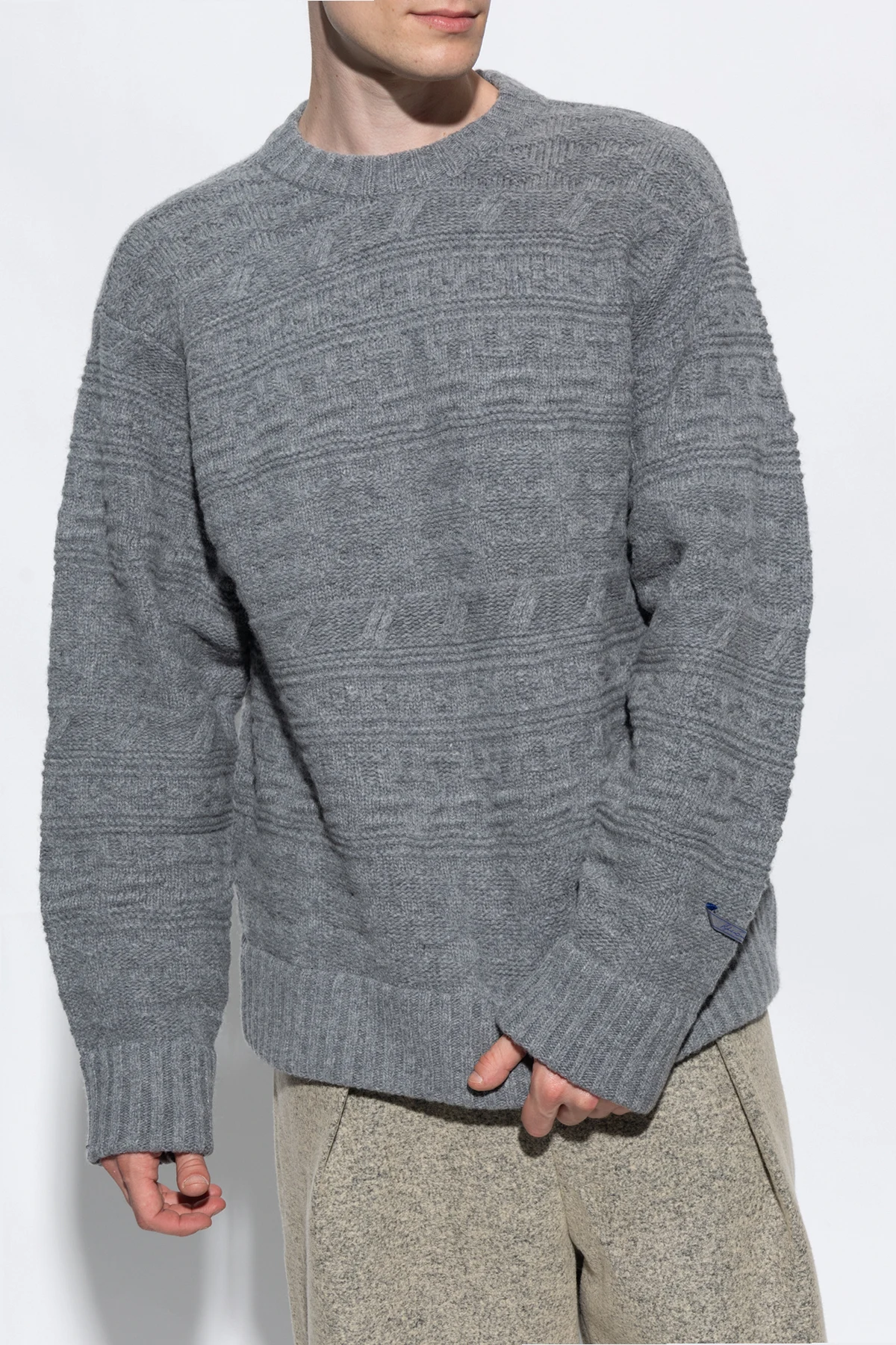 Grey loose-fitting sweater from Ader Error. Crafted from wool, this long sleeve design features a decorative knit, logo detail and ribbed trims at the crew neck, hem and cuffs.