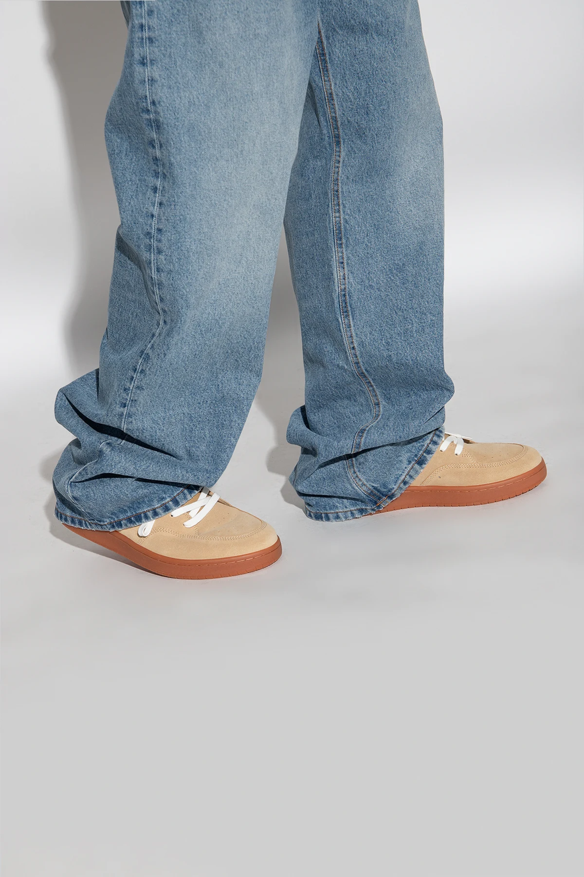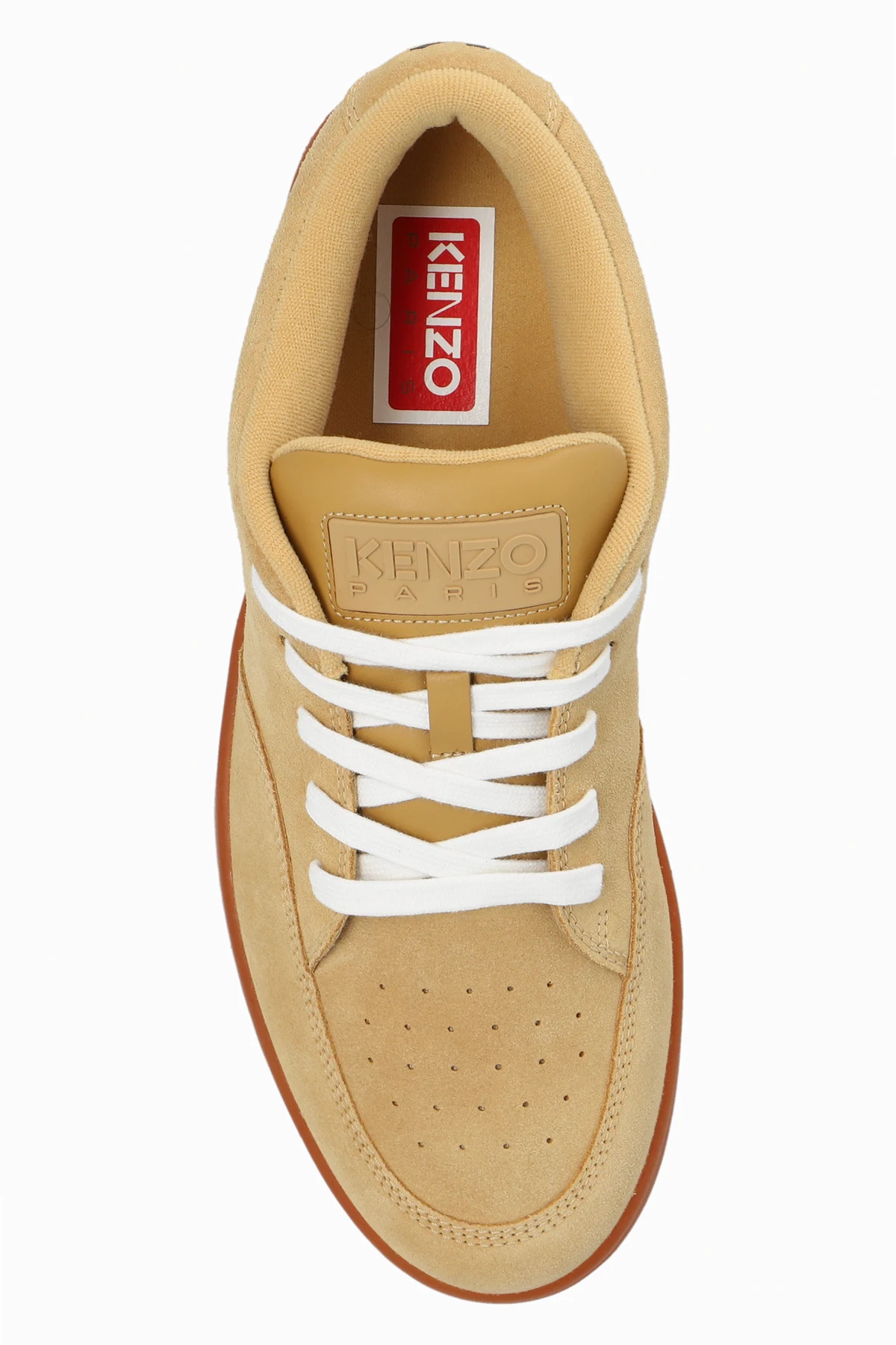 Light brown 'Kenzo-dome' sneakers from Kenzo. Crafted from suede, this lace-up model sits on a brown rubber sole and showcases the brand's logo and perforations.