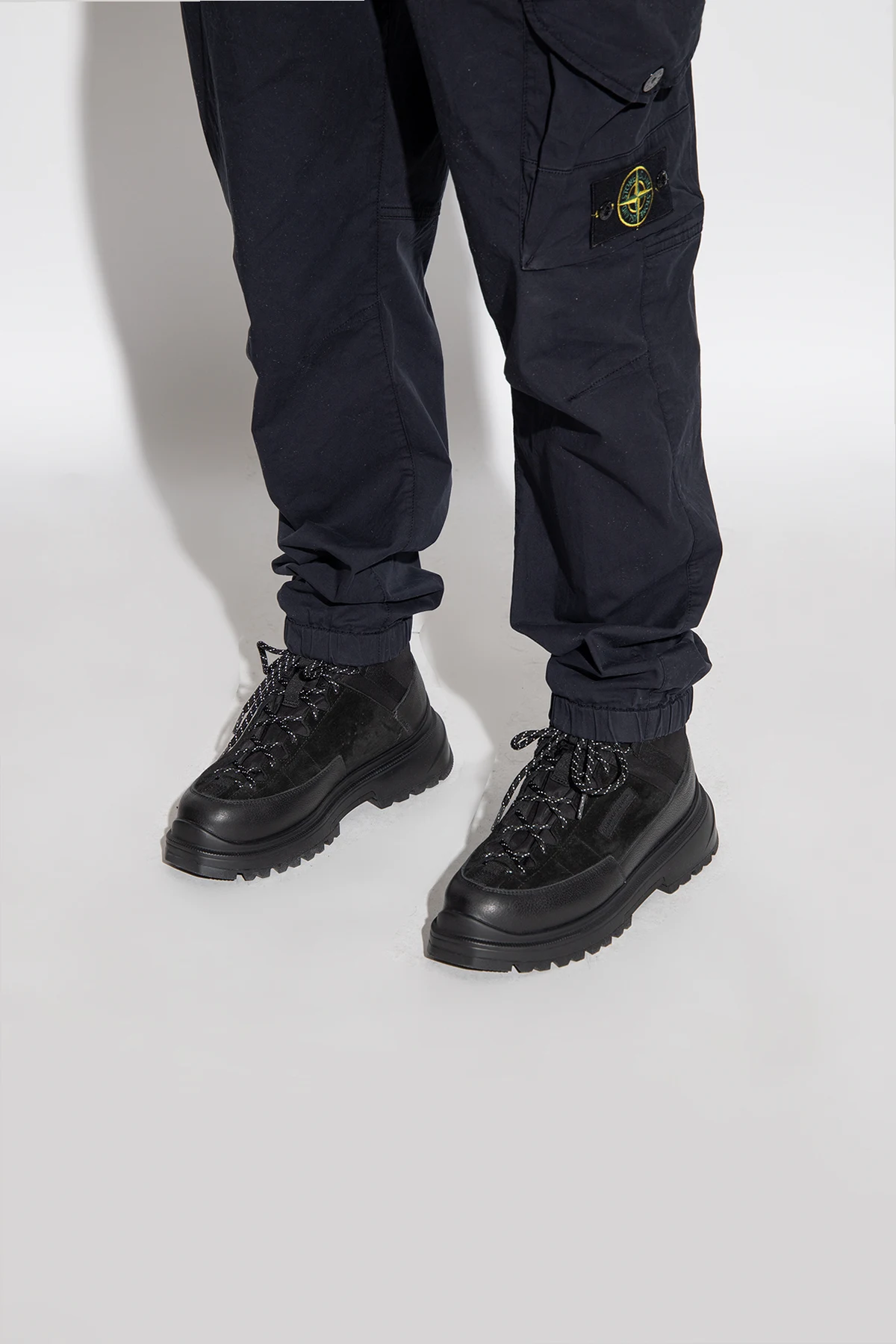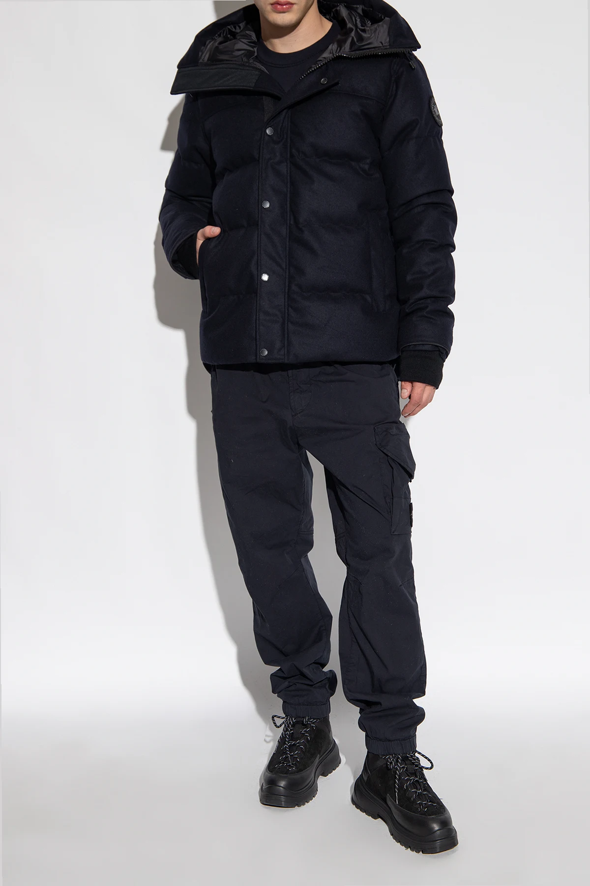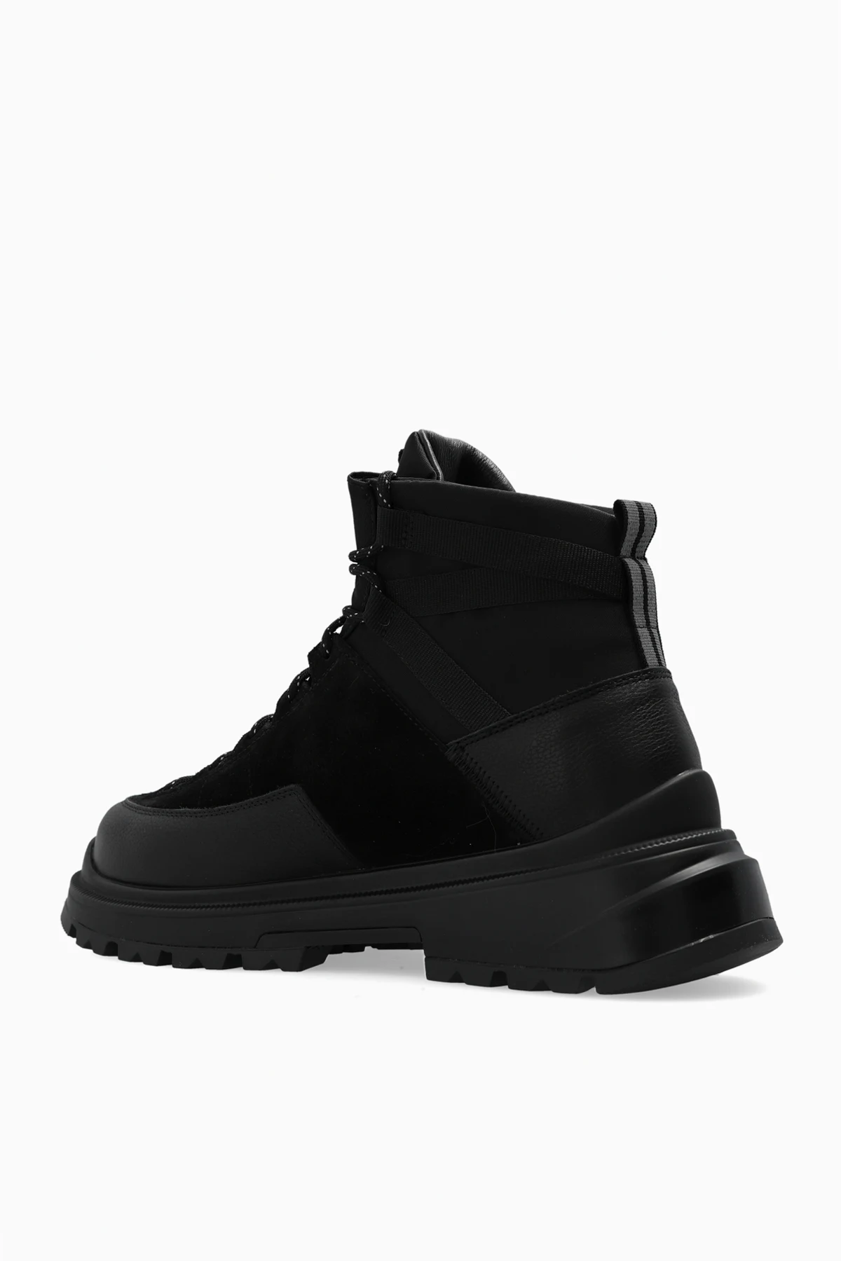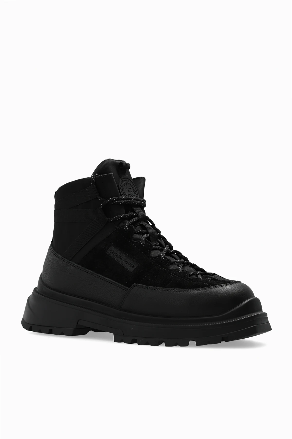 Black ‘Journey Lite’ boots from Canada Goose. Fully waterproof, this lace-up pair sits on a black rubber sole with a deep tread design for excellent grip and features suede trims, shoelaces coated with hydro treatment for enhanced water-resistance and extra ankle support. The interior body of the boot is laminated with an innovative HDry® membrane, a patented technology that enables waterproof and breathable performance. OrthoLite® insole for high-performance comfort, lined with onSteam® fabric, a 100% breathable microfibre with excellent temperature-regulating properties to keep the foot dry and comfortable. Comes with a pair of yellow shoelaces.
