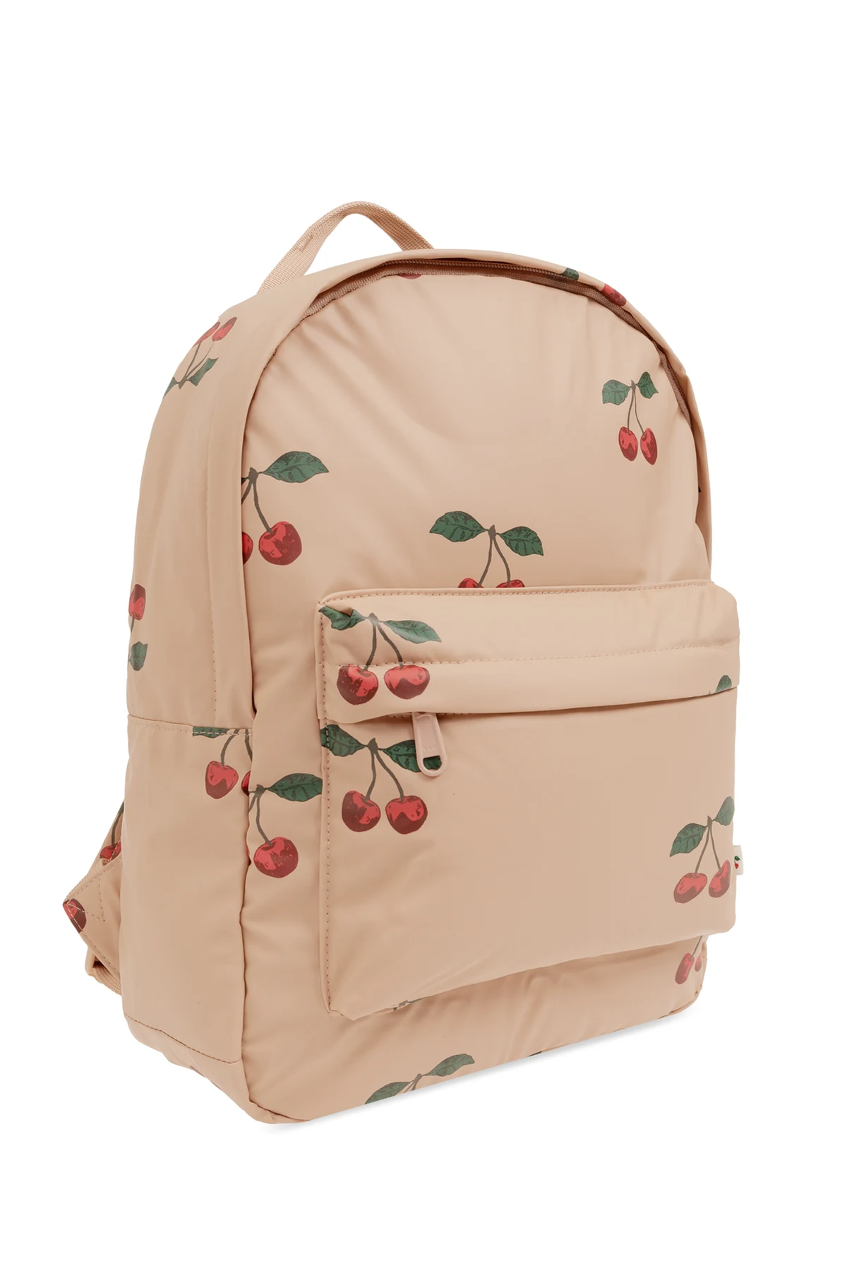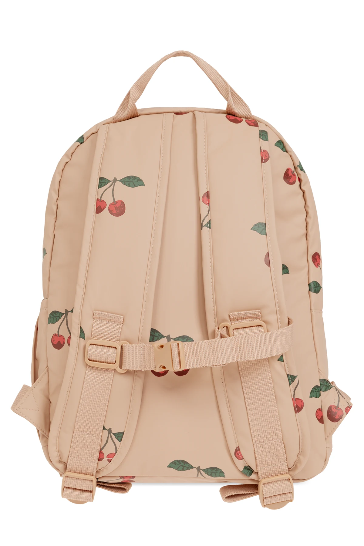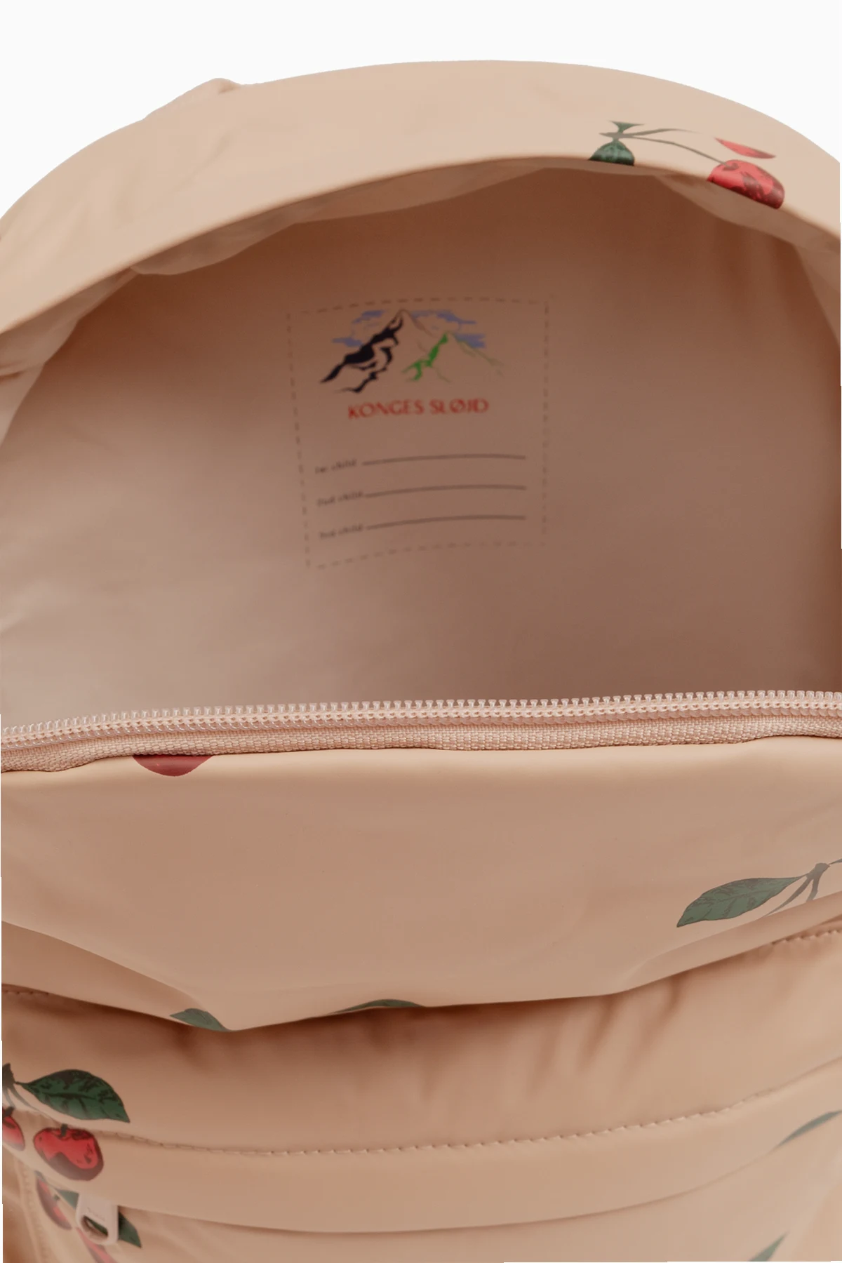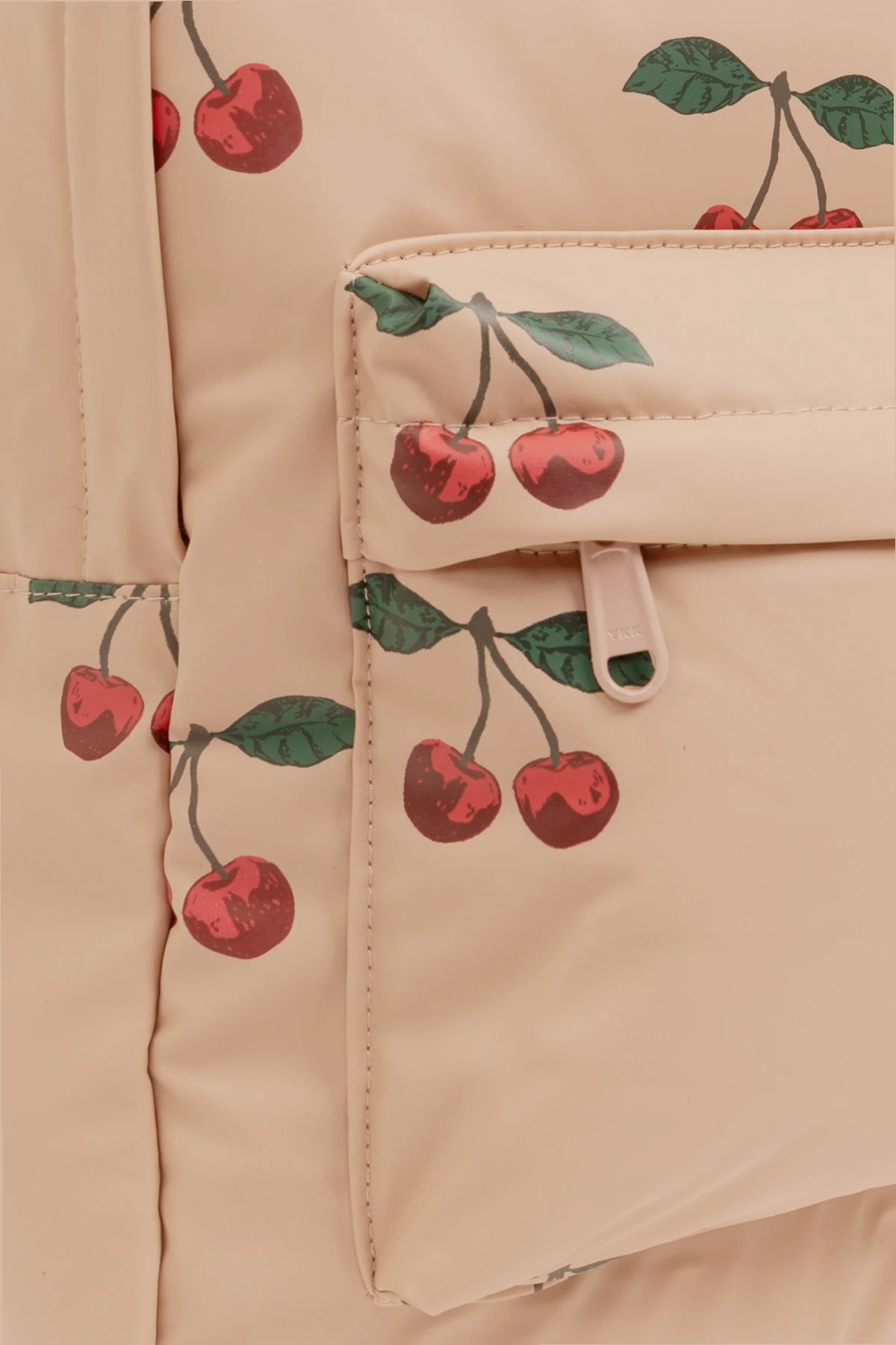 Der Rucksack mit Kirschmuster, entworfen von der bekannten dänischen Marke Konges Sløjd , ist ein elegantes und funktionales Accessoire aus der exklusiven Kinderbekleidungskollektion. Seine klassische, rechteckige Form mit abgerundeten Kanten und das niedliche Design mit roten Kirschen und grünen Blättern auf rosa Hintergrund machen ihn zu einem einzigartigen und stilvollen Bestandteil der Garderobe des jungen Nutzers.