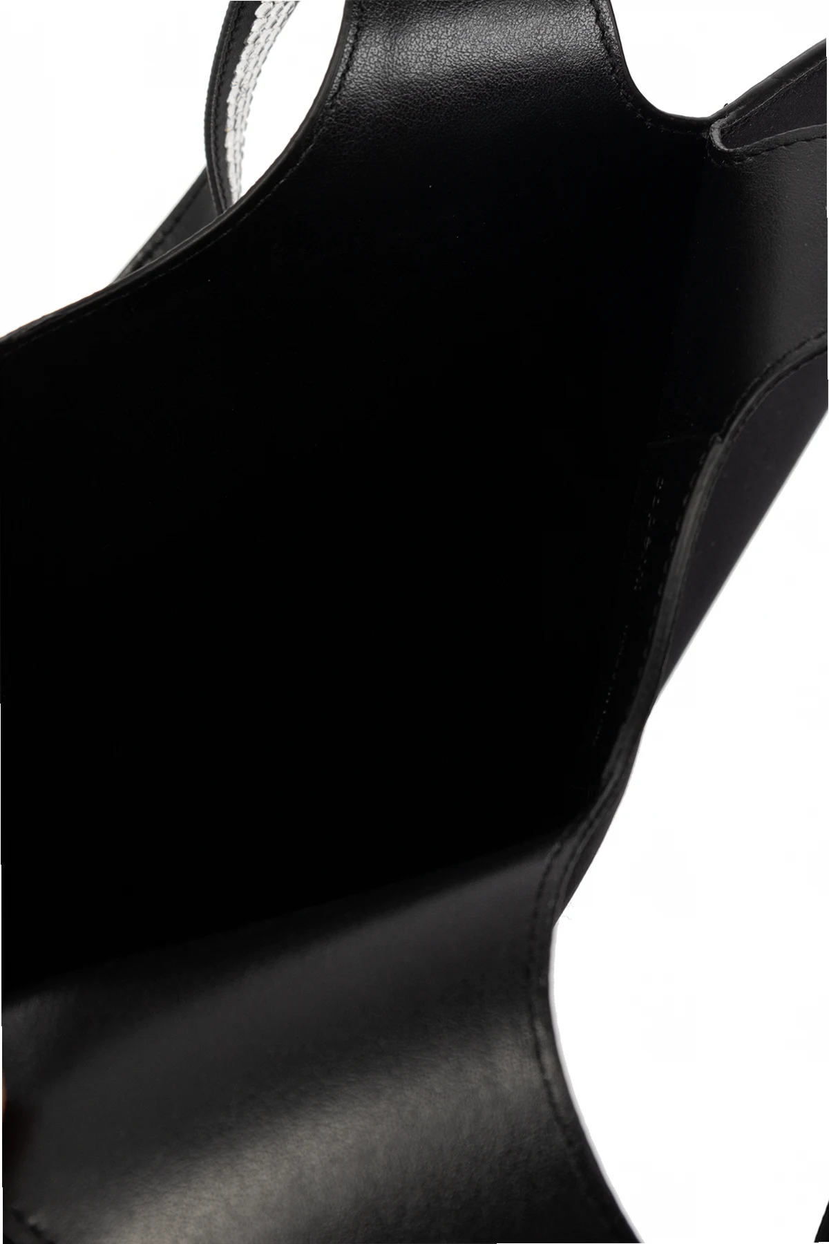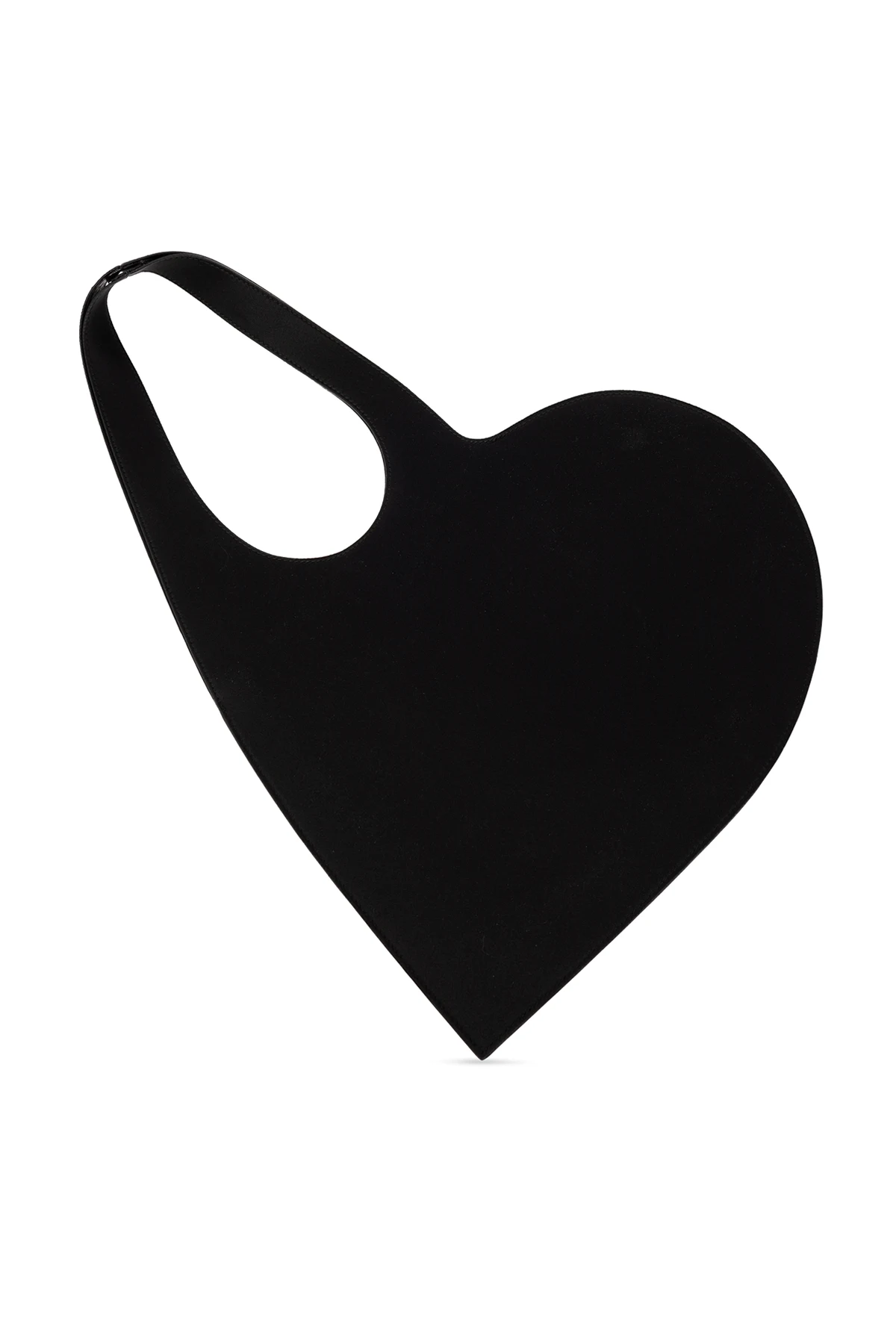 Black ‘Heart Mini’ leather shoulder bag from Coperni. Crafted from fabric and trimmed with leather, this design is spruced up with glossy appliqués on the front and features two handles and one internal compartment.