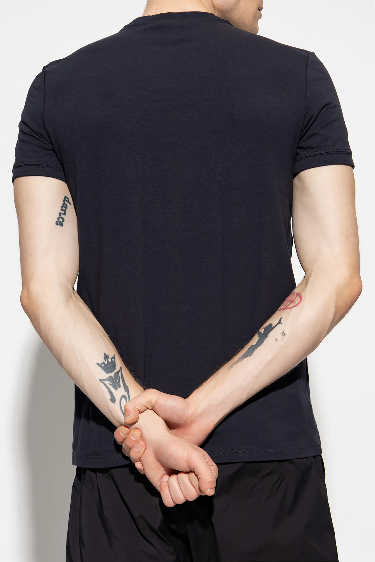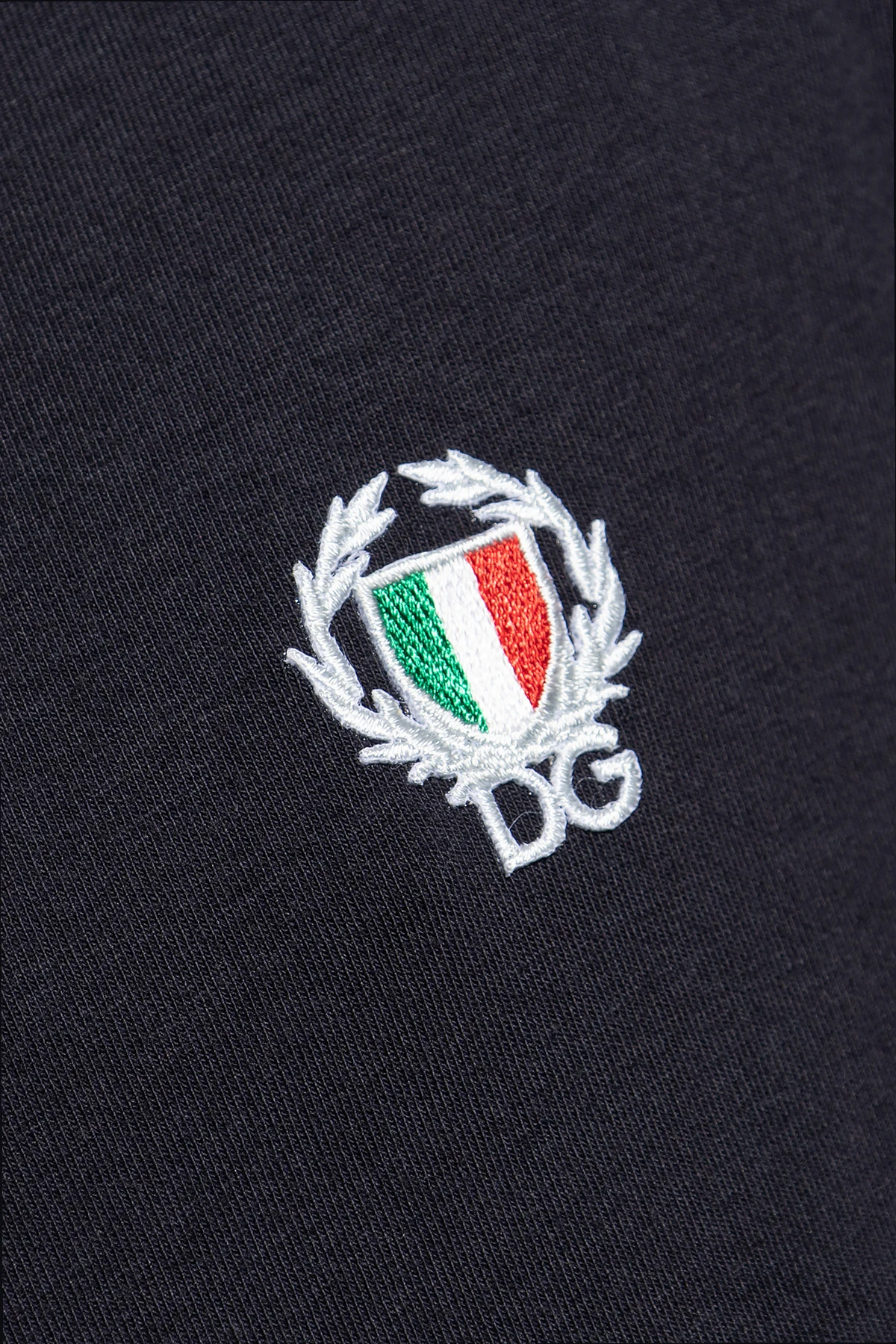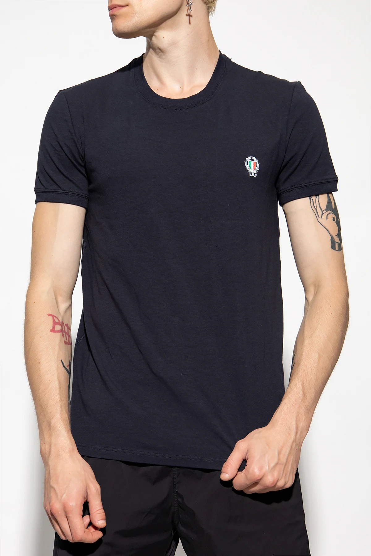 Navy T-shirt from Dolce & Gabbana, the ‘Underwear’ collection. Made of cotton, this short sleeve design features a white, red and green logo patch as well as a ribbed crew neck.