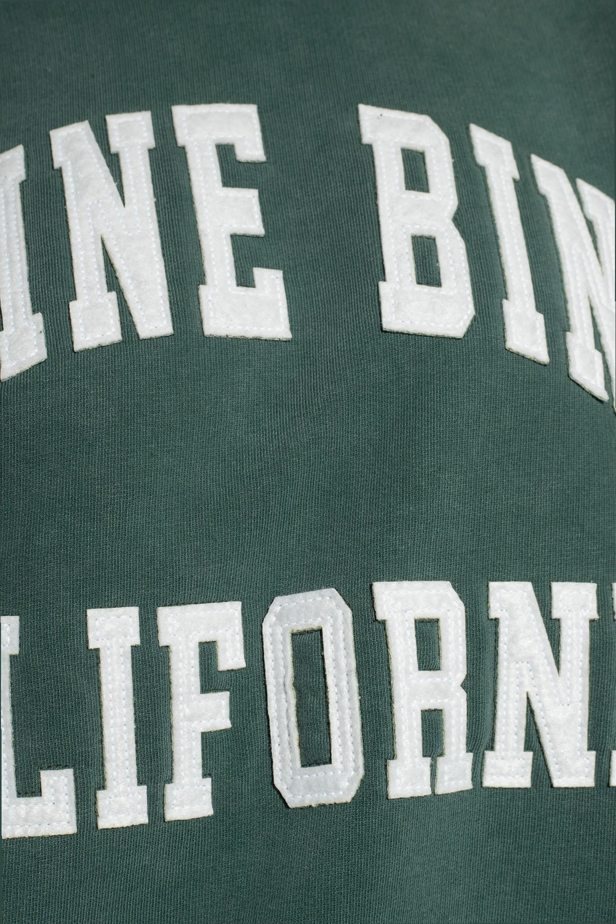 Green ‘Miles’ crewneck sweatshirt from Anine Bing. Made from washed cotton, this style showcases white logo patches on the front, long sleeves and ribbed trims on the collar, bottom hem and cuffs.