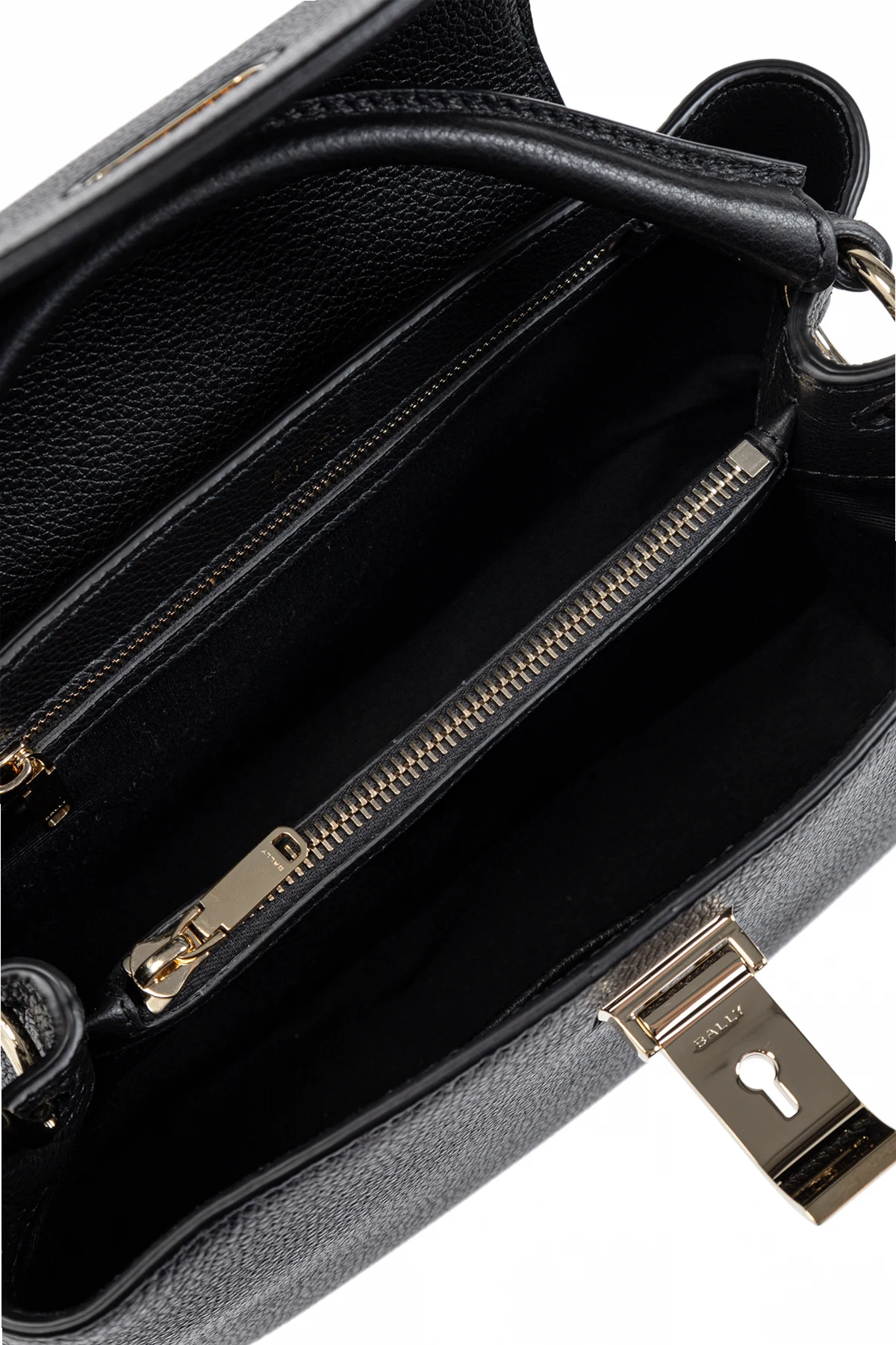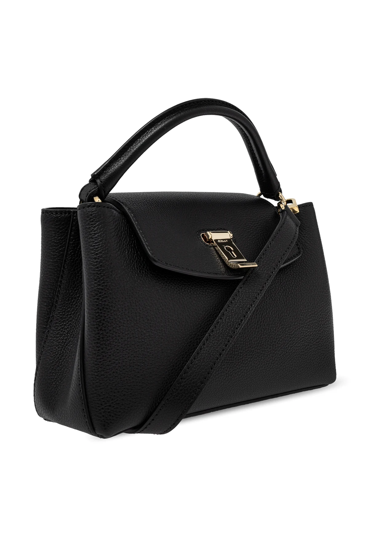 Schultertasche `Layka Small` von Bally ist der Inbegriff von Eleganz, kombiniert mit Praktikabilität. Gefertigt aus einem Material, dessen Textur an Vollnarbenleder erinnert, strahlt sie Luxus aus, während ihre schwarze Farbe Universalität verleiht. Die Exklusivität dieses Produkts wird durch die präzise Verarbeitung und die raffinierten goldenen Details unterstrichen – der metallische Verschluss mit eingravierter Markenbezeichnung auf der Vorderseite dient nicht nur einem praktischen Zweck, sondern ist auch ein dekoratives Element.