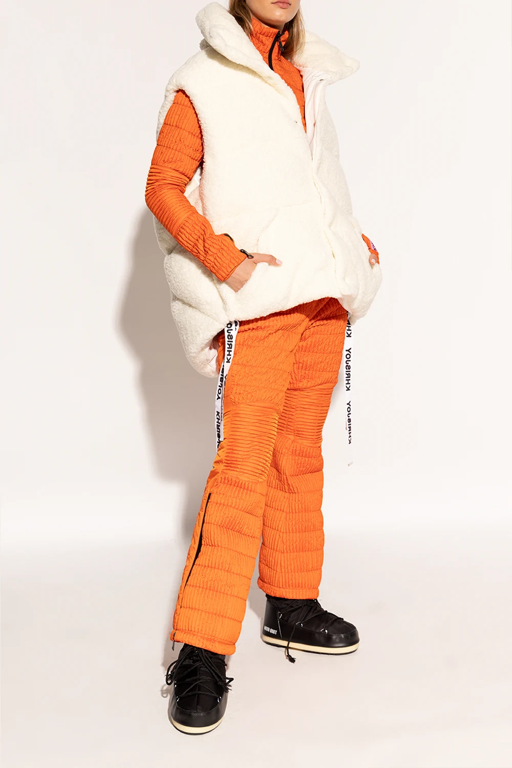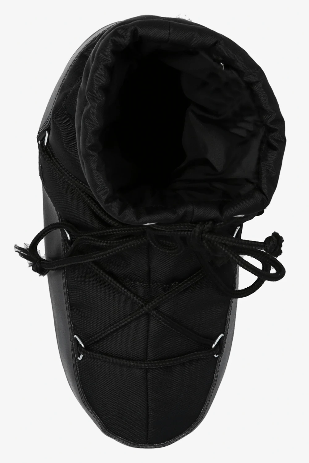 Black ‘Light Low’ snow boots from Moon Boot. This pair features double tie fastenings, white logo print and rubber sole in cream and black. Inspired by the peculiar shape and technology of the astronauts’ boots, the iconic style was designed in 1969 after the first Moon landing.