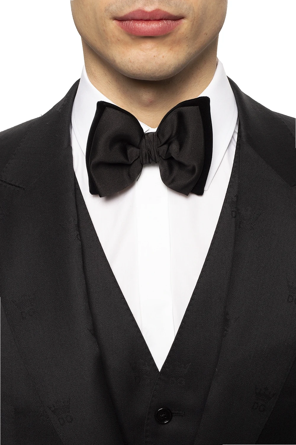 Schwarze, zweischichtige, samtige Fliege von Dsquared2. Aus Seide gefertigt. Mit Hakenverschluss. Verstellbares Band.