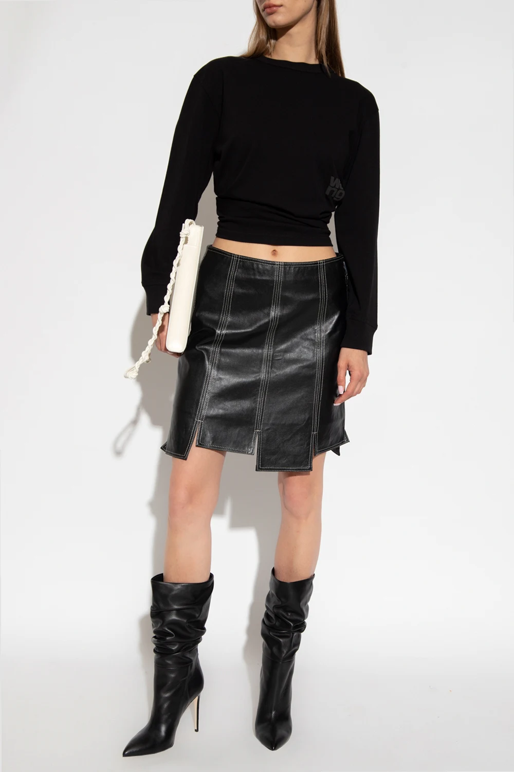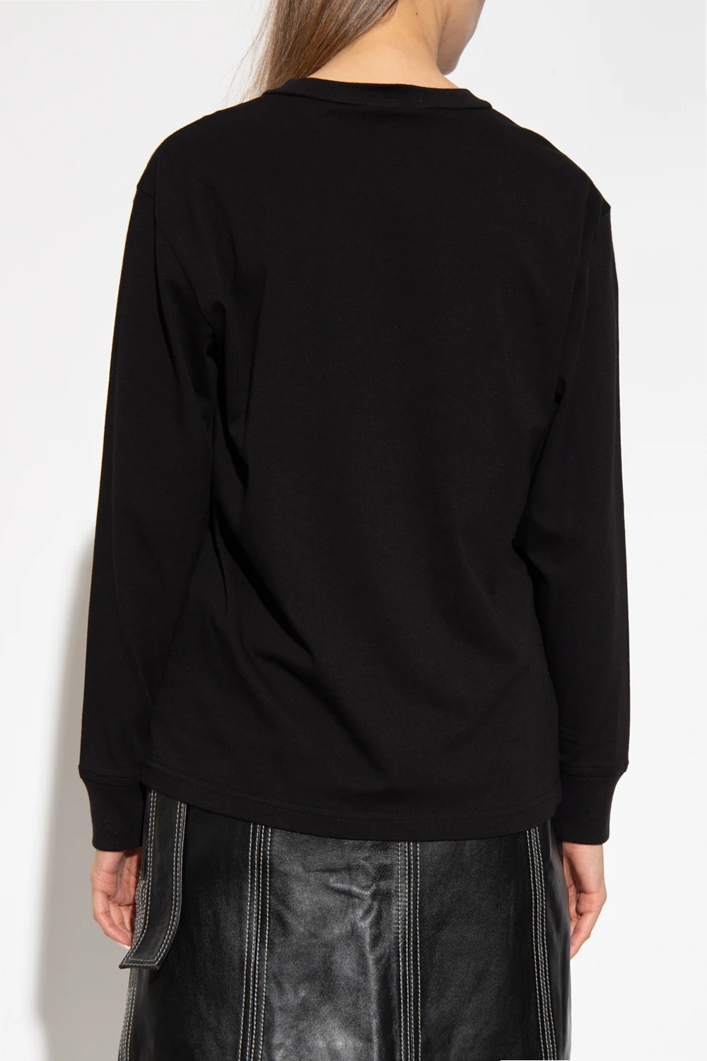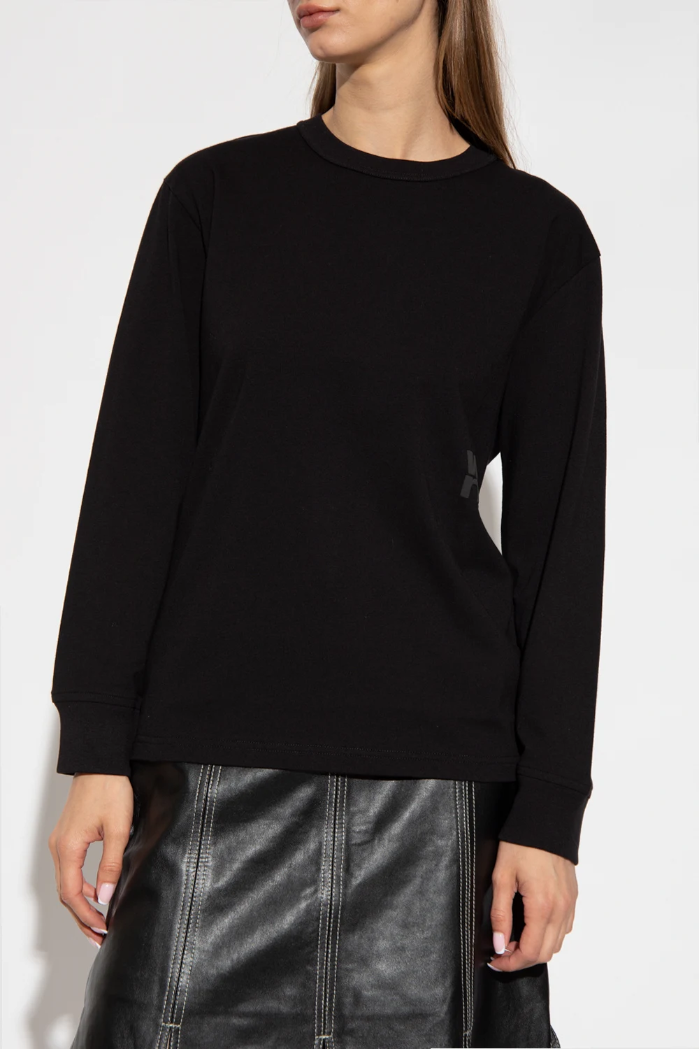 Black crewneck T-shirt from Alexander Wang. Made of cotton, this style features long sleeves and the designer's logo printed on the front.