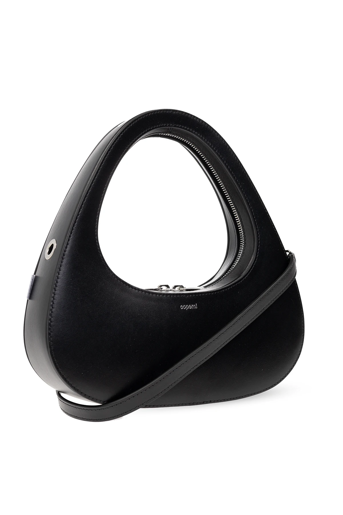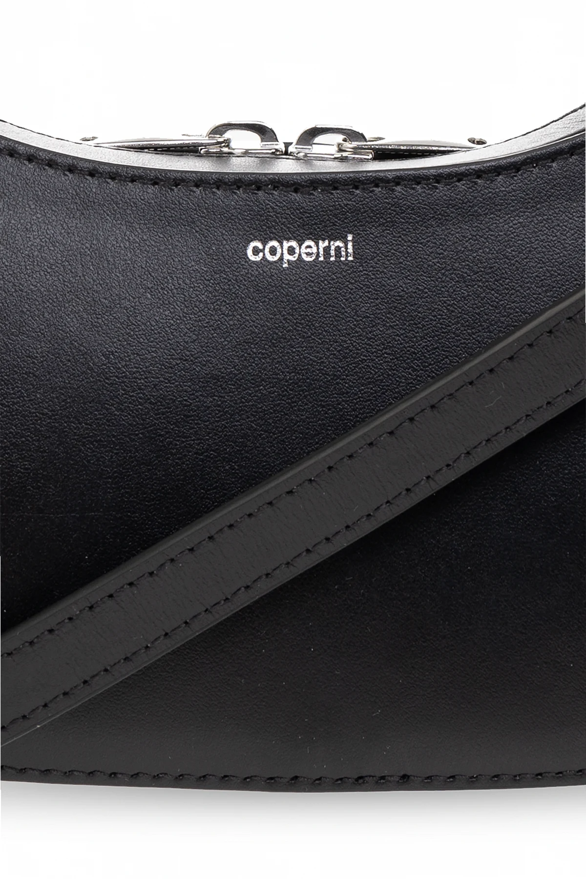 Black ‘Swipe Baguette’ shoulder bag from Coperni. Made of calf leather, this design secures with a two-way zip and showcases a printed silver-tone logo on the front. It is complete with a detachable shoulder strap, one half-round handle, silver-tone metal hardware and one internal compartment.