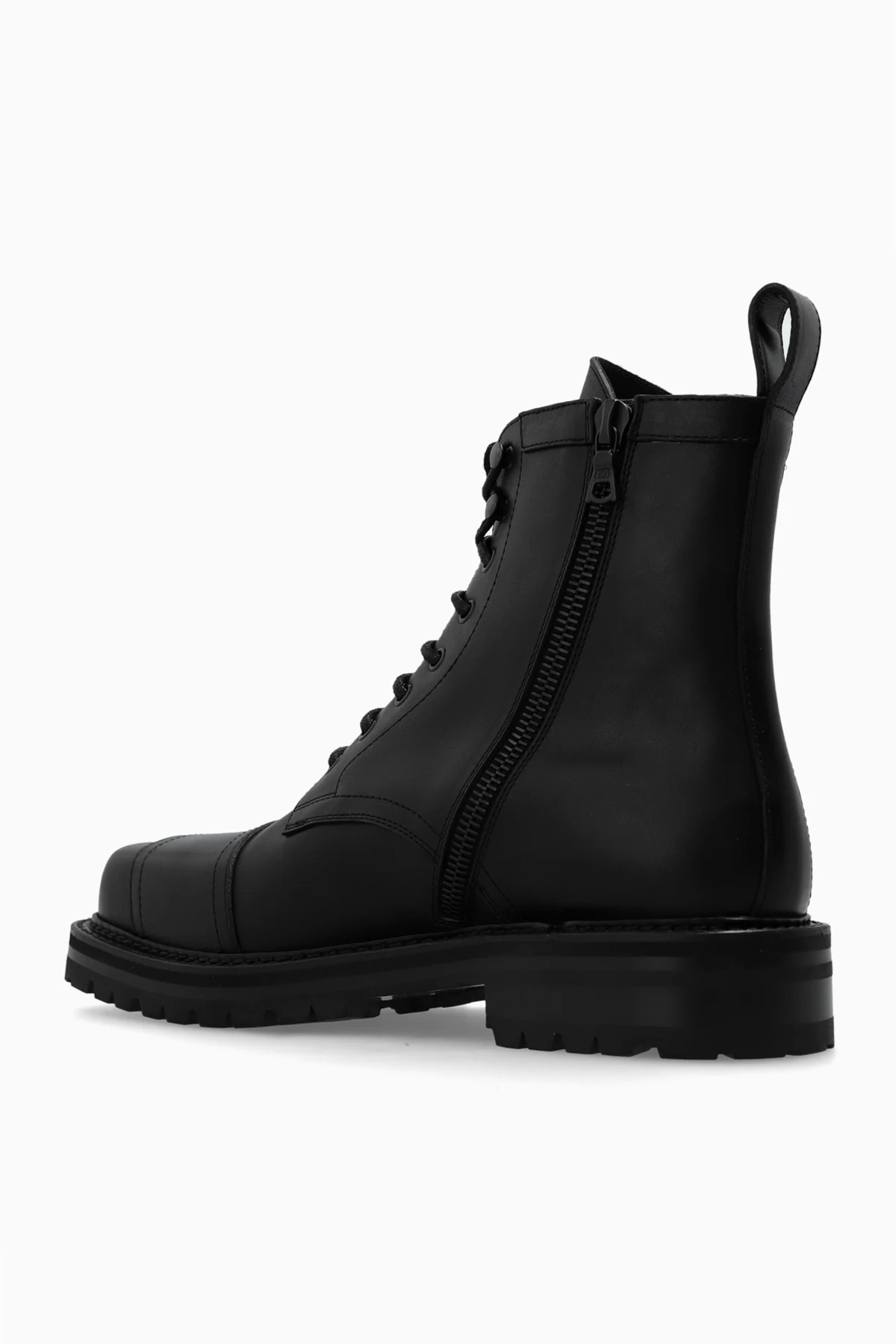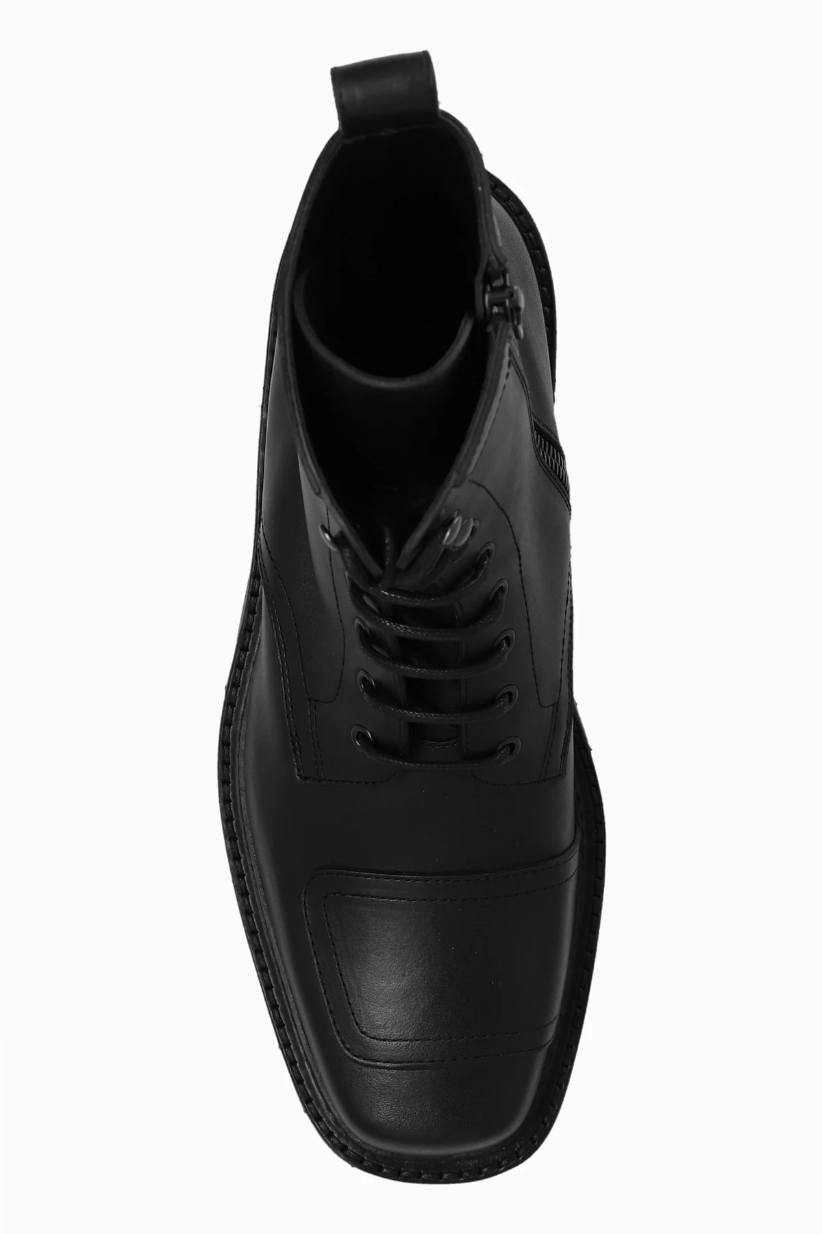 Die Stiefel zeichnen sich durch einen klassischen, knöchelhohen Schnitt mit deutlich akzentuierter Spitze und einer soliden, dicken Sohle aus. Vorne befinden sich geschnürte Ösen, und an der Innenseite der Stiefel ein praktischer Reißverschluss, der das An- und Ausziehen erleichtert.