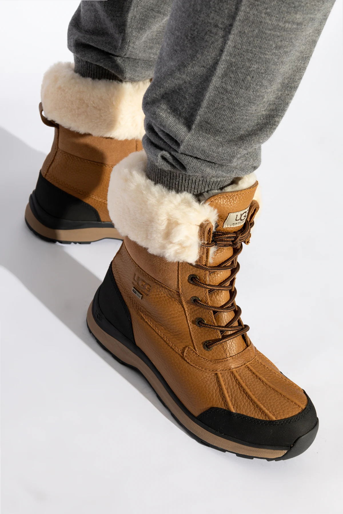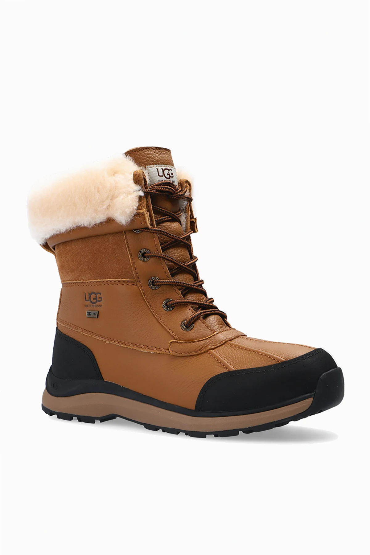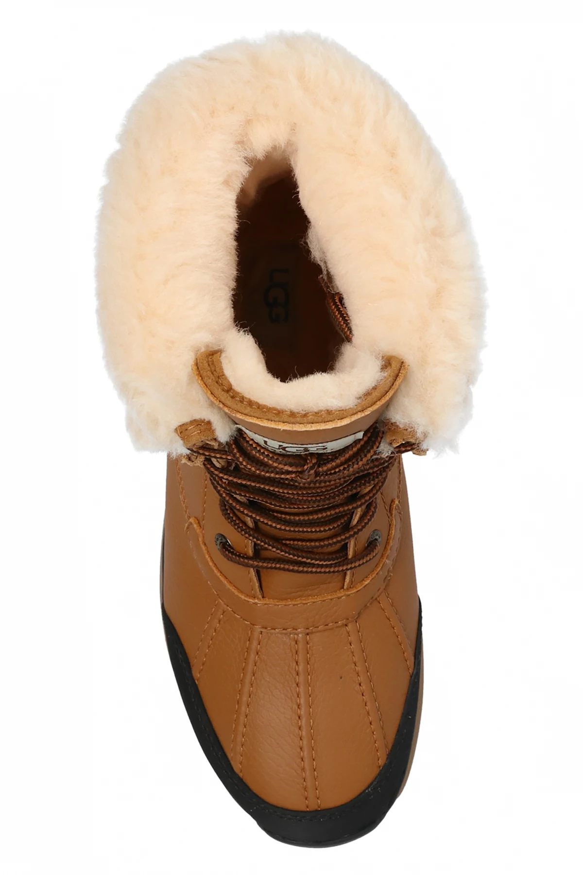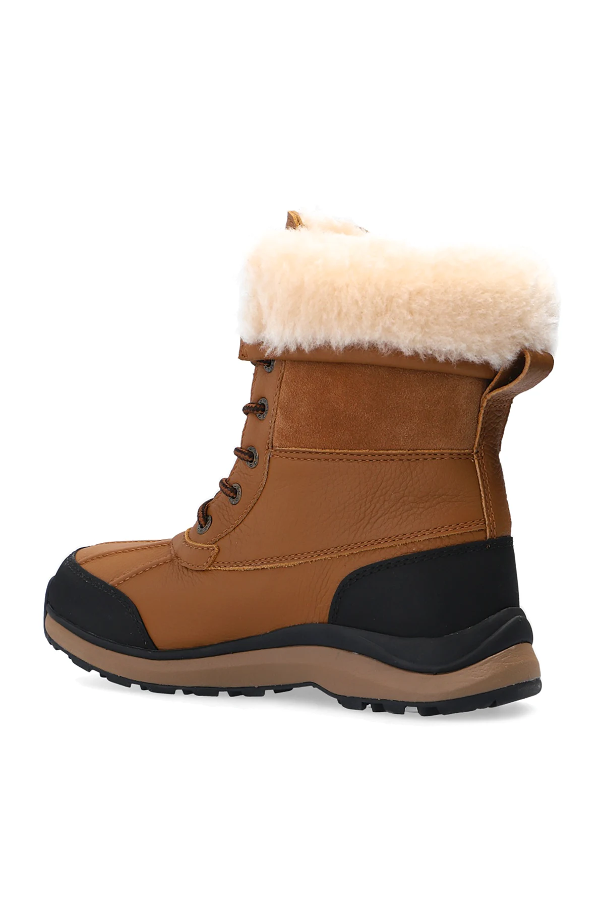Brown and black ‘Adirondack Boot III’ boots from UGG. Crafted from leather and suede, this lace-up design features sheep wool lining in cream, an embossed logo and a black rubber sole.