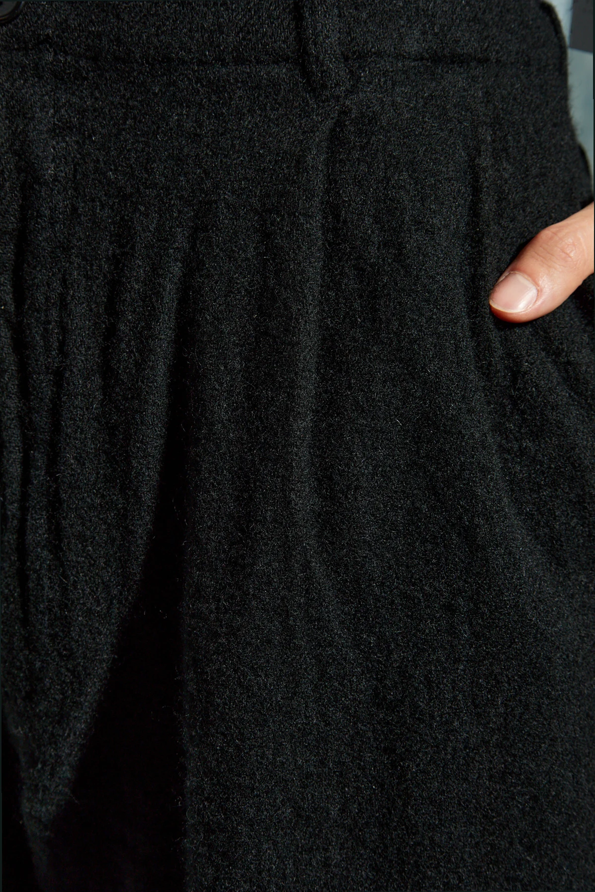 Wir präsentieren die schwarze Herren-Wollhose aus der prestigeträchtigen Linie Comme des Garçons Shirt , die Eleganz und Subtilität ausstrahlt. Gefertigt aus hochwertigem Wollstoff mit einem Nylon-Mix, bietet sie nicht nur Komfort, sondern auch Langlebigkeit. Ihr casualer Schnitt mit gerader Passform und leicht verjüngten Beinen kombiniert sich perfekt mit einem klassischen Knopf- und Reißverschluss, was ihre Vielseitigkeit unterstreicht.