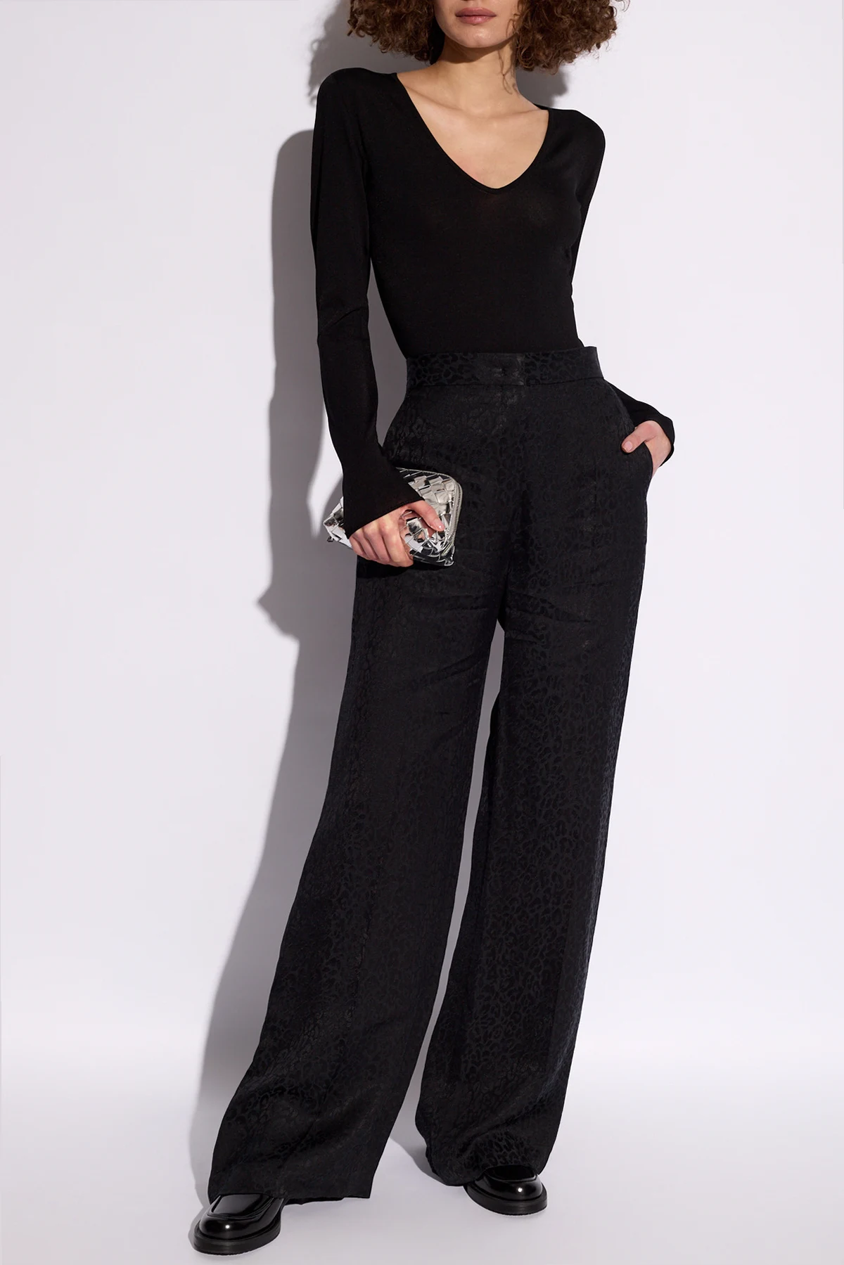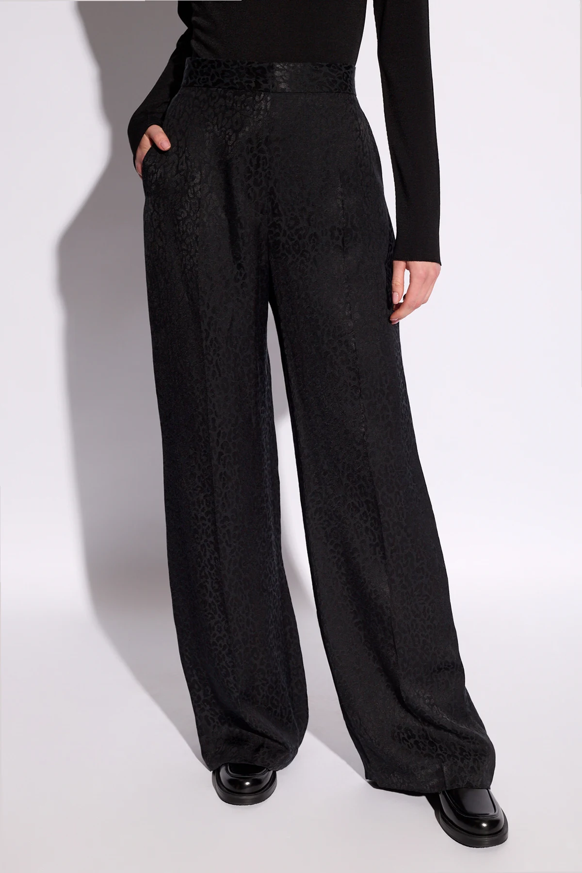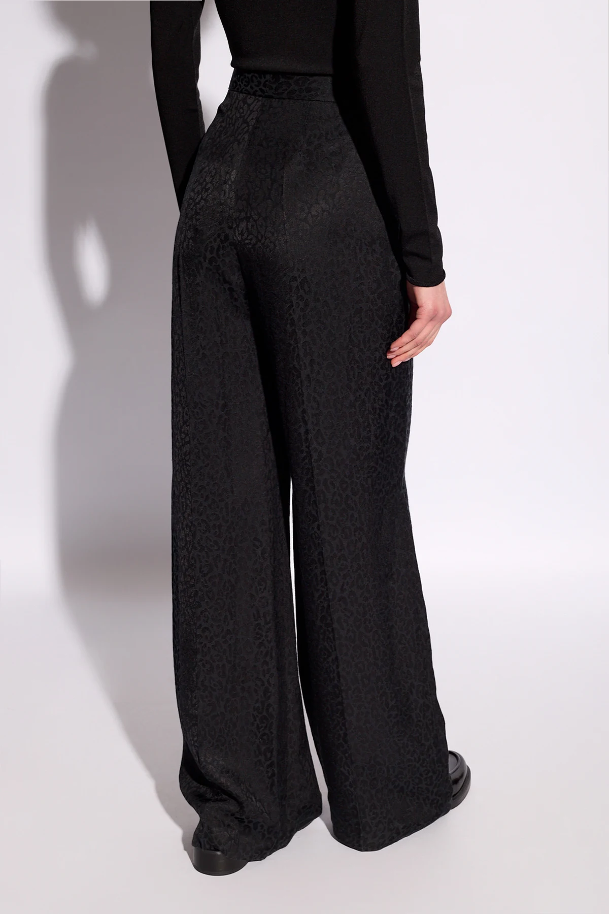 Black pleat-front trousers from PS Paul Smith. Embellished with an animal motif, this pair falls with wide legs and features a zip fly with a button and hook and two slip pockets.