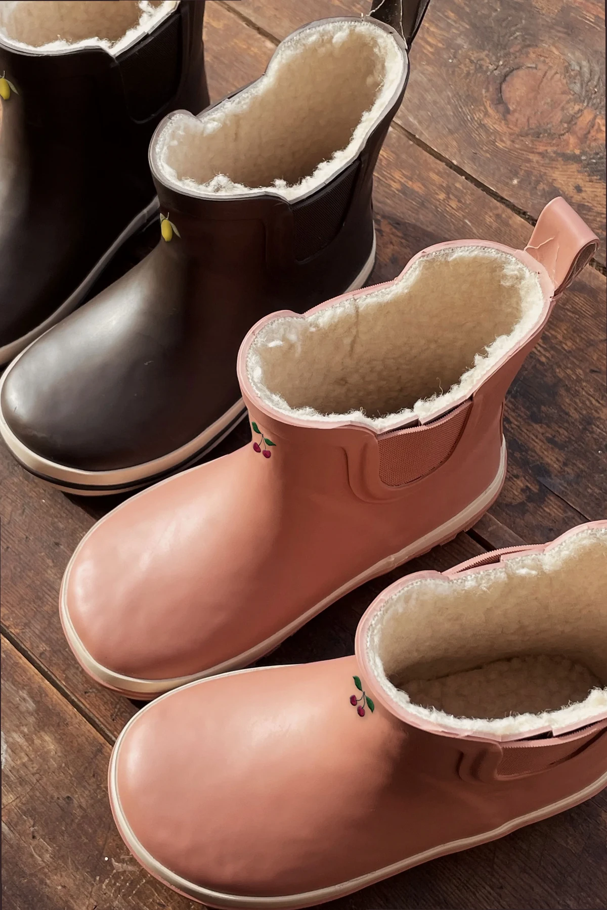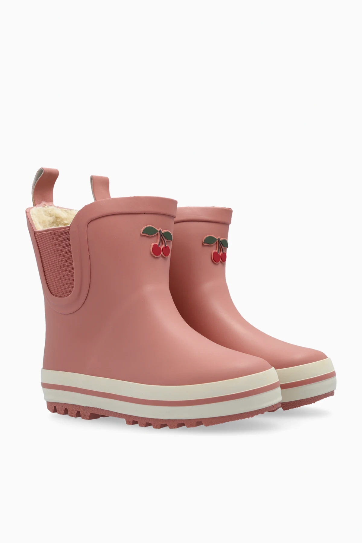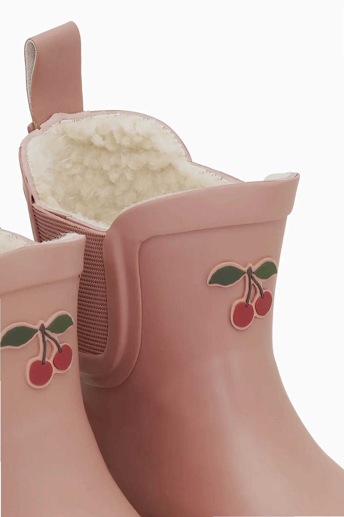 Auf der Vorderseite des Schafts befindet sich ein niedliches Detail in Form von zwei Kirschen, das dem Produkt einen einzigartigen Charakter verleiht. Hergestellt aus wasserdichtem Gummi, sind die Gummistiefel ideal für regnerische Tage, während das Innenfutter aus weichem, wärmendem Material an kälteren Tagen thermischen Komfort bietet.