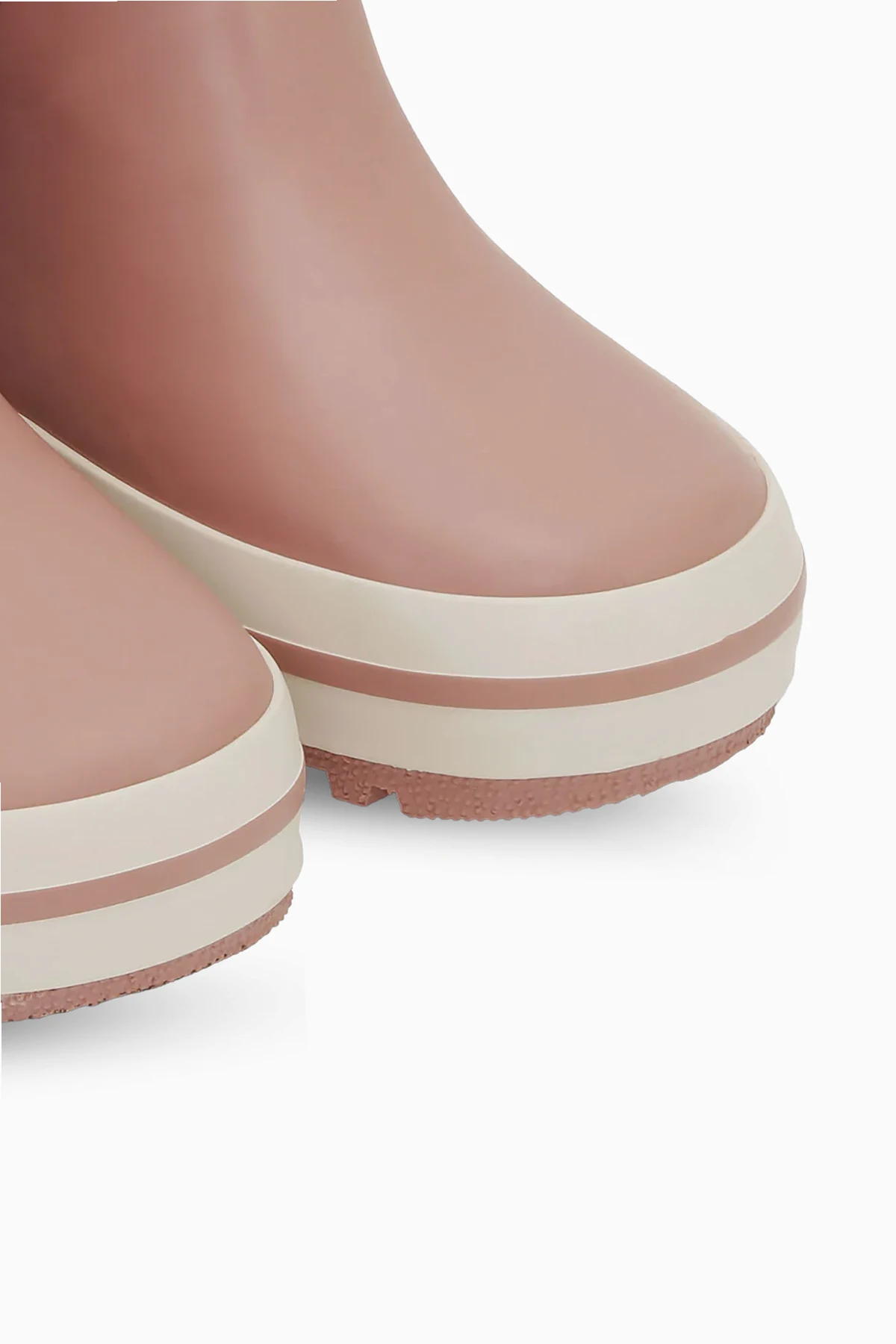 Details wie Schlaufen, die das An- und Ausziehen erleichtern, sowie elastische Einsätze an den Seiten des Schafts sorgen für eine perfekte Passform am Kinderbein. Die zweifarbige Sohle mit Profil garantiert guten Halt auf rutschigen Oberflächen, und die Schafthöhe, die über den Knöchel reicht, bietet zusätzlichen Schutz vor Wasser und Schlamm.