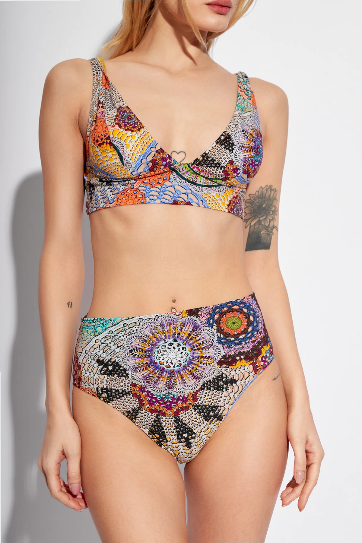 Multicoloured swimsuit top from Pain de Sucre. This item showcases a graphic print and a self-tie fastening on the back.