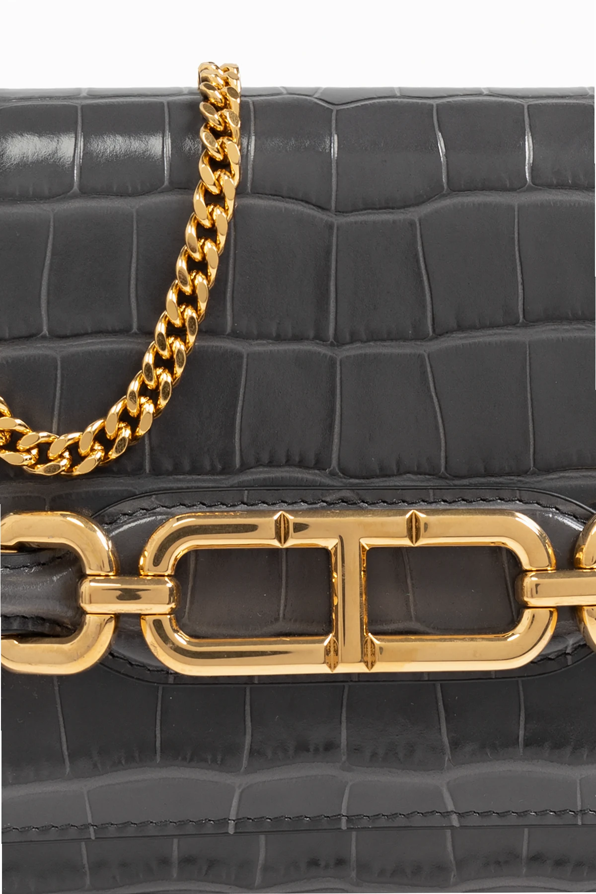 Das goldene Designer-Logo und die Kette verleihen der Tasche Prestige.