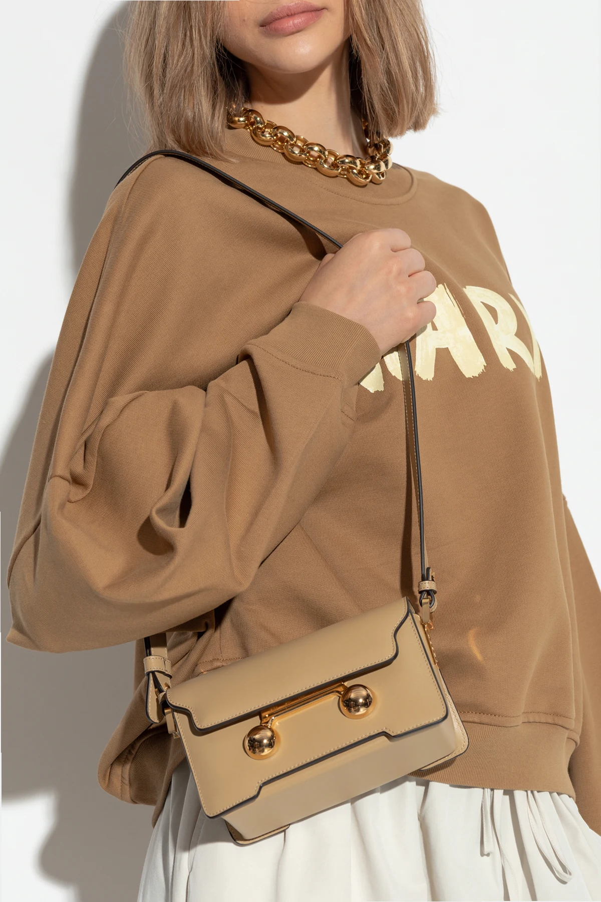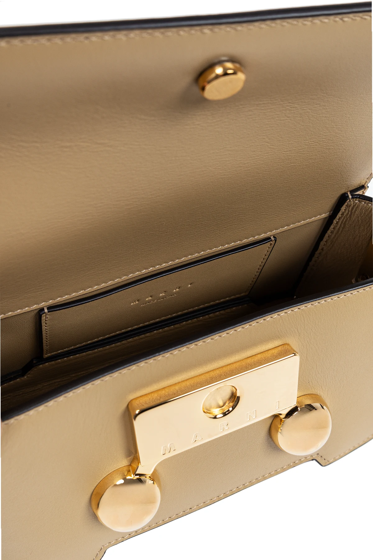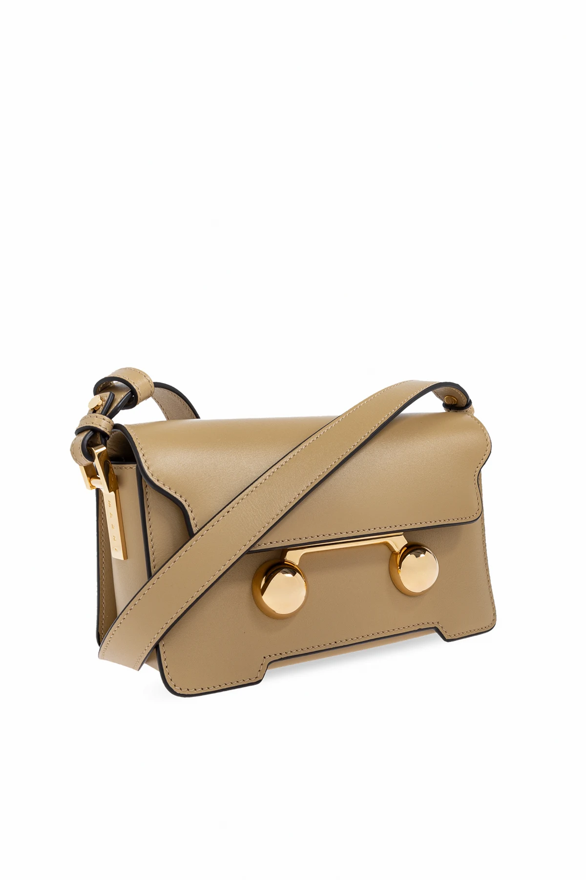 Trunkaroo Mini – ein Meisterwerk des Handwerks in seiner reinsten Form, präsentiert eine Schultertasche, deren Charme in Einfachheit und Eleganz liegt. Entworfen von Marni , verkörpert sie nicht nur unerschütterliche Qualität, sondern auch eine subtile Luxuriösität. Gefertigt aus hochwertigem beigefarbenem Leder, zieht diese Tasche die Aufmerksamkeit auf sich durch ihre glatte Textur und raffinierten Details.