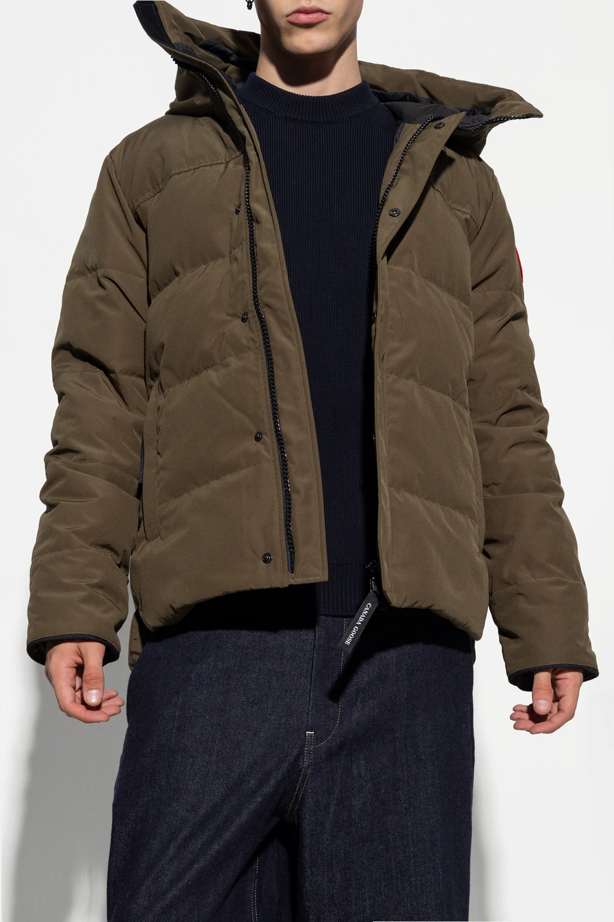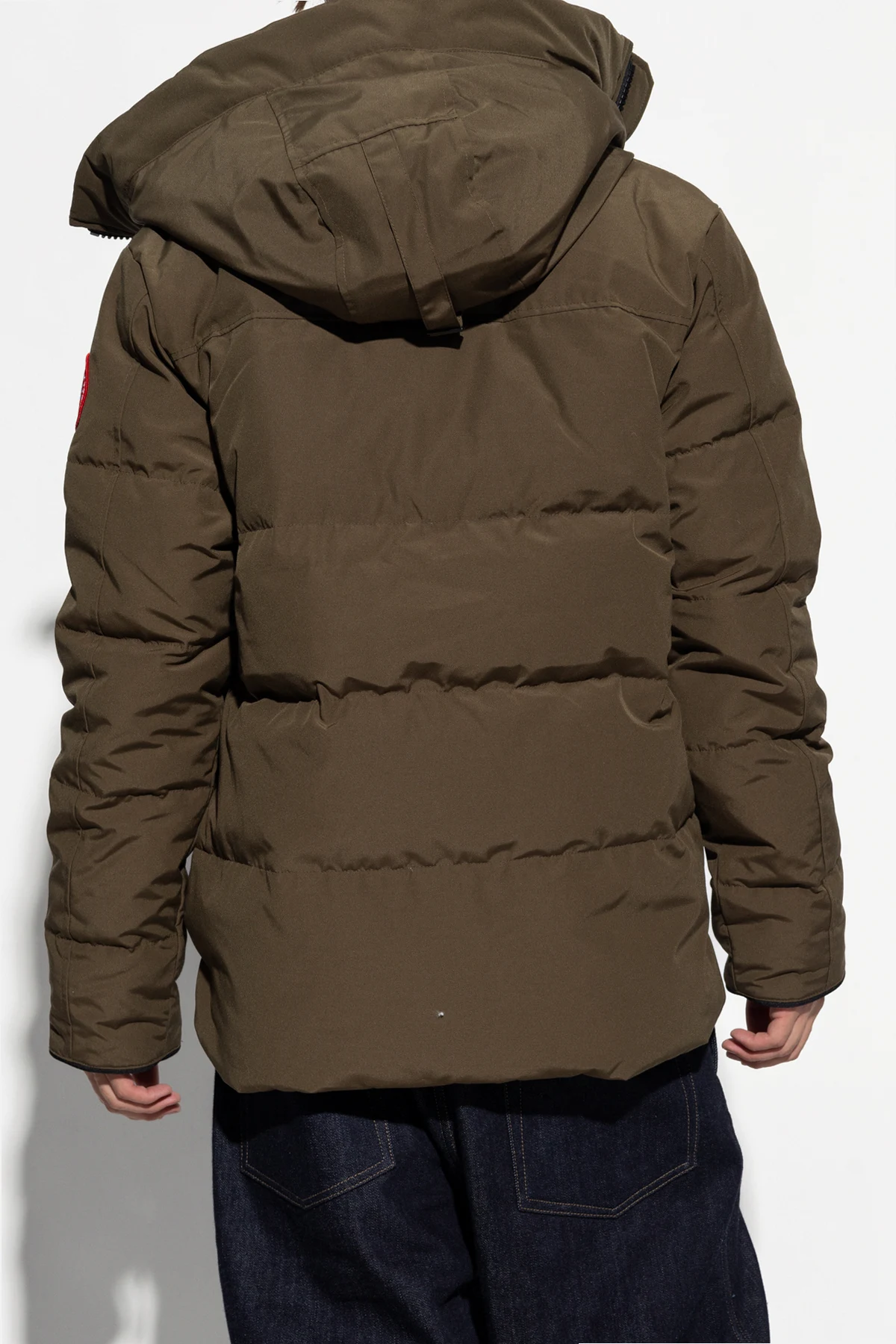 Dark green ‘McMillan’ down jacket from Canada Goose. Made of durable and water-resistant Arctic Tech® reinforced with CORDURA® fabric for added durability in high-abrasion areas and natural feather and down padding with 625 fill power. Fastened with a two-way zip and snaps, this design features a logo patch on the shoulder, two zip pockets, internal shoulder straps with a logo and long sleeves with ribbed cuffs. The hood features a removable zipper guard for the option of changing your hood trim for a customized look and added protection. Temperature range: -10°C to -20°C.