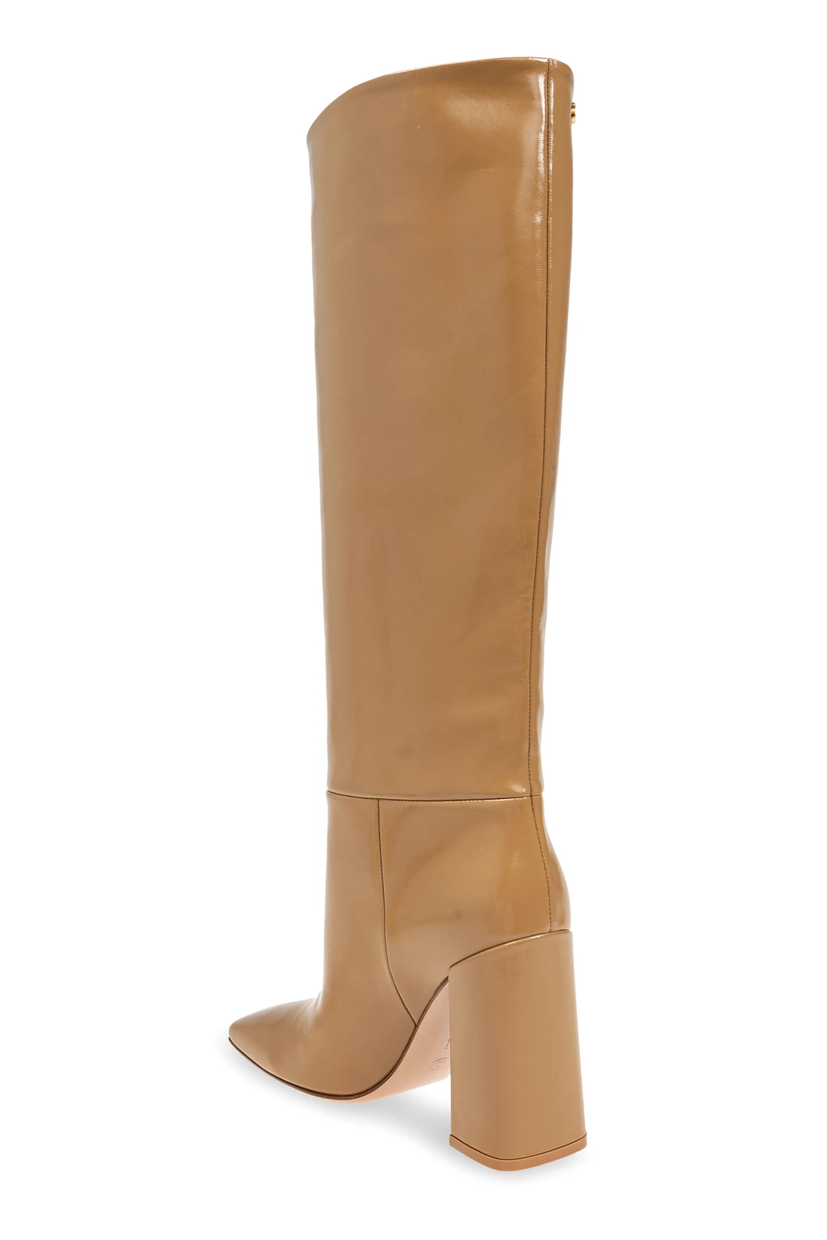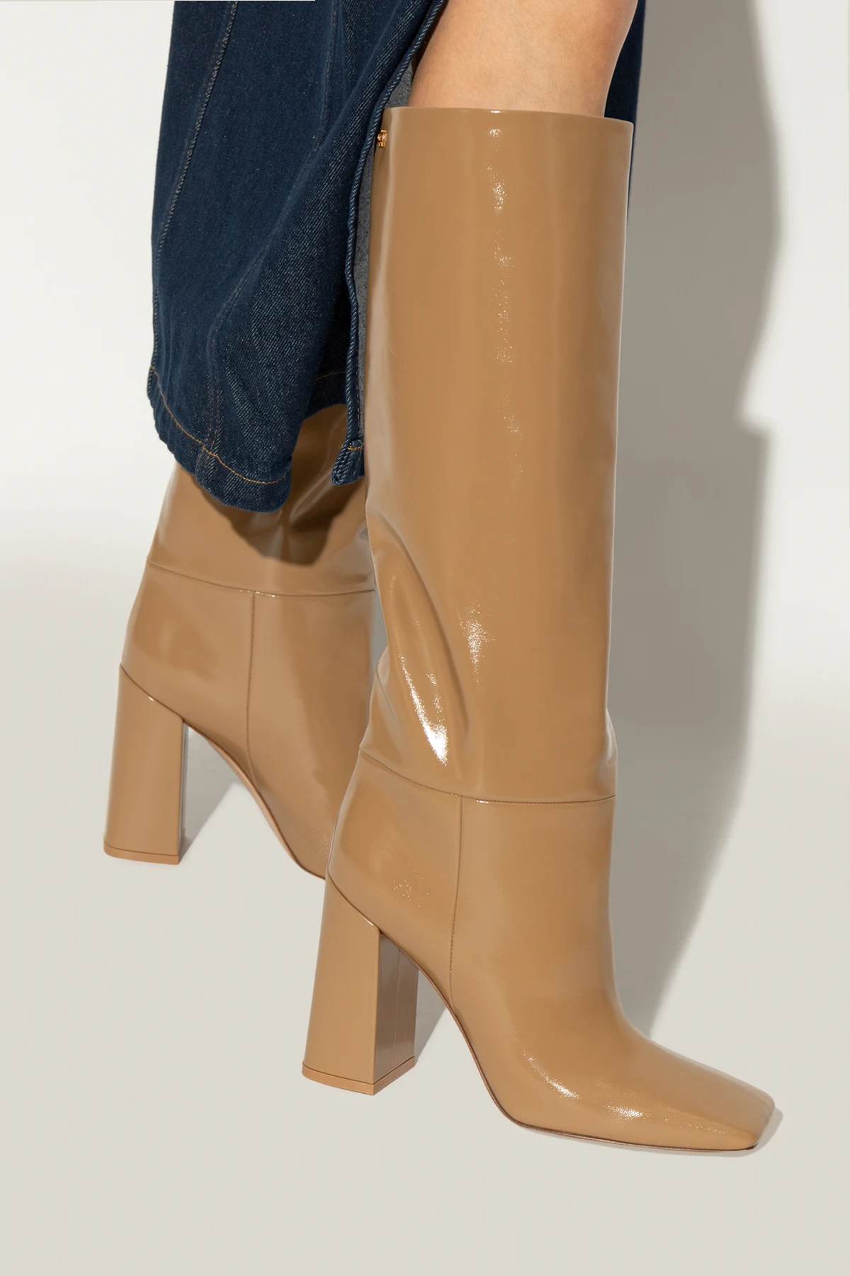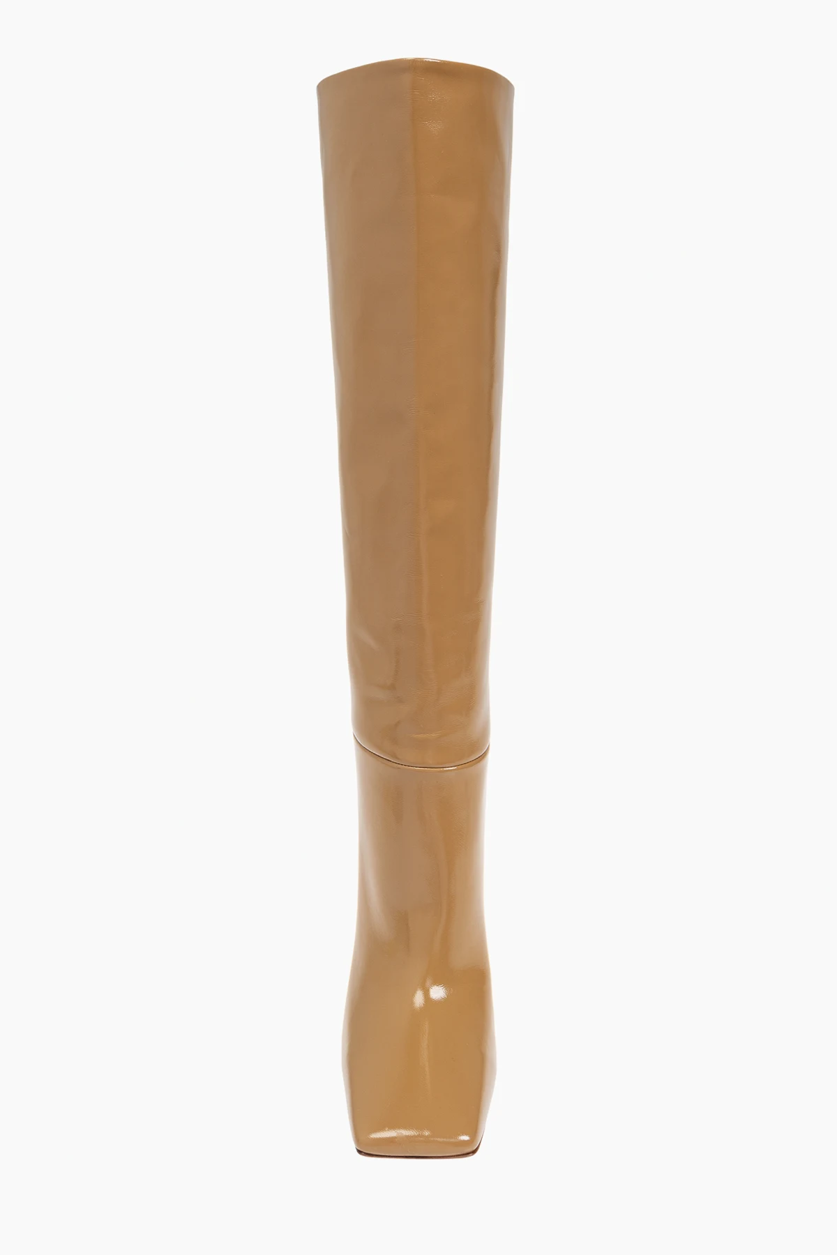Gefertigt aus hochwertigem, lackiertem Leder, bestechen diese Stiefel durch ihren Glanz und luxuriösen Look. Die dominante beige Farbe betont ihre Feinheit und Vielseitigkeit und passt perfekt zu verschiedenen Outfits.