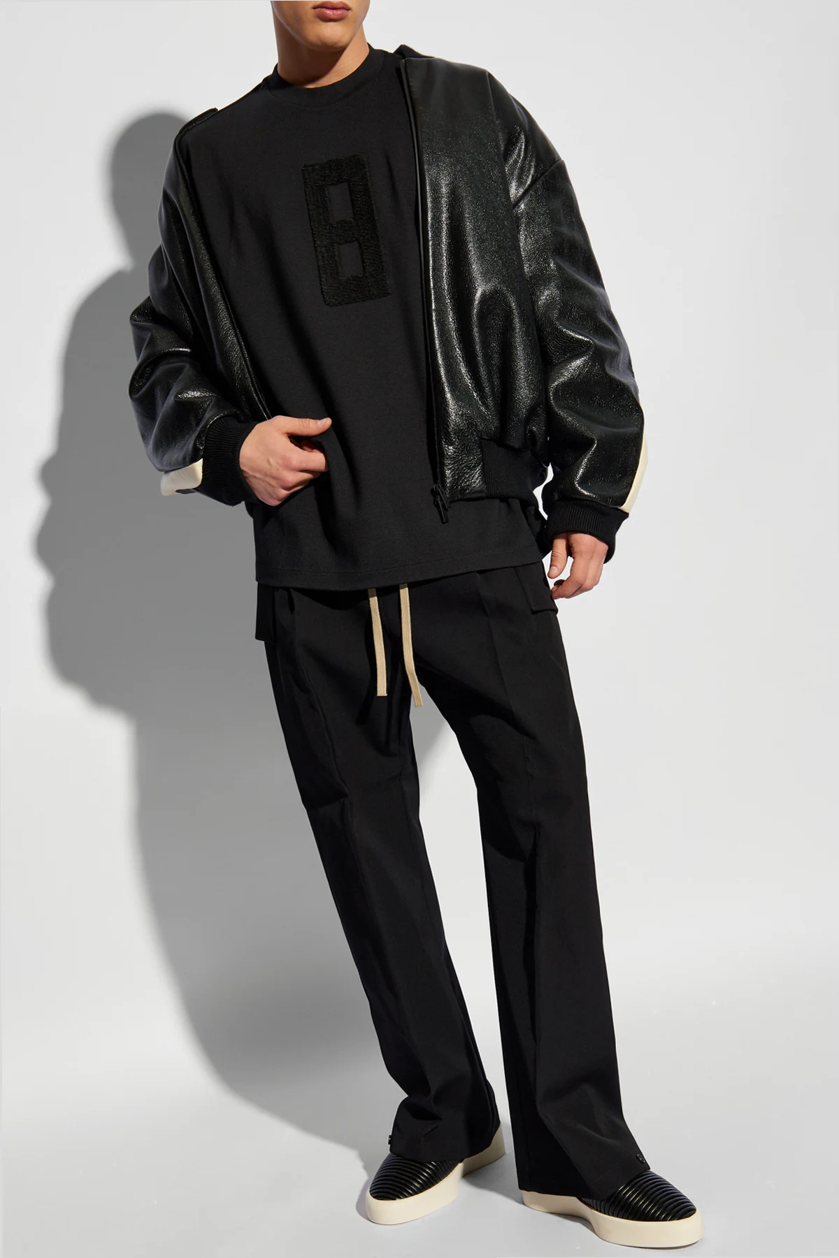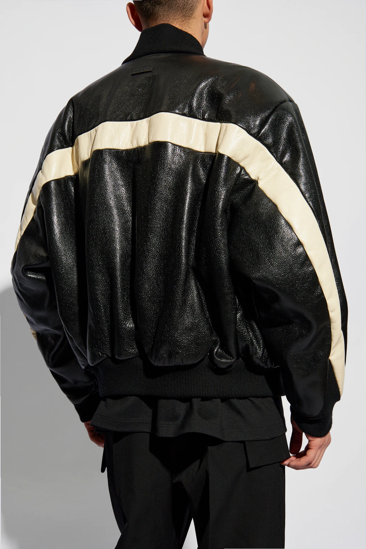 Wir präsentieren Ihnen ein außergewöhnliches Juwel unter der Oberbekleidung - die Lederjacke im ‘Bomber’-Stil vom renommierten Designer Fear Of God . Diese exquisite Kreation vereint klassisches Design mit modernen Akzenten und schafft ein Werk, das sowohl zeitlos als auch im Einklang mit den aktuellen Trends ist.