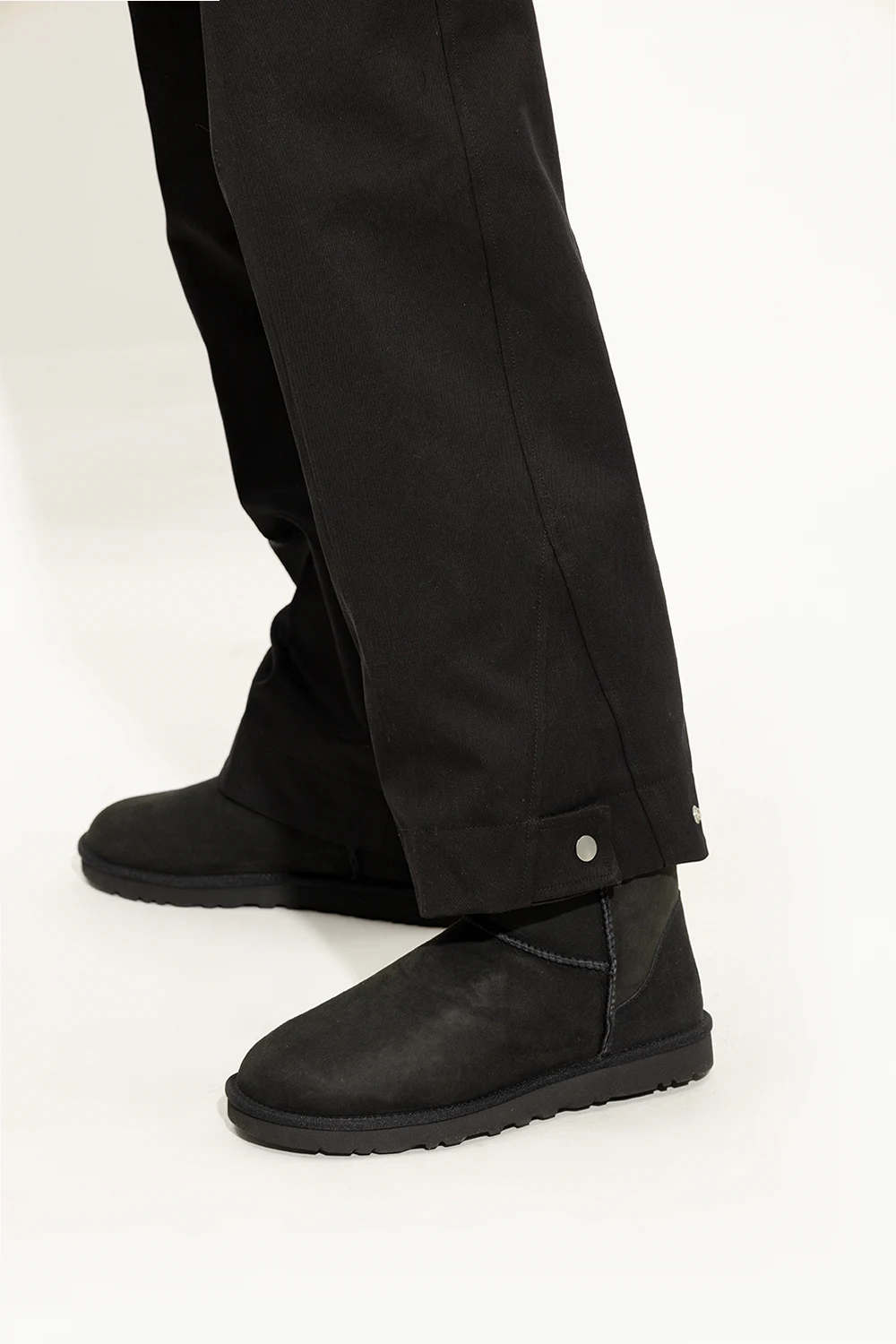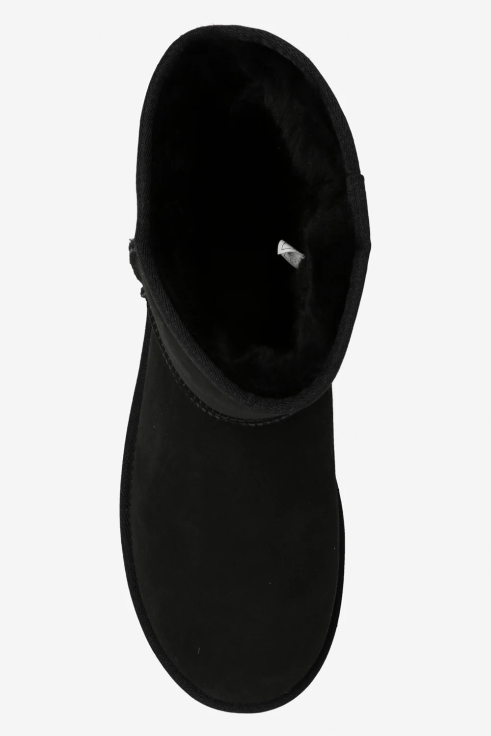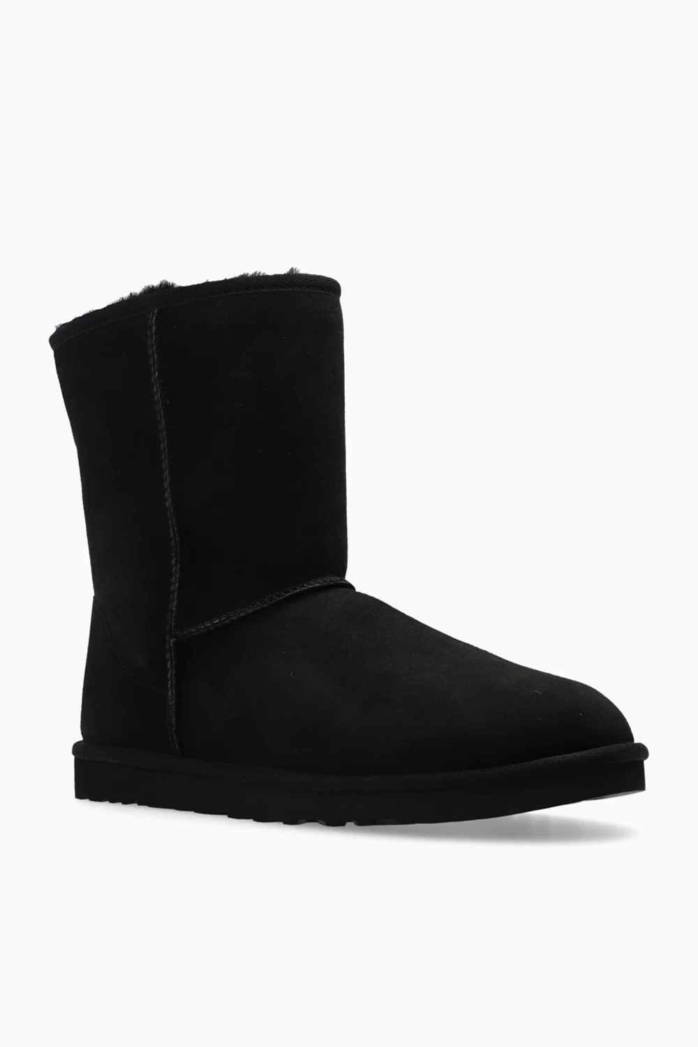 Black ‘Classic Short’ snow boots from UGG. Crafted from suede, this pair features a brown logo patch at the back, recycled wool blend UGGplush™ lining and black rubber sole.