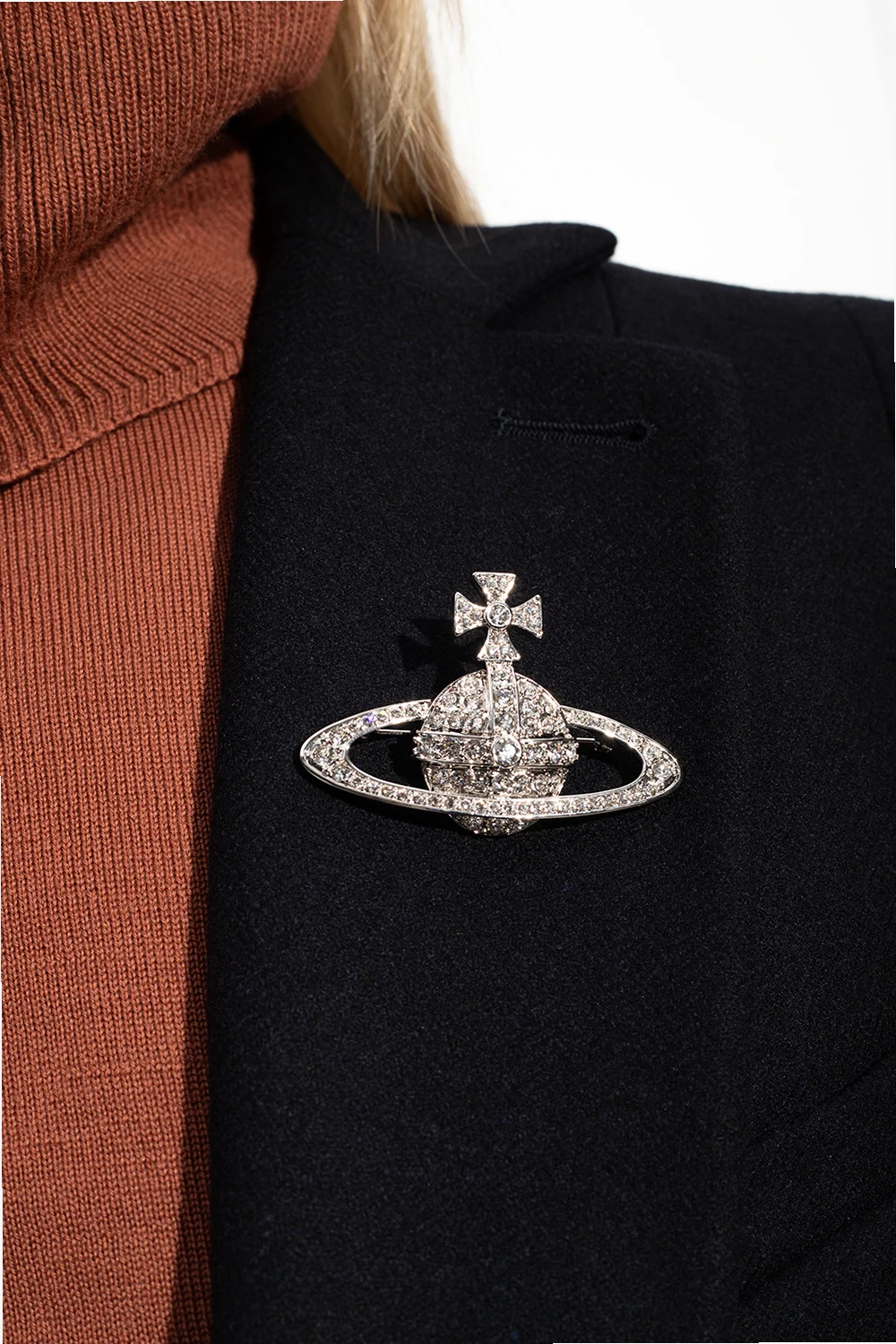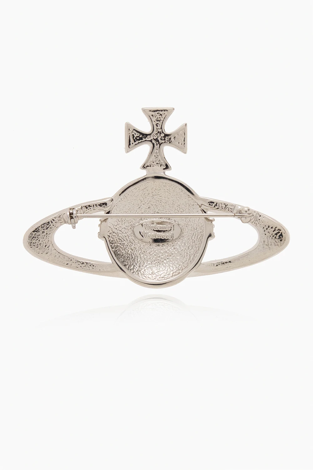 Silver-tone brooch from Vivienne Westwood. Crafted from brass with a logo shape, this item features a pin closure and glossy Swarovski crystals.
