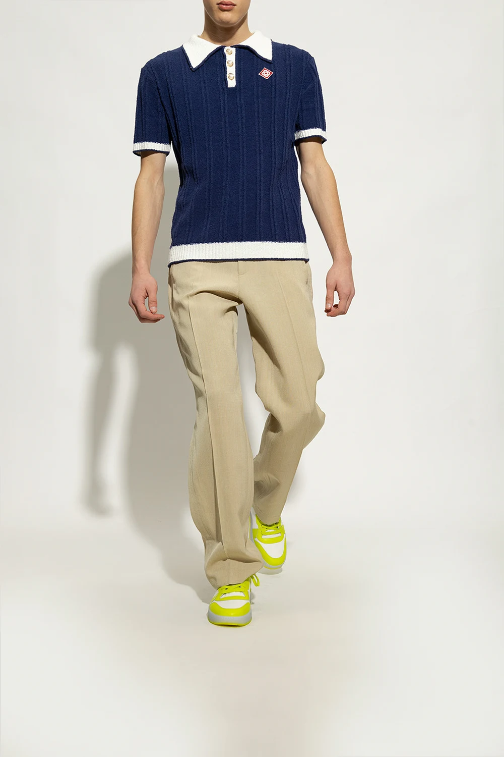 White and light green ‘Florent’ sneakers from Jimmy Choo. Crafted from fabric and canvas, this lace-up pair features a tongue patch with a logo, black print at the back and rubber sole in light grey and green.