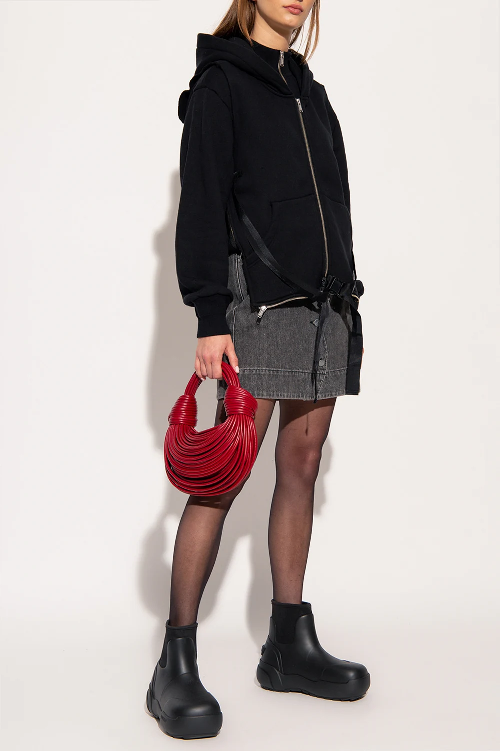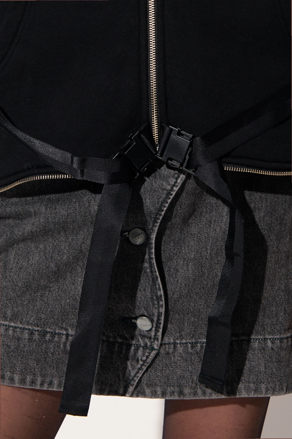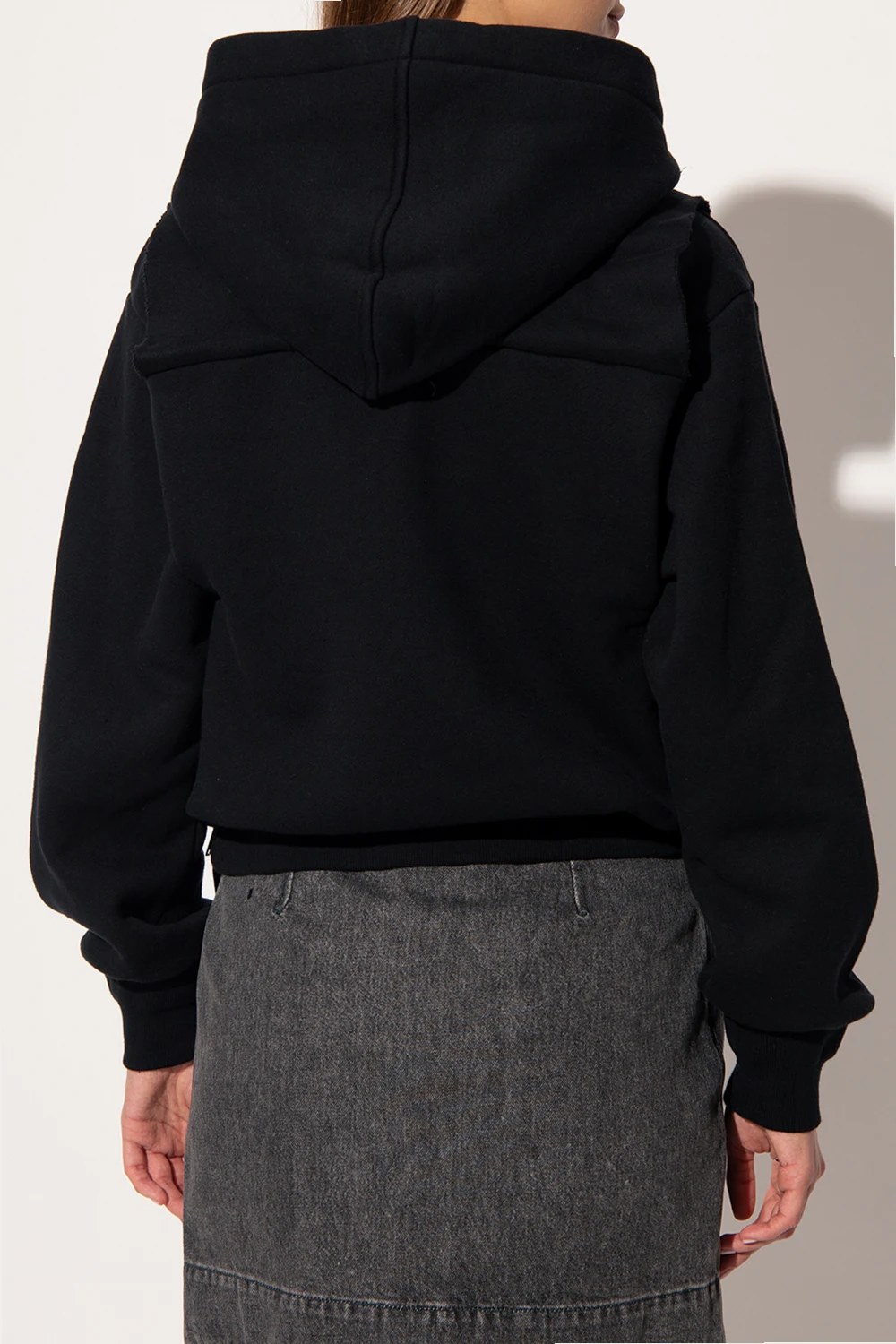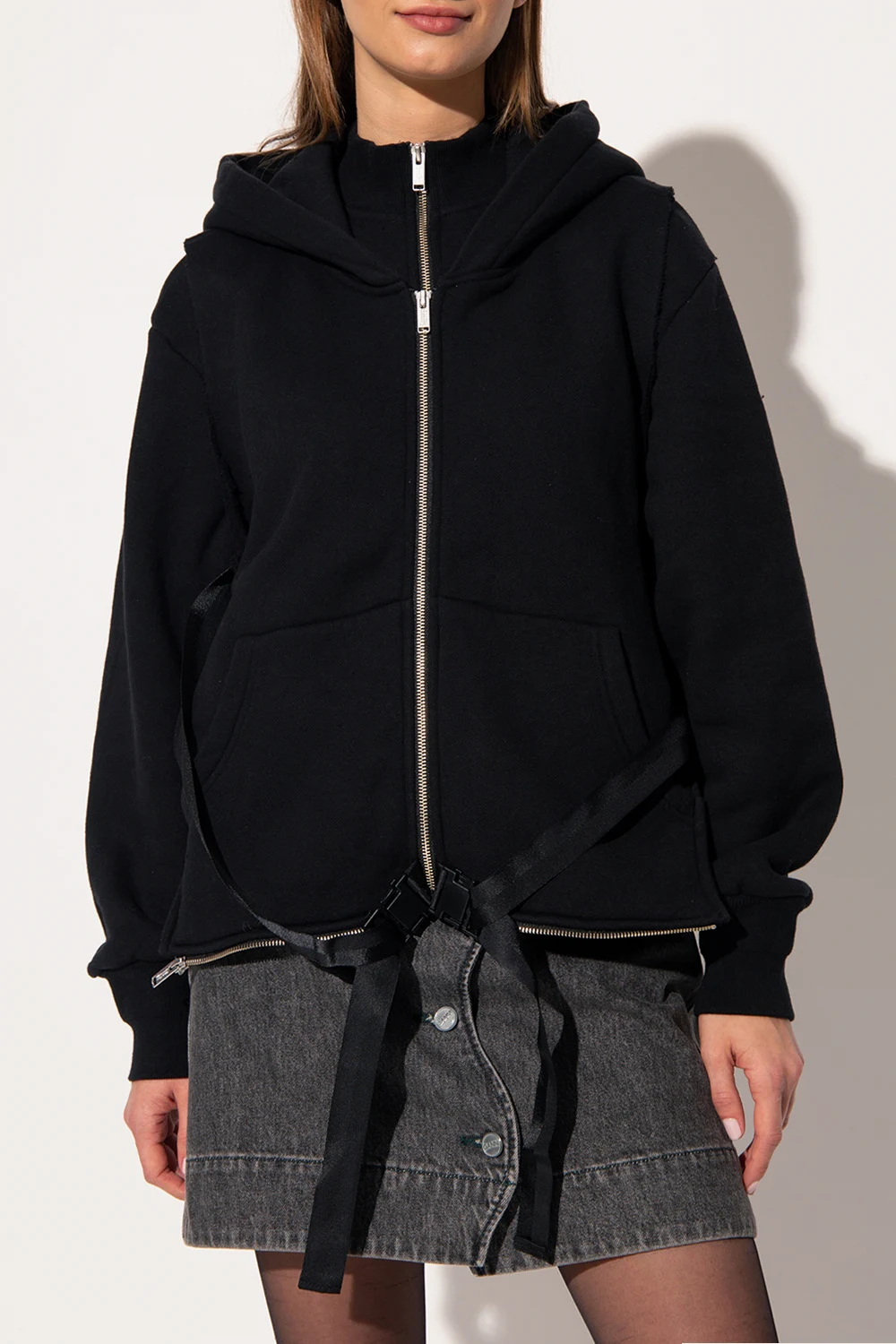 Black hoodie from Undercover. Made of cotton, this style features a zip fastening, two slip pockets, distinctive zippers and snap closures, and long sleeves with elasticated cuffs.