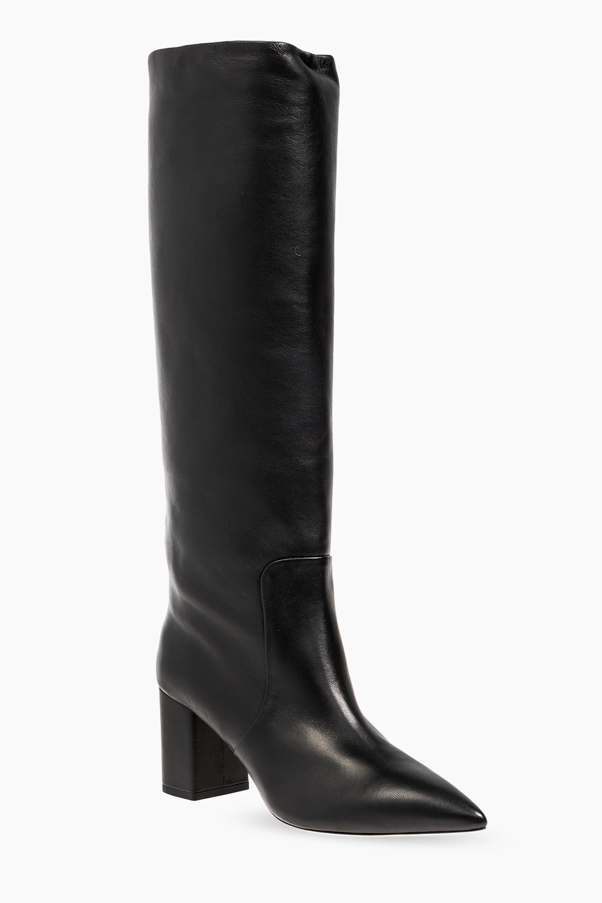 Black ‘Anja’ heeled boots from Paris Texas. Made of leather, this model sits on a cream leather sole and features a slip-on silhouette and a pointed toe.