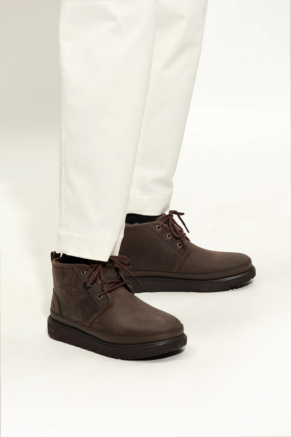 Brown ‘Neumel Weather II‘ ankle boots from UGG. Crafted from waterproof lined leather, this lace-up model features an embossed logo on the side, an UGGplush™ insole and a dark brown Treadlite by UGG™ sole. Cold-weather rated to -20C.