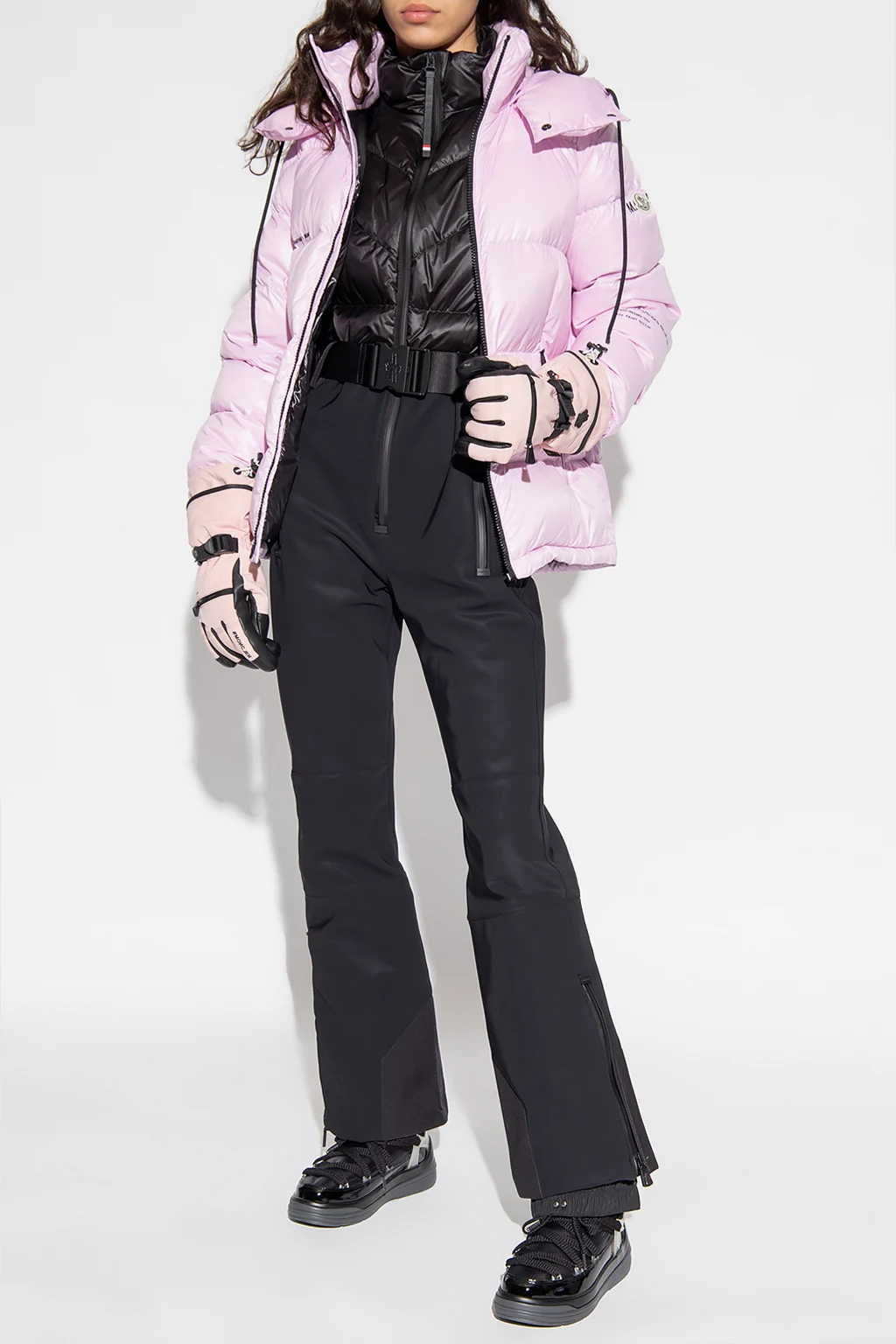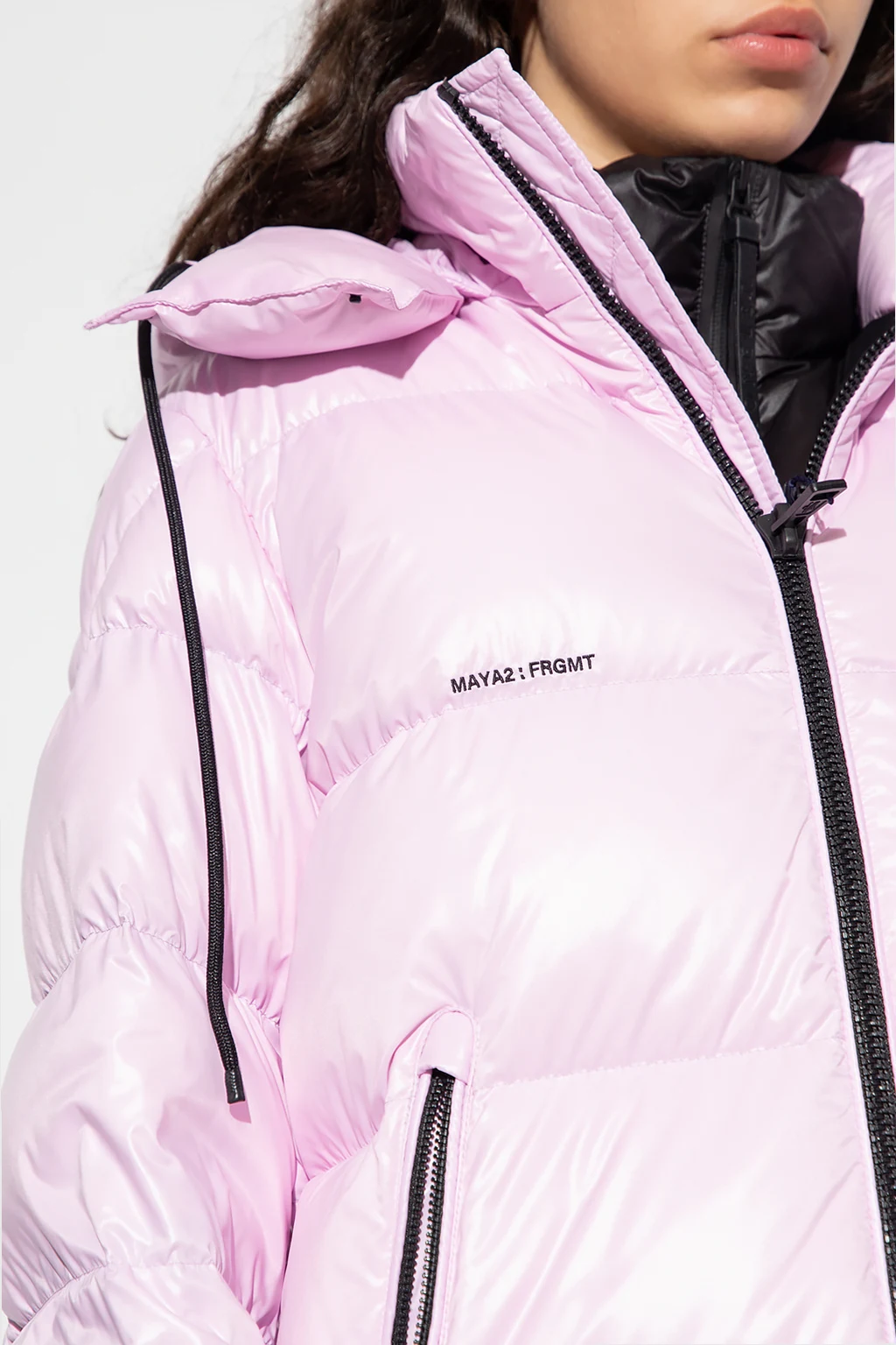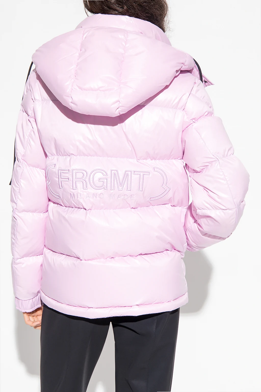 Light pink ‘Rickey’ down jacket from Moncler Genius, the ‘7 Moncler Frgmt Hiroshi Fujiwara’ collection. Emblazoned with a colourful logo patch, this style features a zip fastening, an embroidered logo, two front zip pockets, black details and long sleeves.