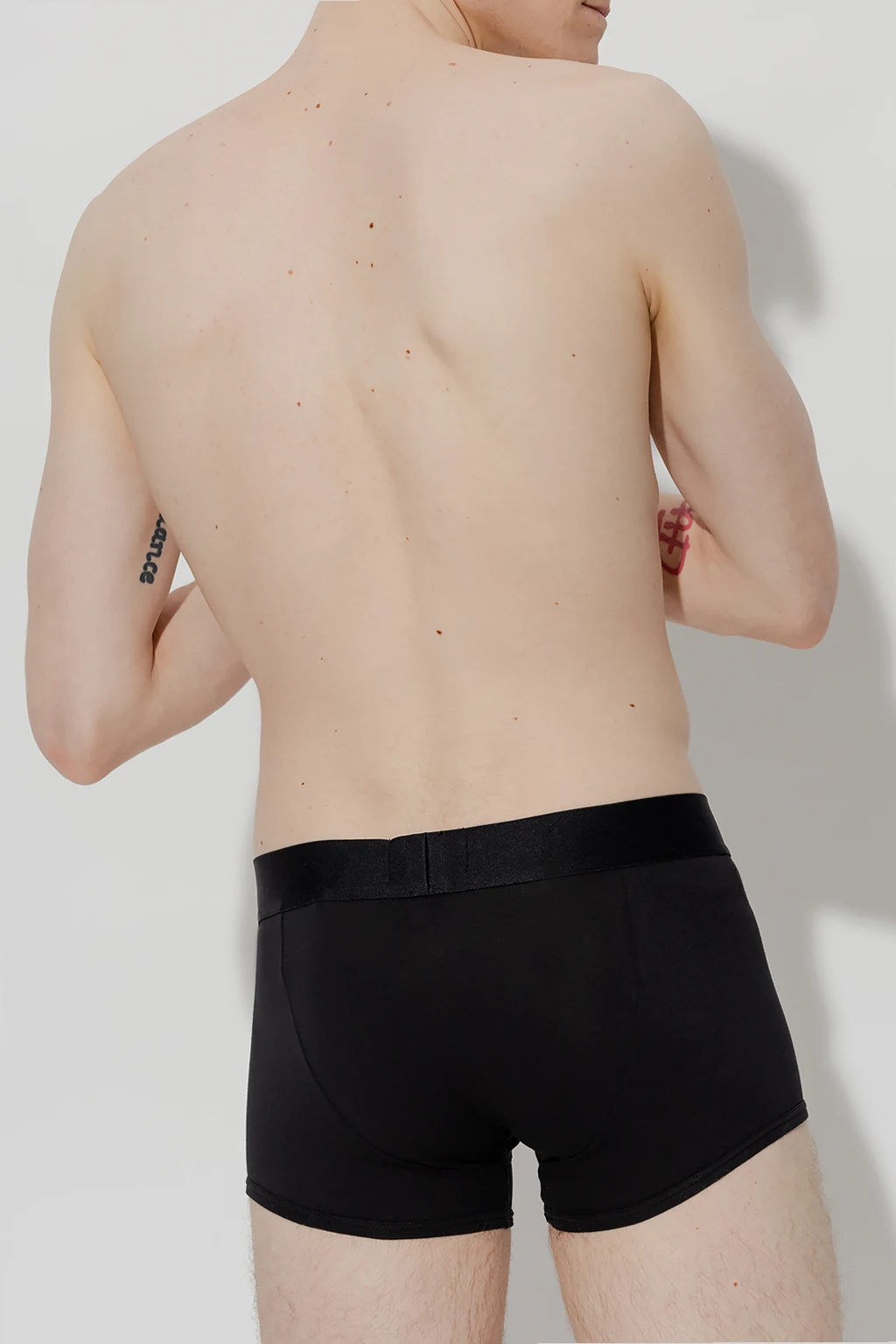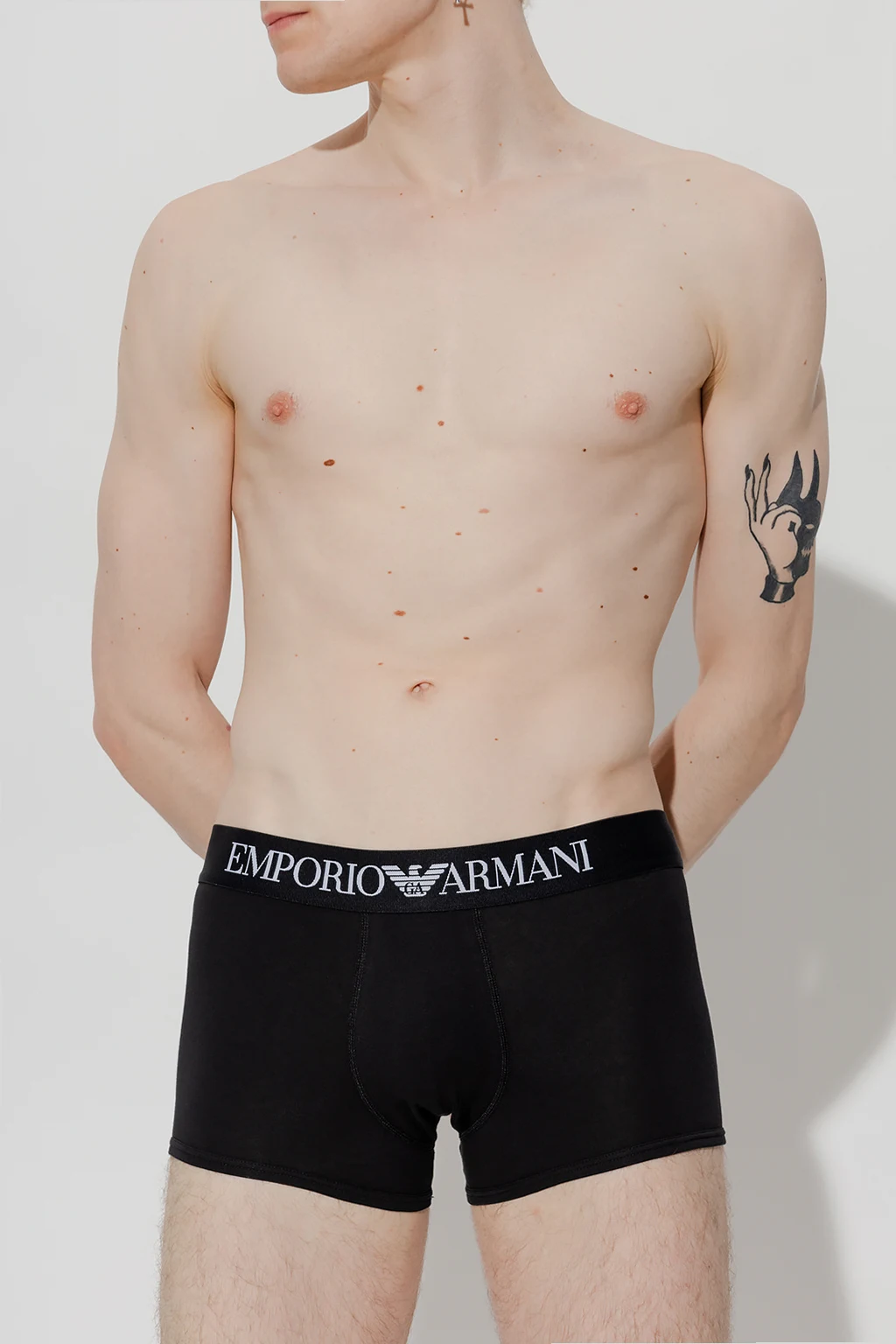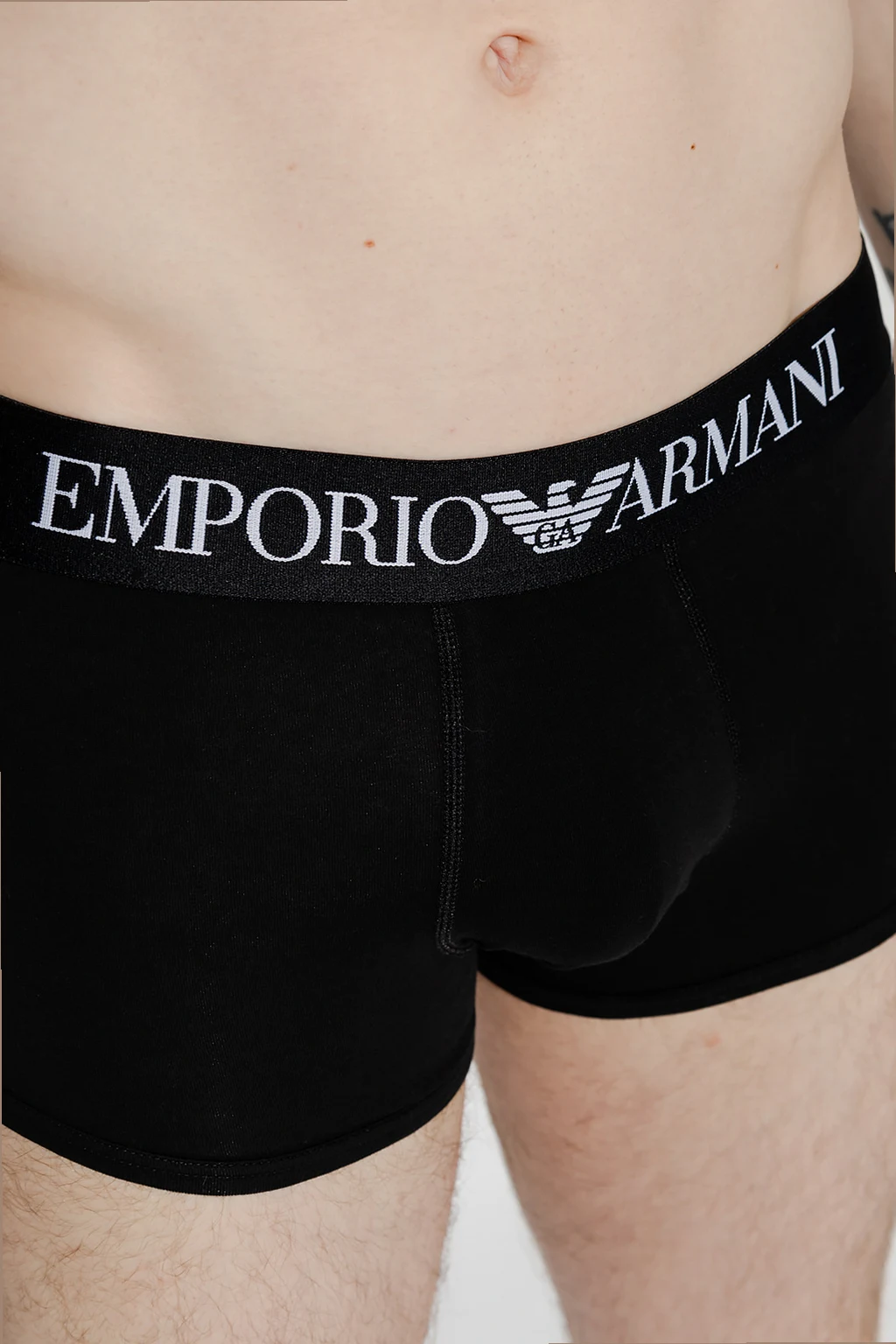 Black boxers from Emporio Armani. Crafted from cotton, this pair features an elastic waistband with a logo in white.